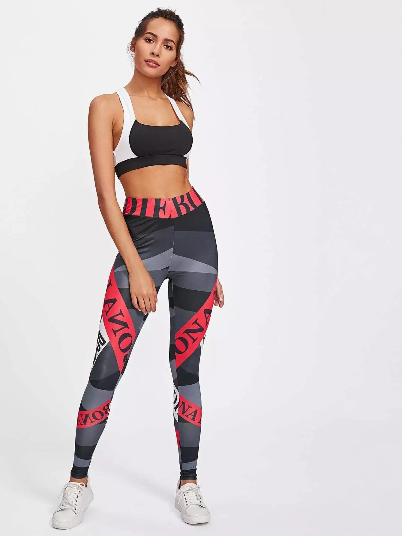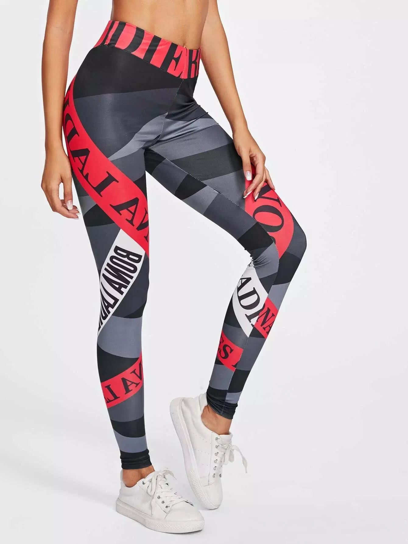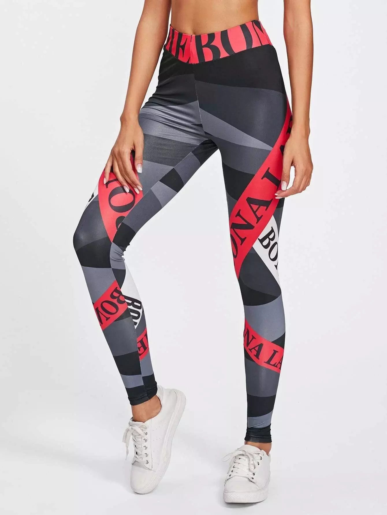 بنطلون ضيق ضيق ضيق مرقع بطبعة حروف