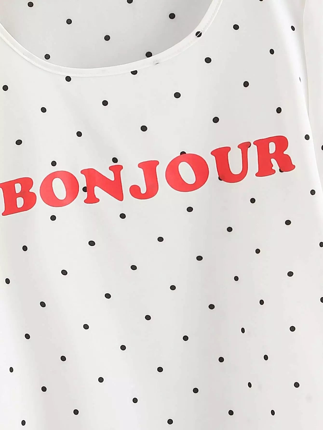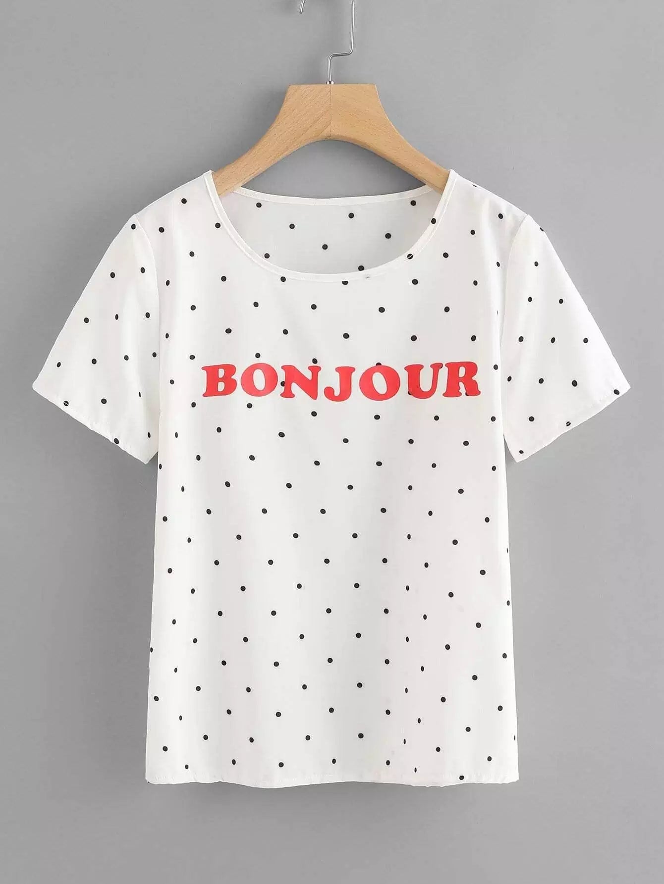 تي شيرت بنقاط البولكا وطبعة الحروف