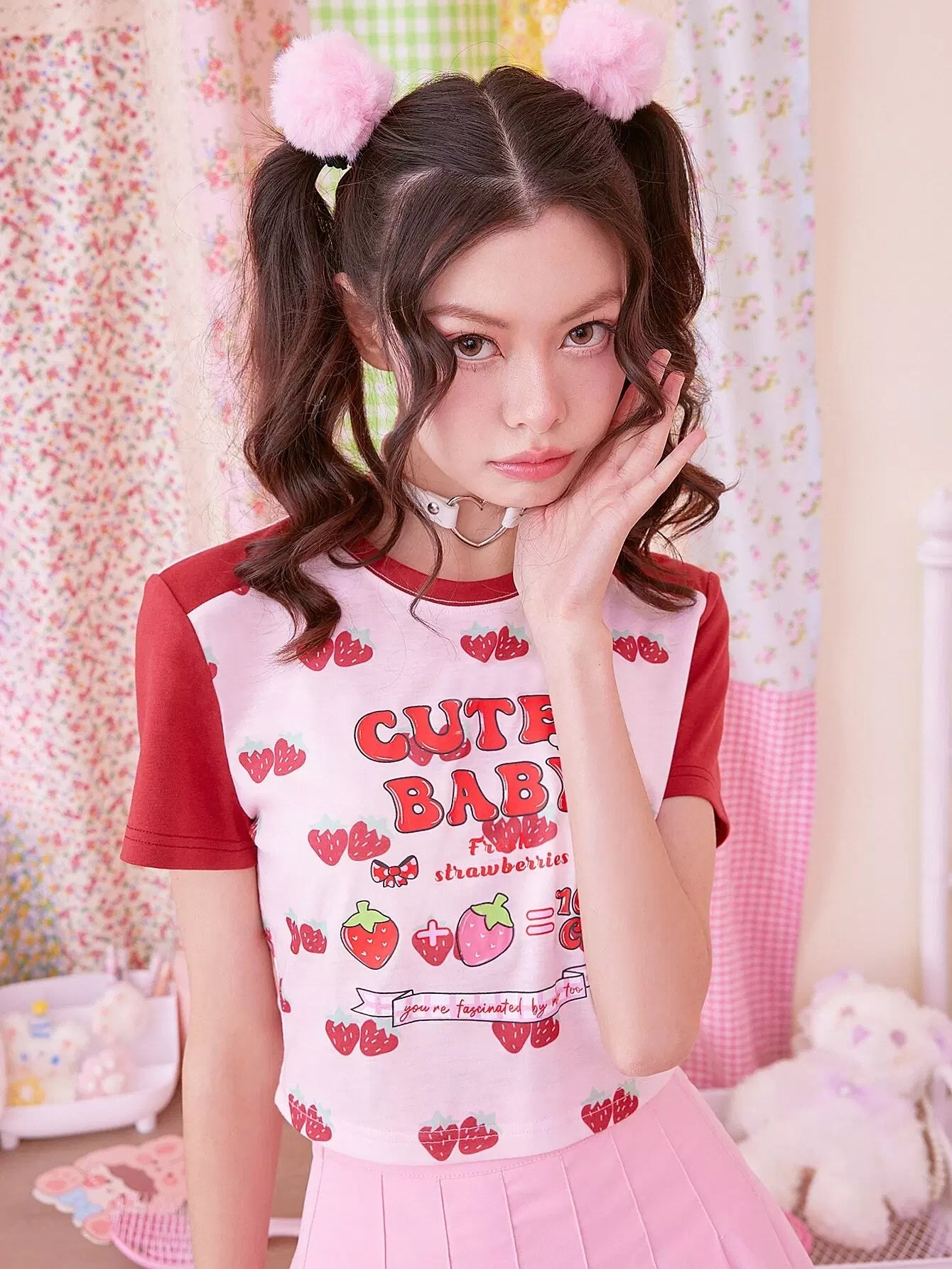 تي شيرت برسومات الفراولة الملونة بحروف الفراولة