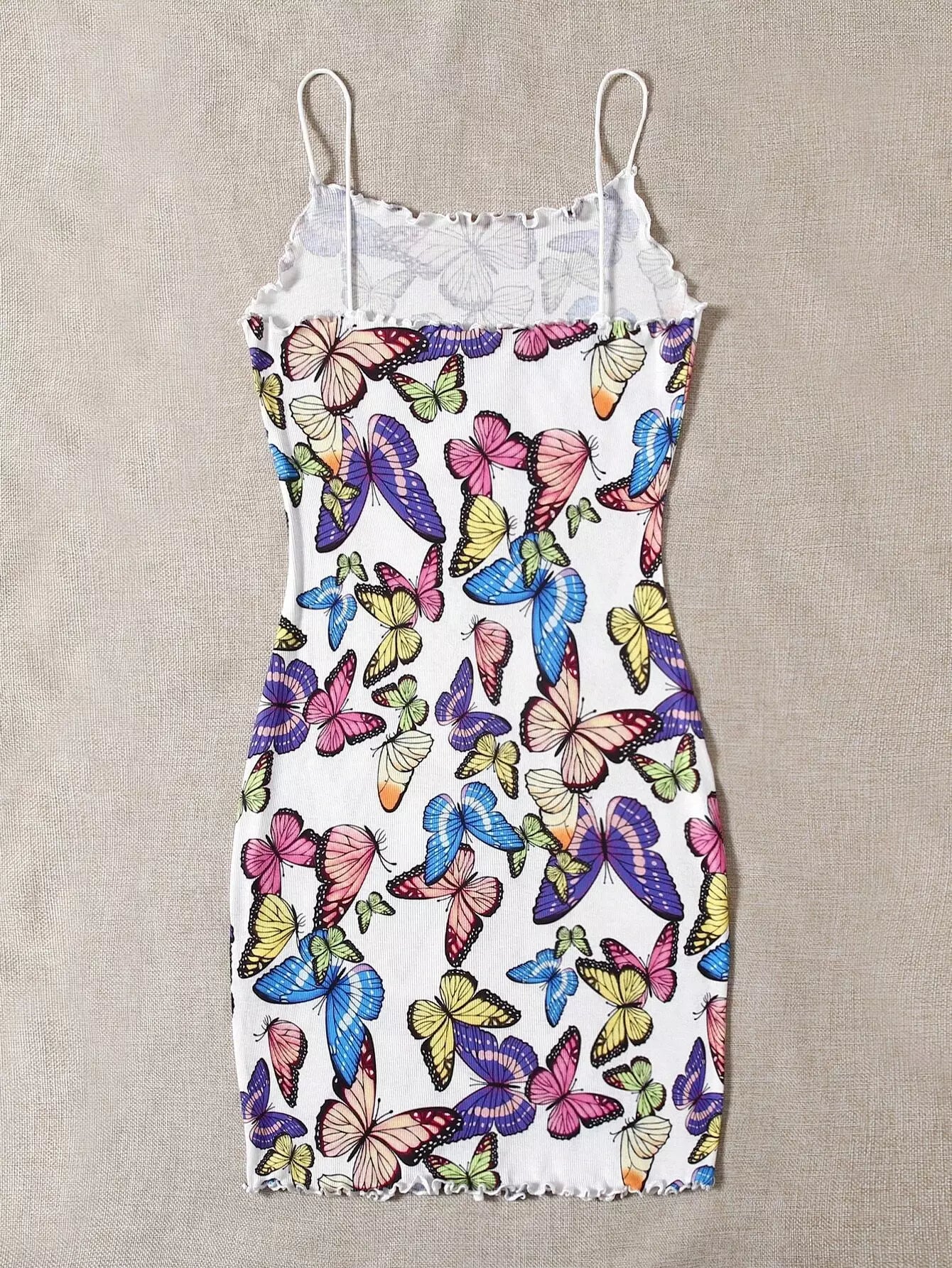 فستان كامي مزين بطبعة فراشات بنقشة الخس