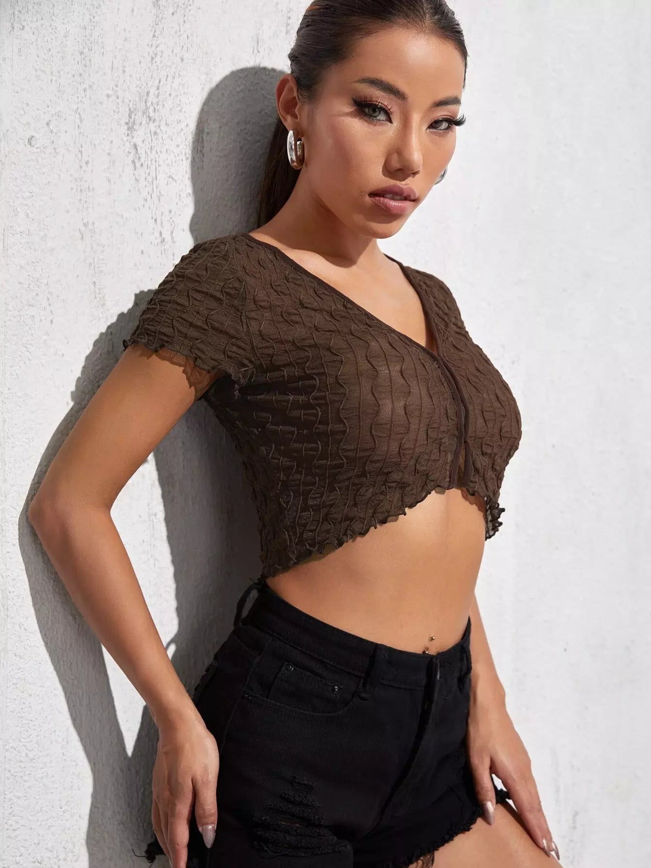 تي شيرت قصير بحواف من الخس