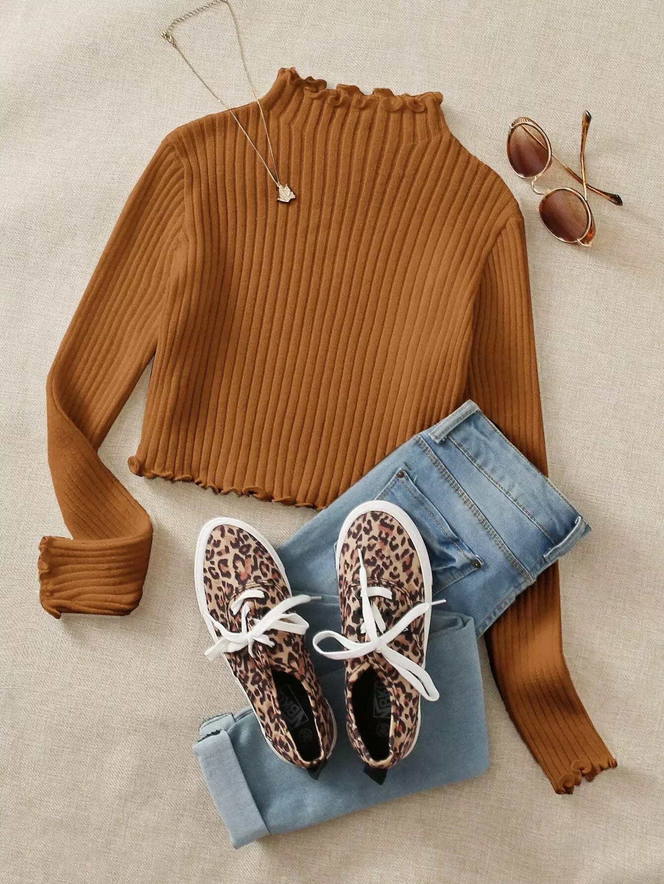 كنزة محبوكة على شكل ضلع محبوكة بالخس