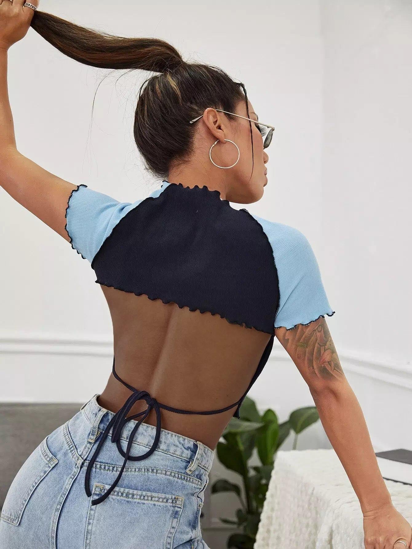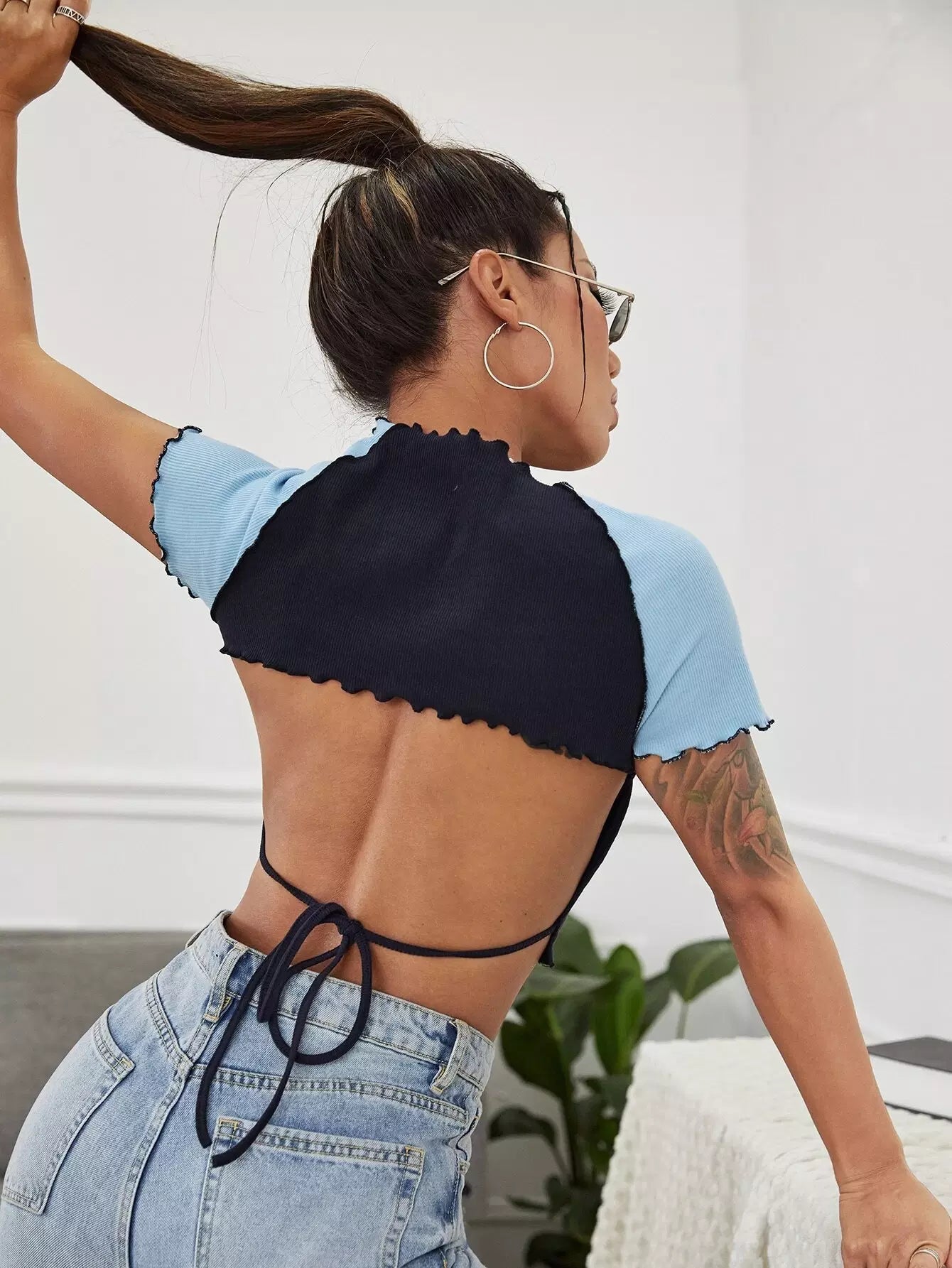تي شيرت ملون برباط خلفي وحواف من الخس
