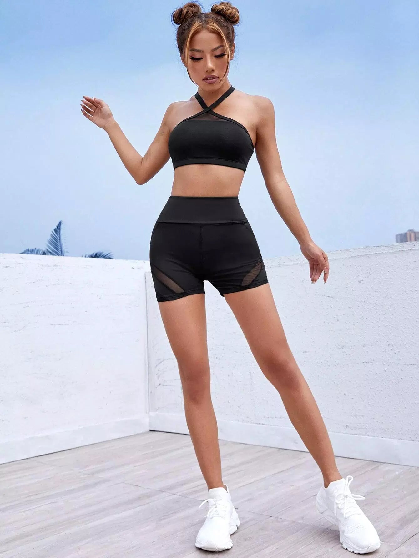 حمالة صدر رياضية شبكية خفيفة الدعم متباينة اللون