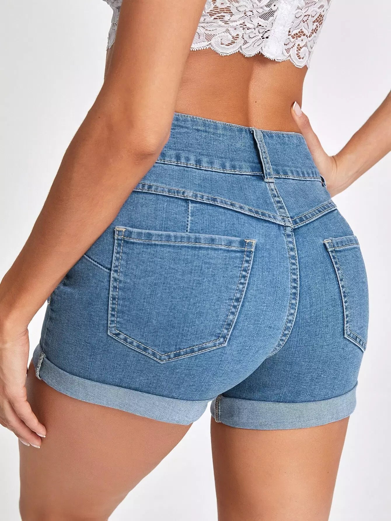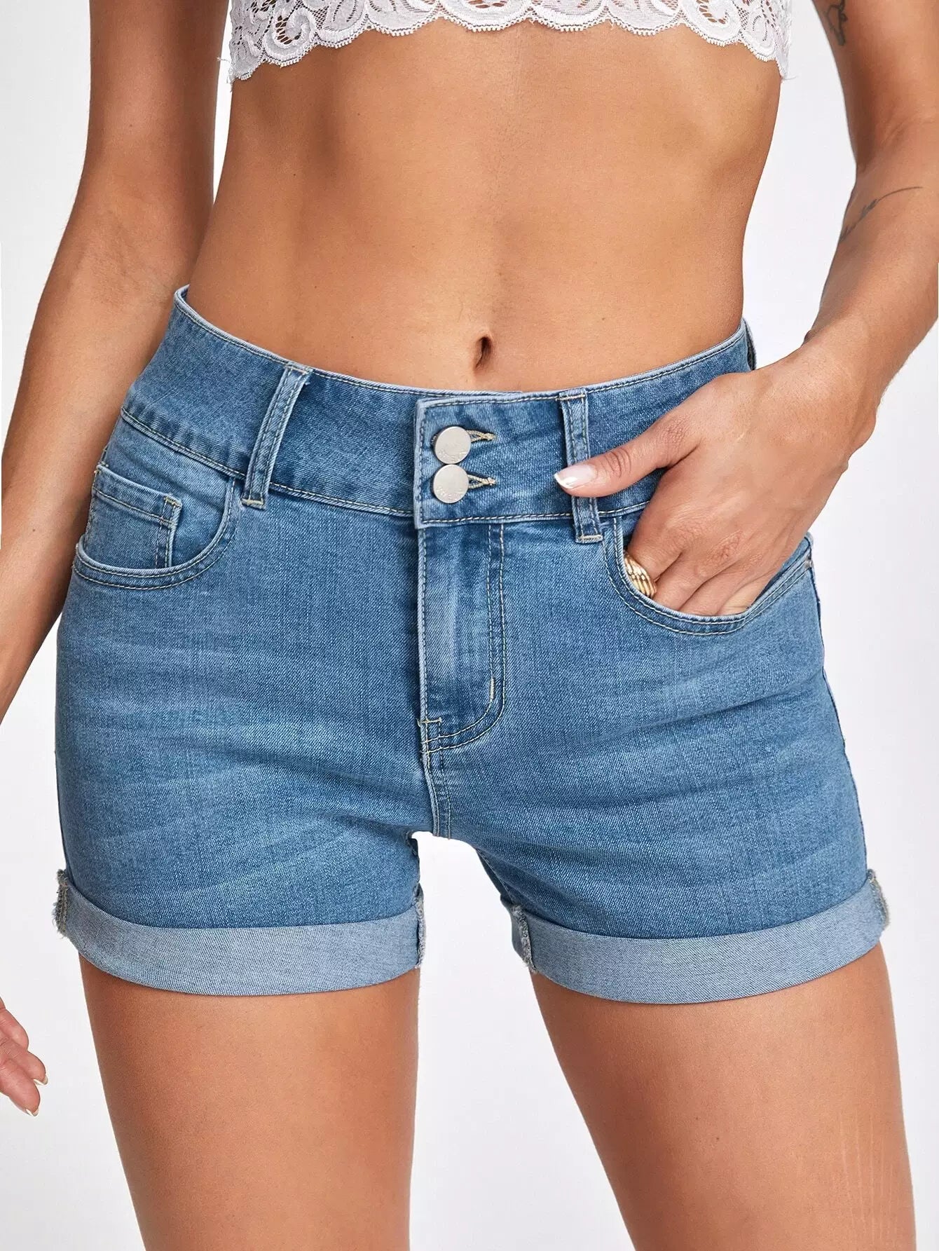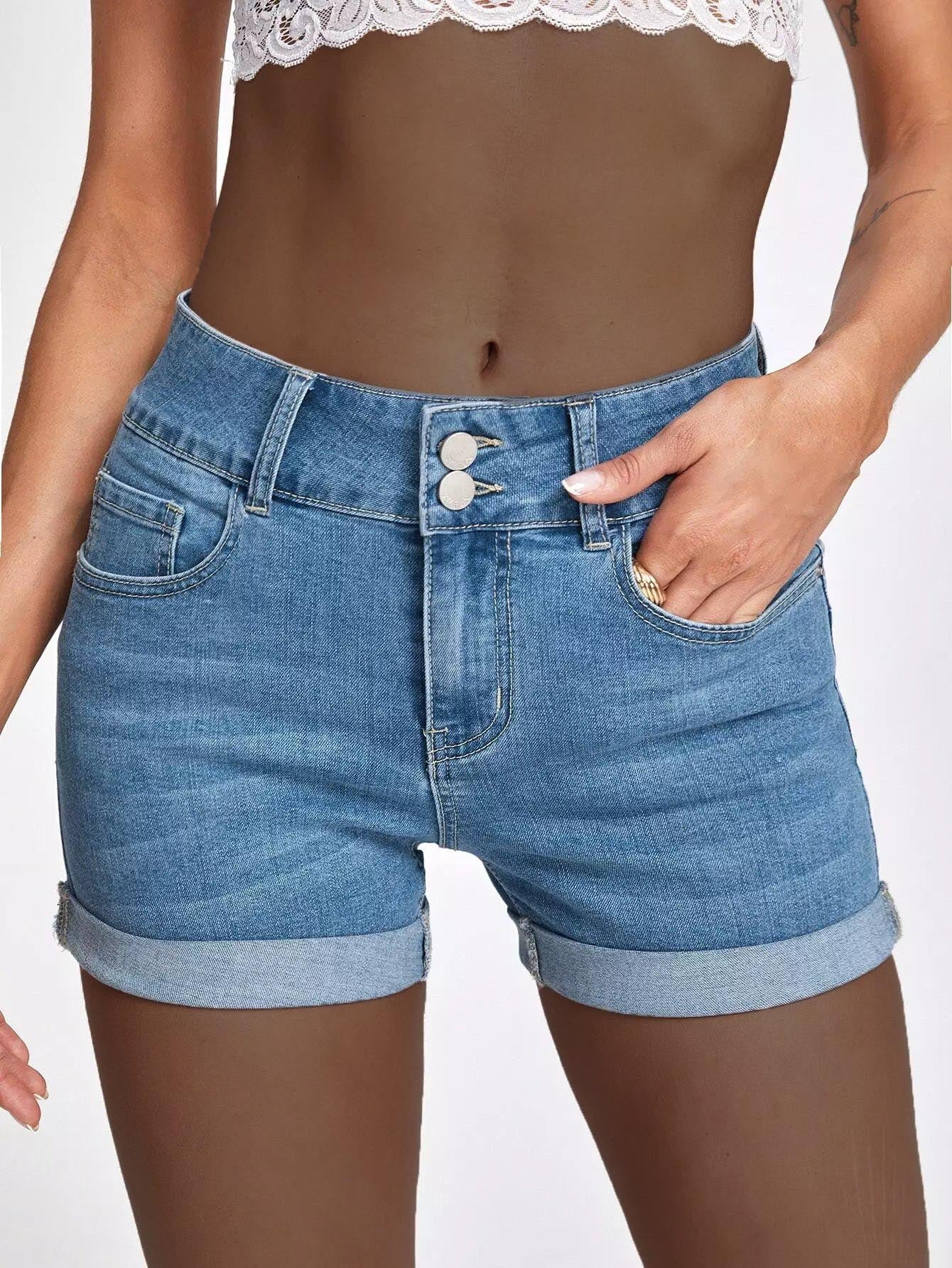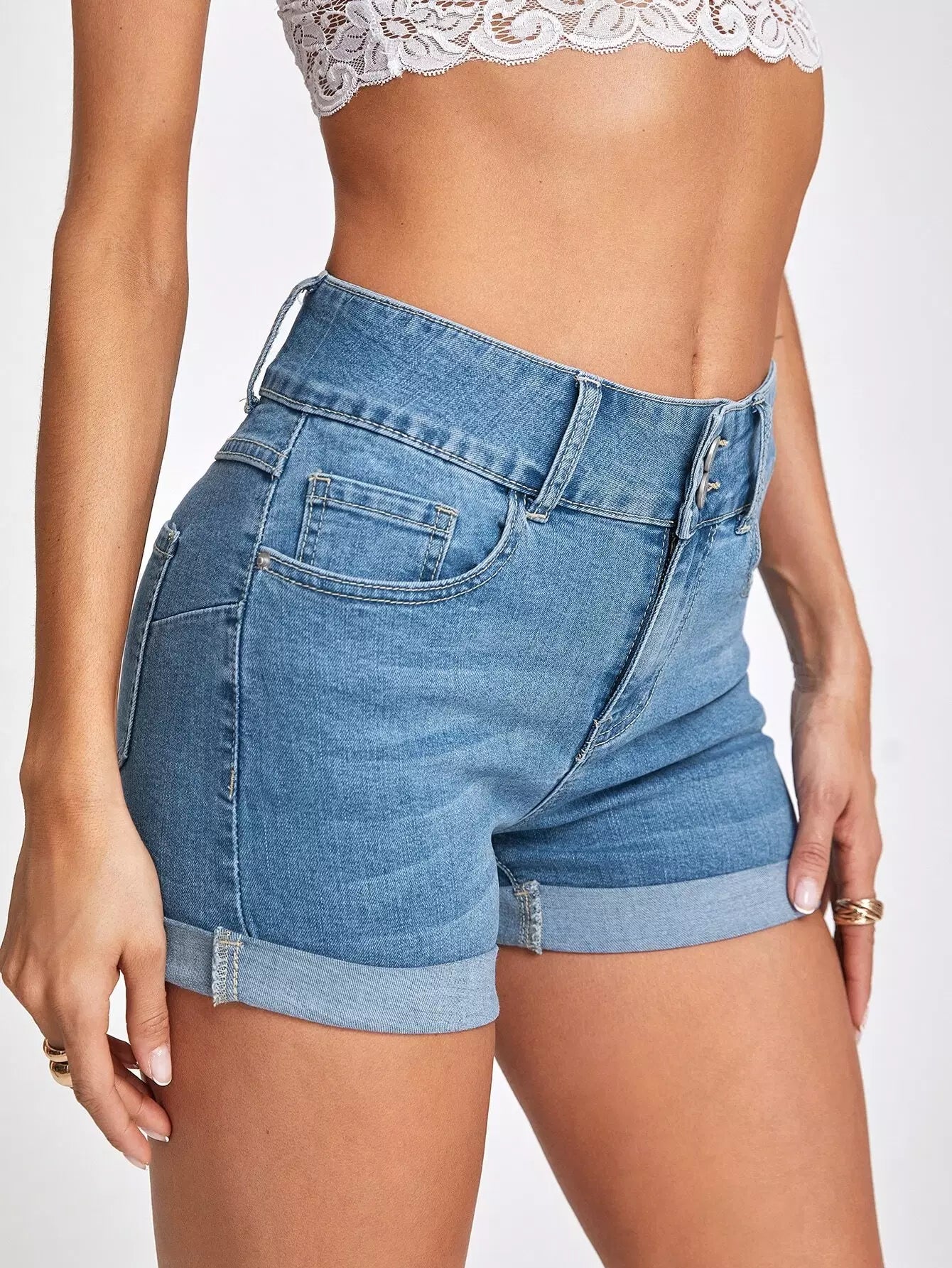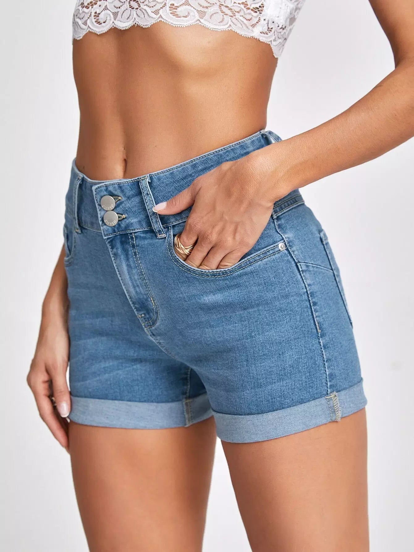 شورت دنيم ممزق ذو أكمام من الدنيم ذو تفاصيل ممزقة ومغسول بخصر خفيف