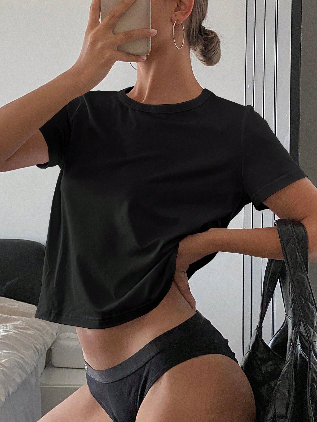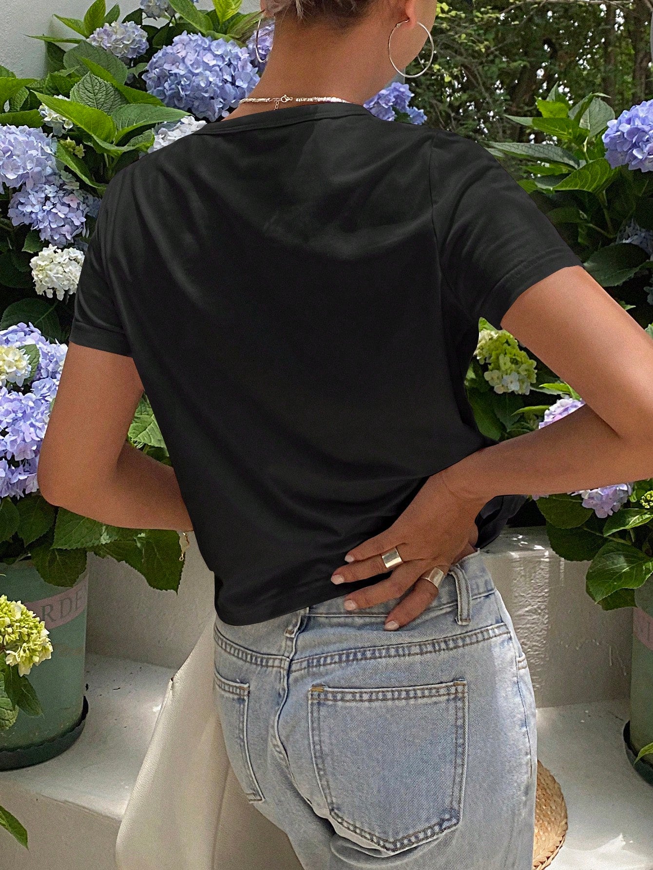 Livesso Solid Color Round Neck Slim Fit Short Sleeve Women's T-Shirt Summer