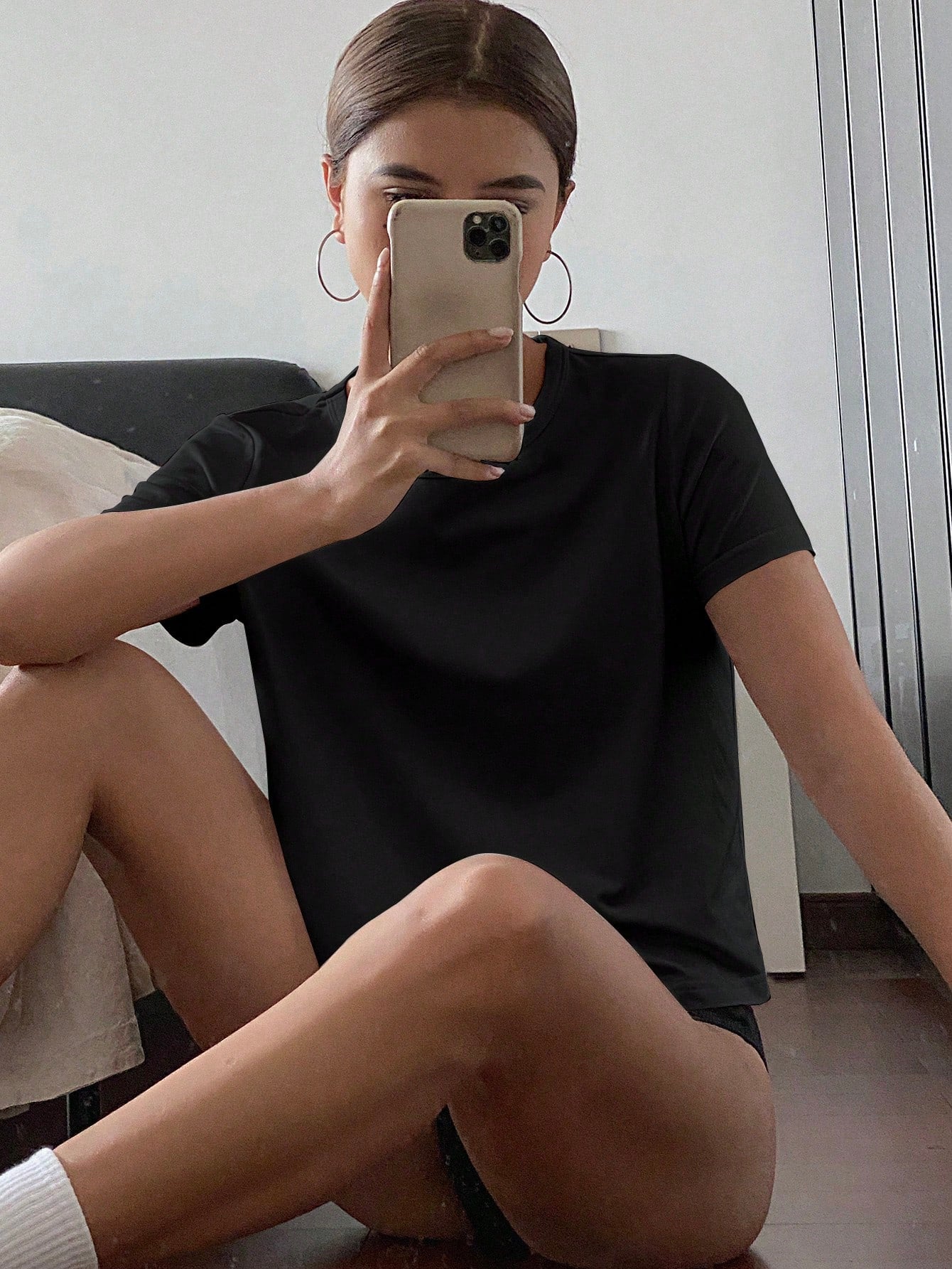 تي شيرت صيفي نسائي بأكمام قصيرة ورقبة مستديرة من Livesso بلون سادة