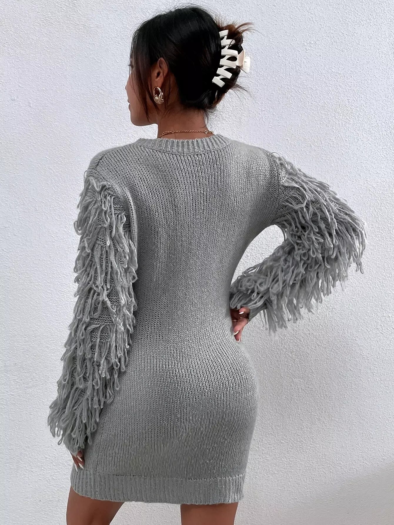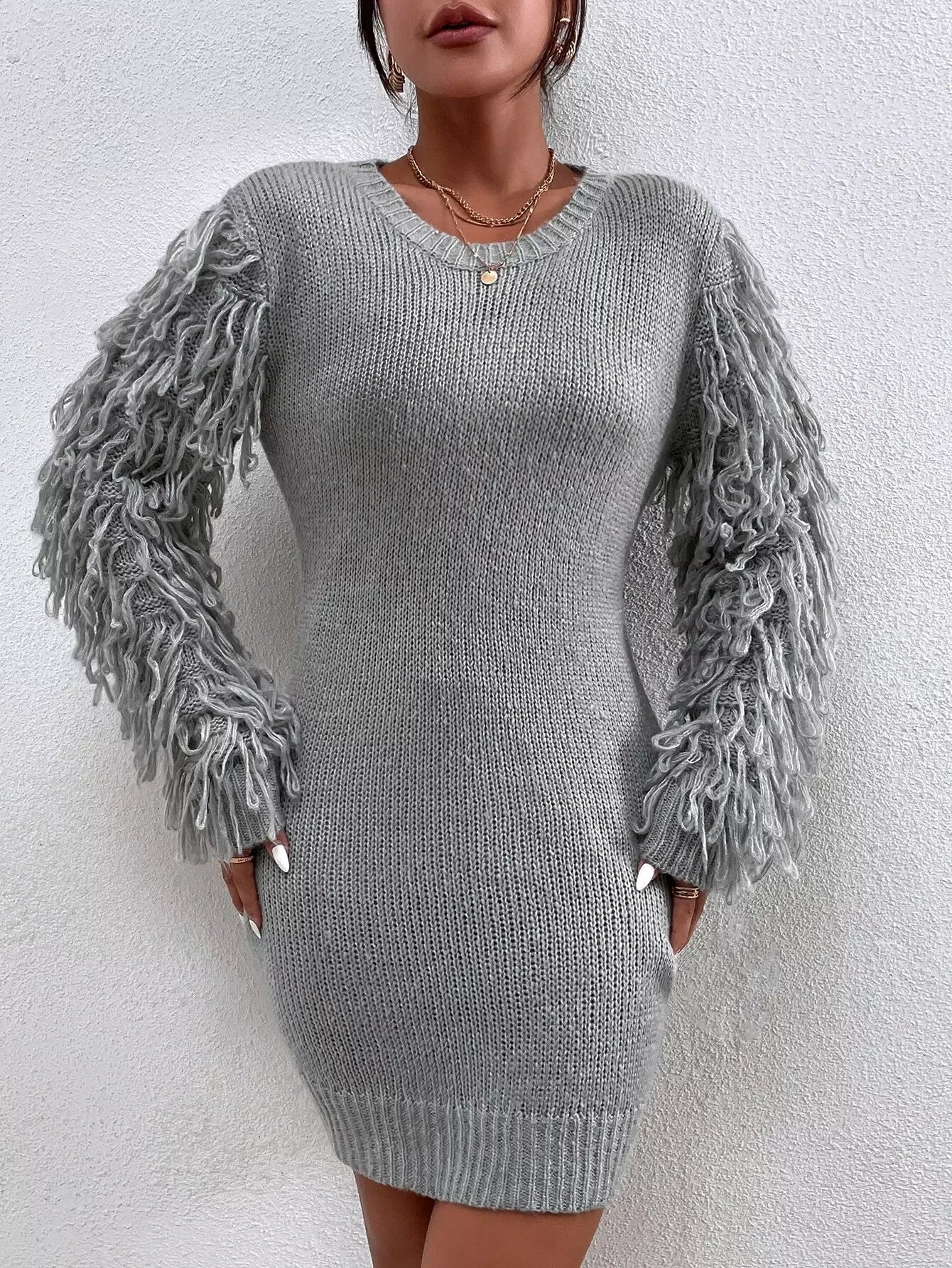 فستان بأكمام متماسكة ذات حلقات متماسكة