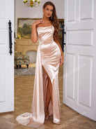 women LOVE&LEMONADE Draped Side Split Thigh Satin Formal Dress Party Dress Wedding Guest Dress Evening Dress