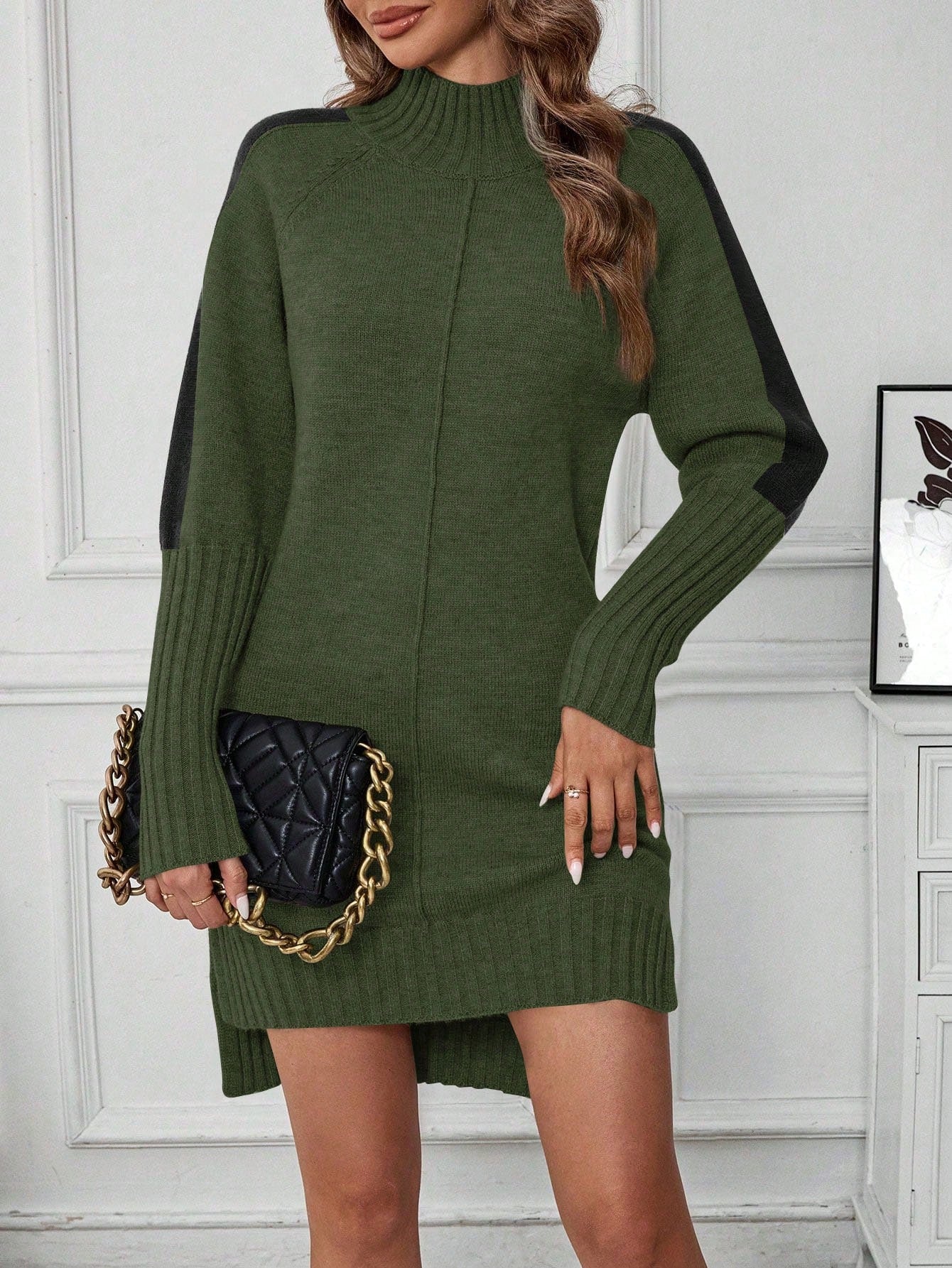 LUNE 2024 Autumn/Winter Women Half-High Collar Pullover Thick Mid-Length Sweater Dress, Flared, Loose,