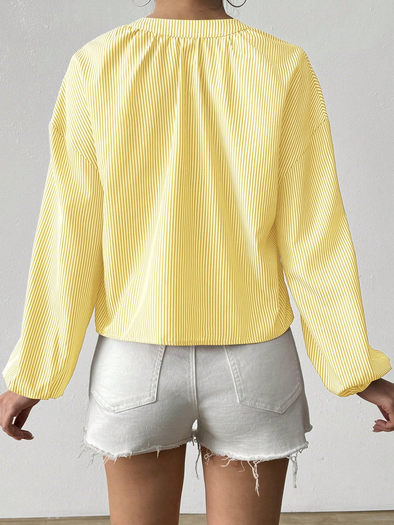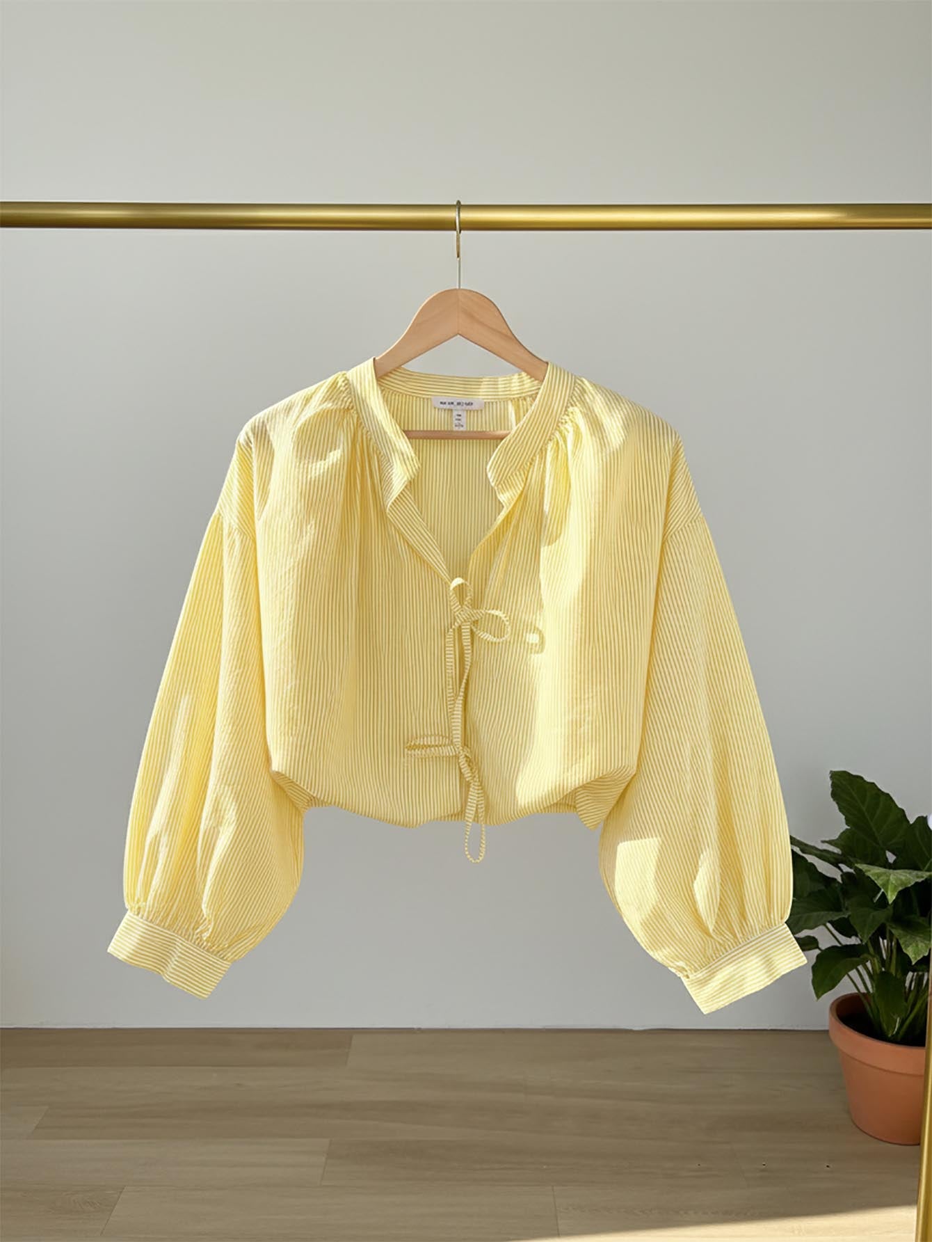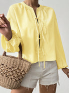 بلوزة LUNE كاجوال مناسبة للعطلات، مخططة بألوان متناقضة، برباط أمامي، للنساء