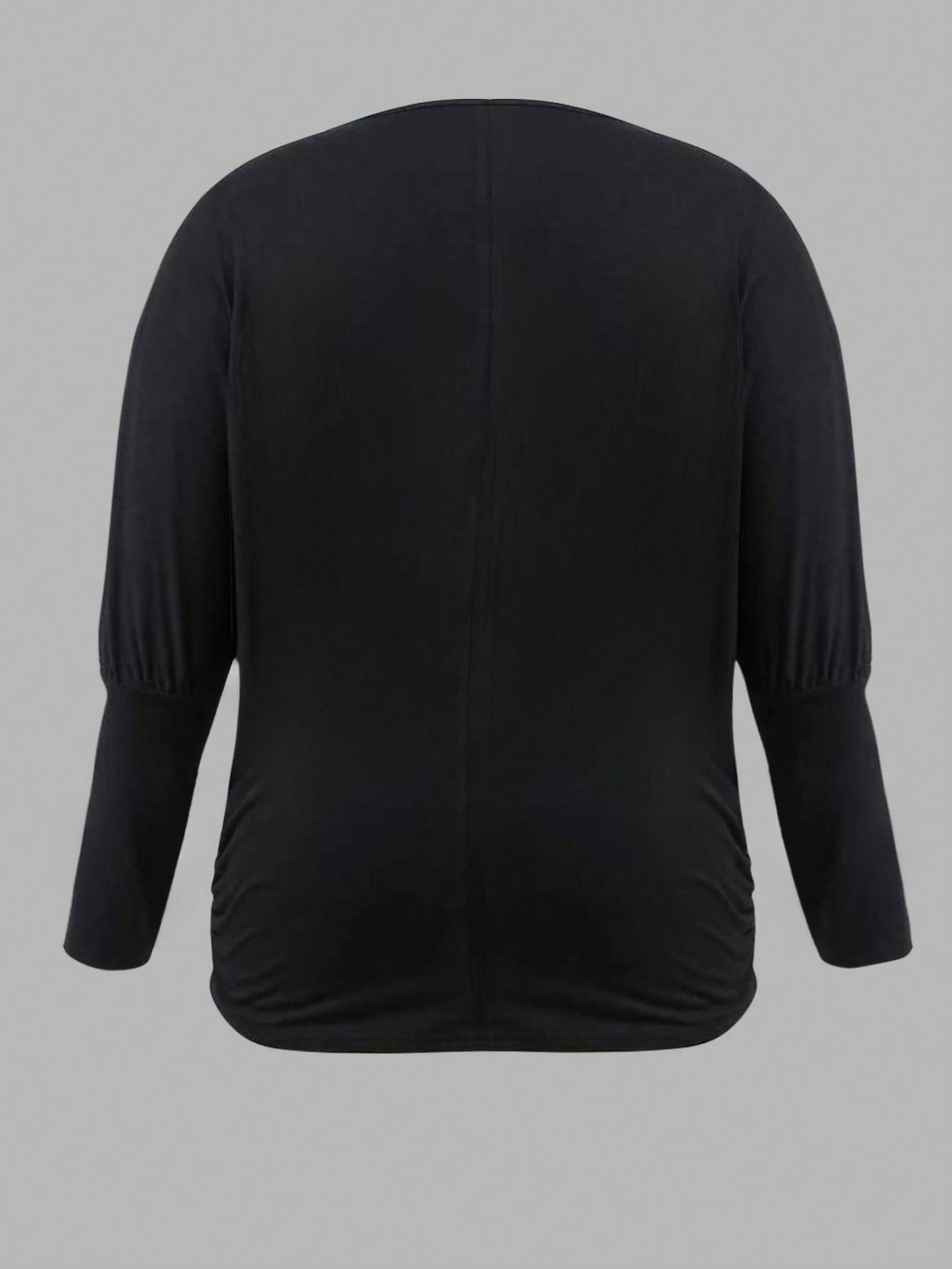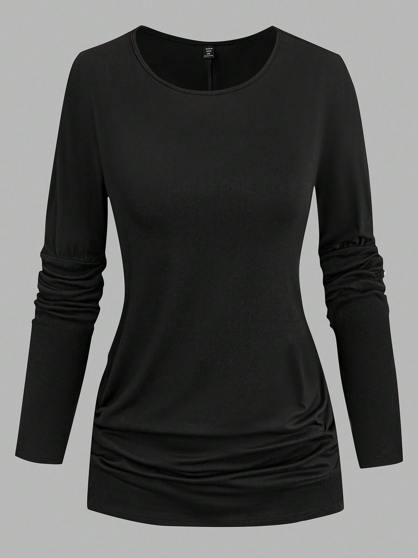 تيشيرت نسائي من لون، مقاسات كبيرة، لون سادة، محبوك، رقبة دائرية، أكمام طويلة
