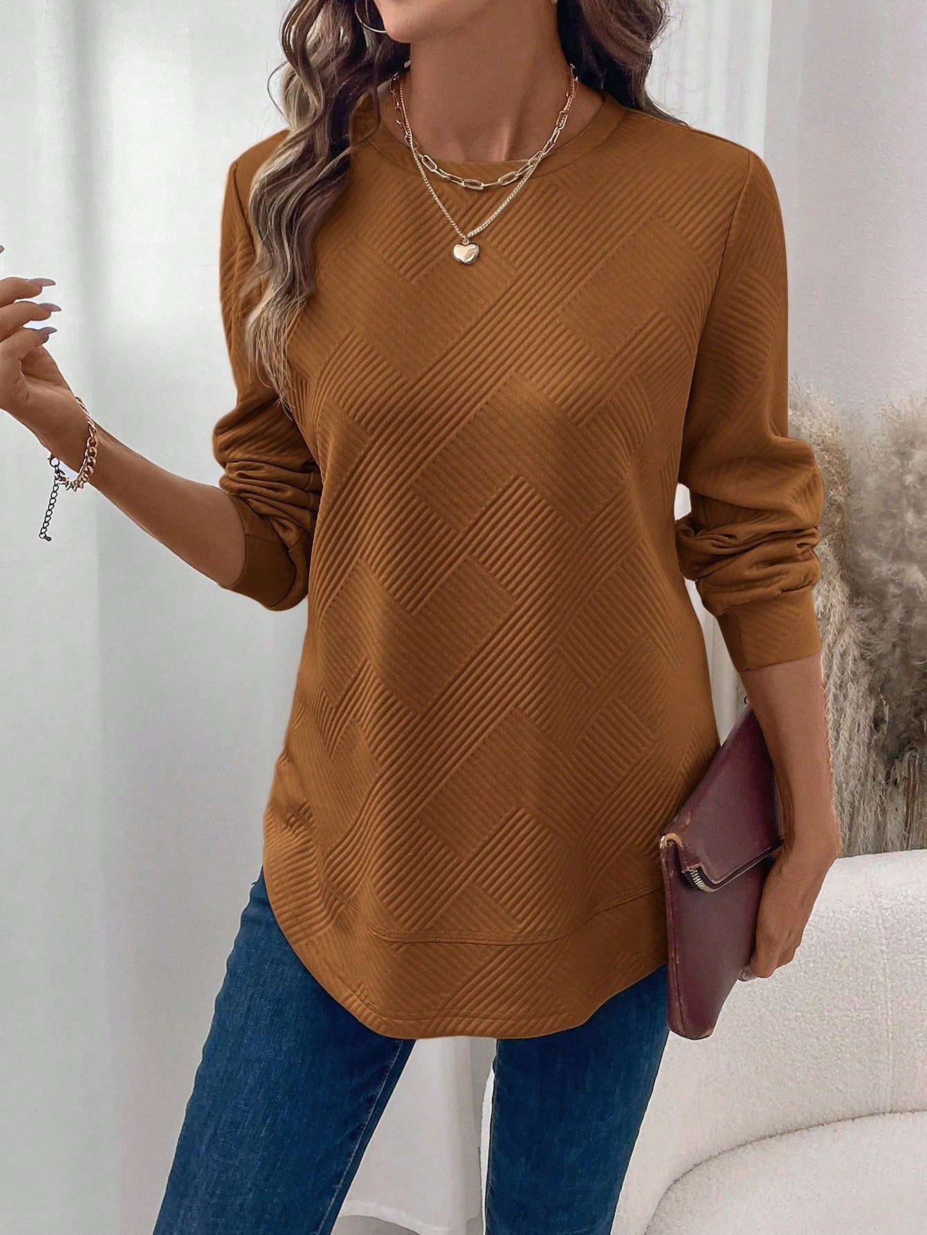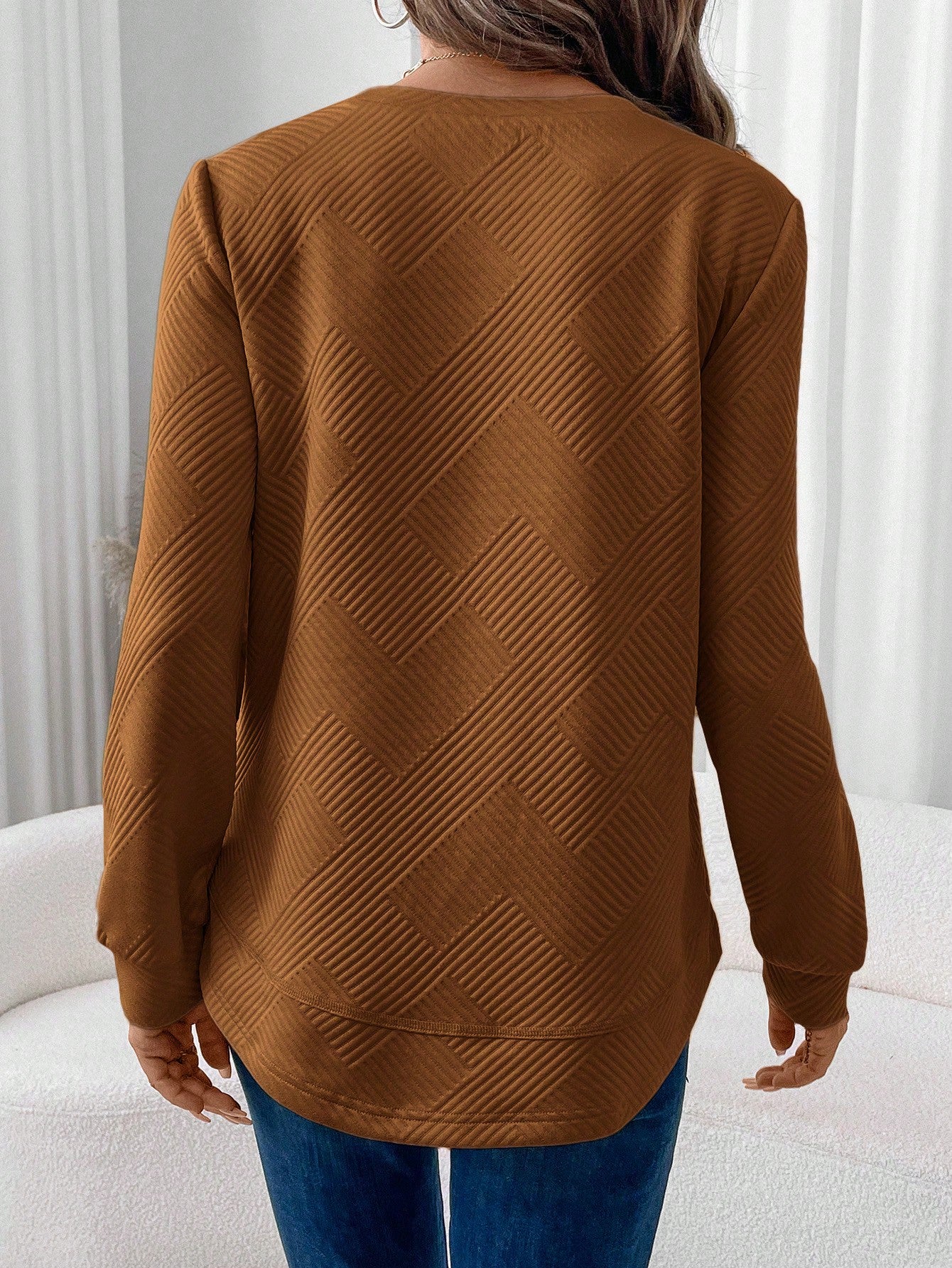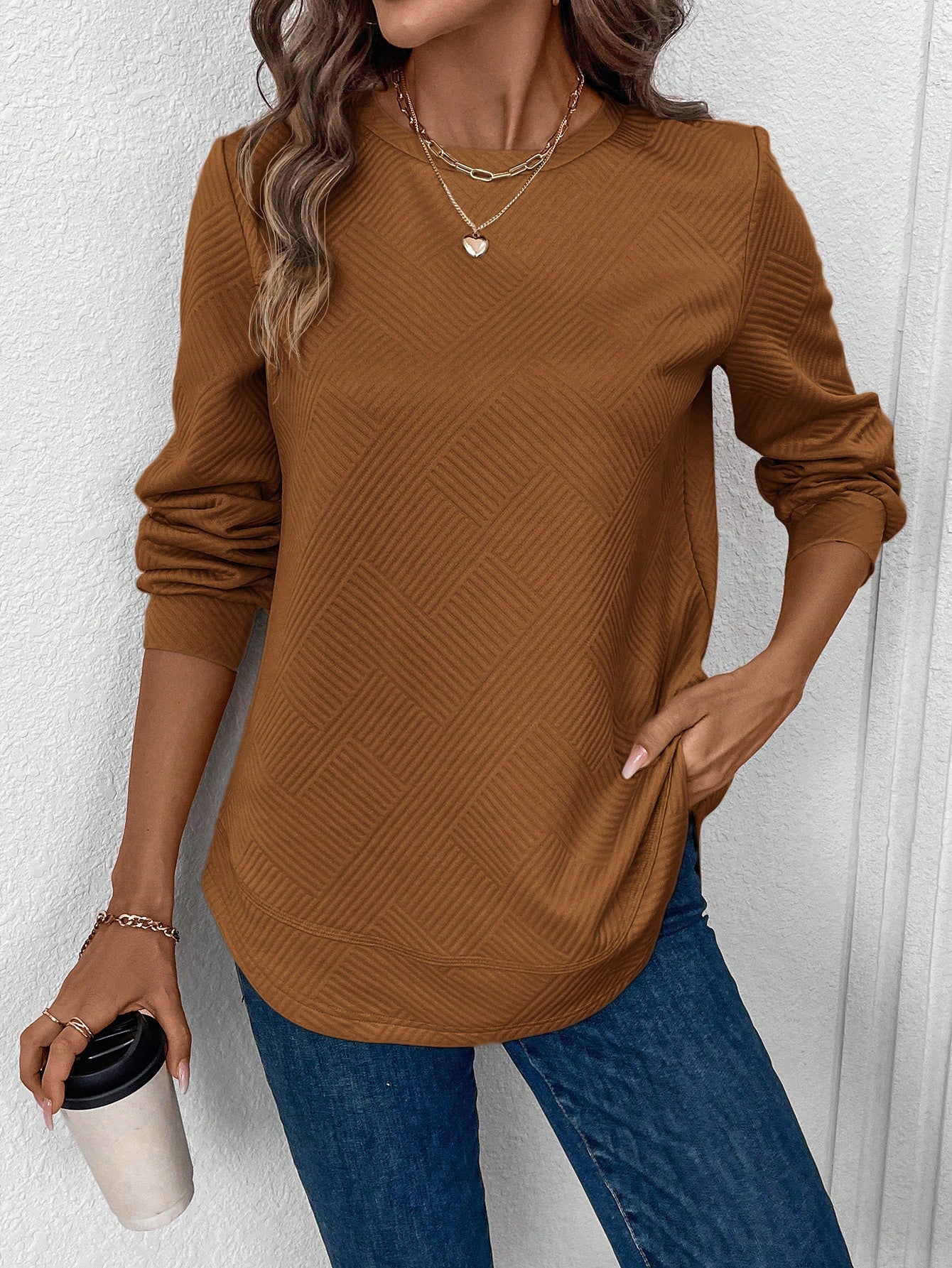 LUNE Round Neck Asymmetrical Hem Textured Knit Casual Sports Pullover Sweatshirt, Warm For Women, Autumn/Winter