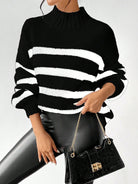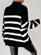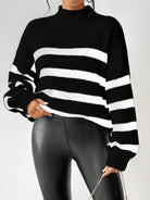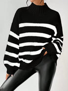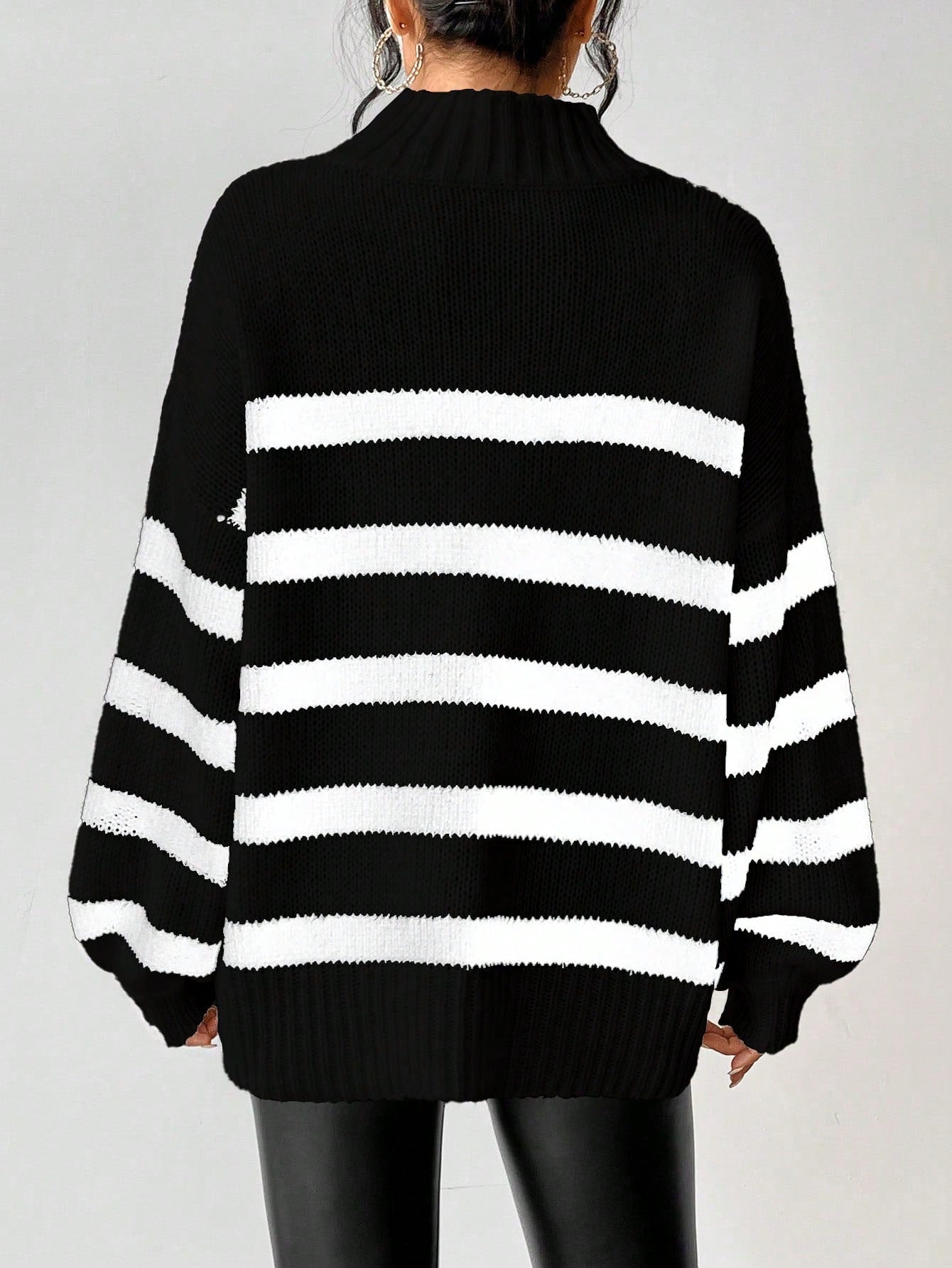كنزة LUNE مخططة بياقة عالية وأكتاف منسدلة