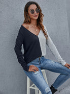 تي شيرت LUNE ثنائي اللون برقبة على شكل حرف V