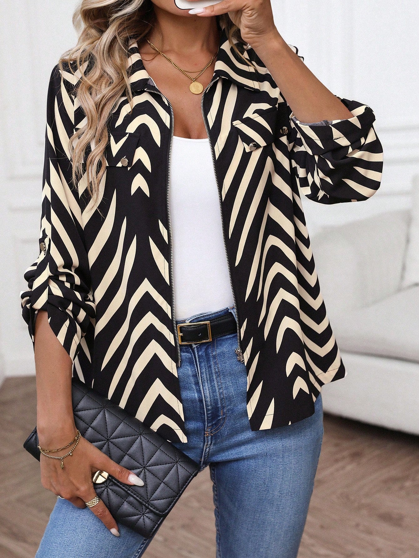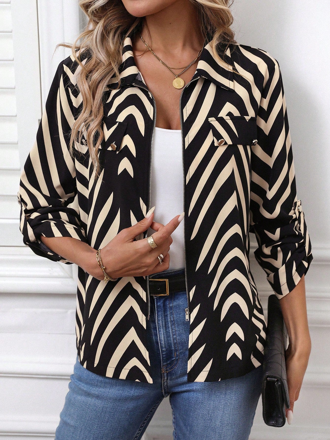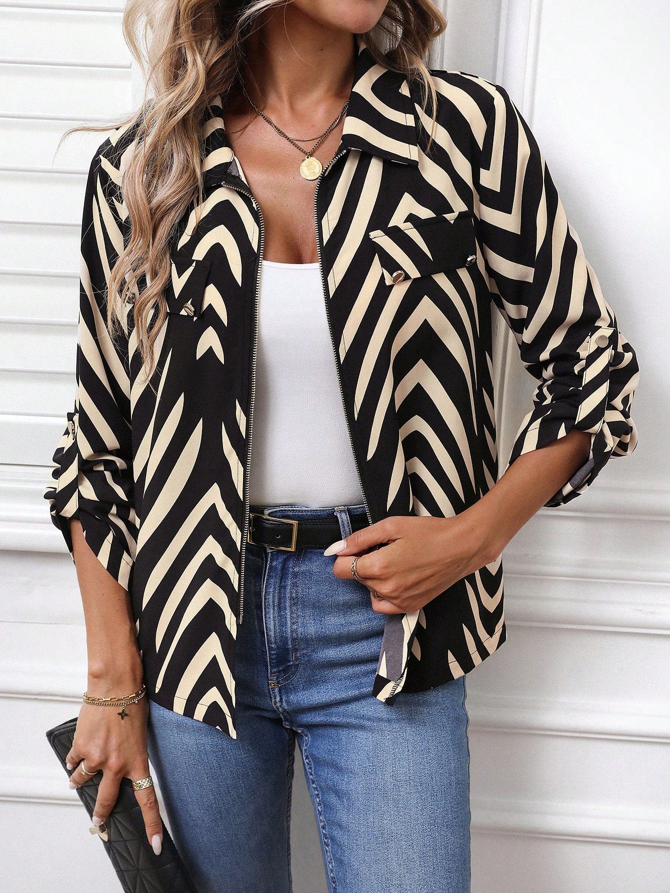 LUNE Women Casual Autumn/Winter Clothing, Basic Zip-Up Top & Blouse For Everyday Wear