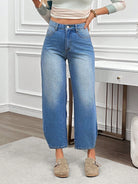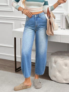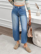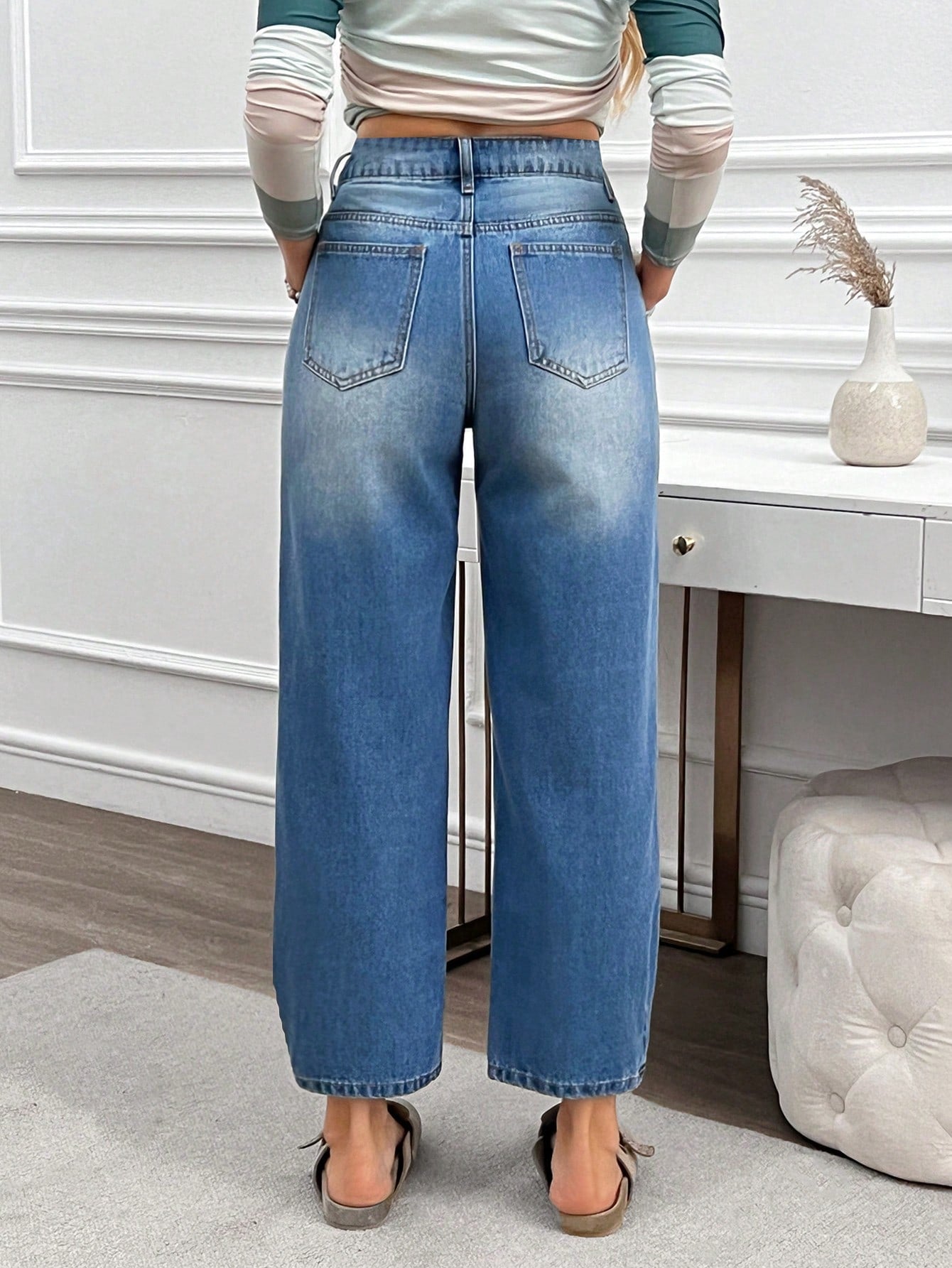 بنطلون جينز نسائي كاجوال من LUNE بجيوب أمامية وأزرار، تصميم بسيط للارتداء اليومي