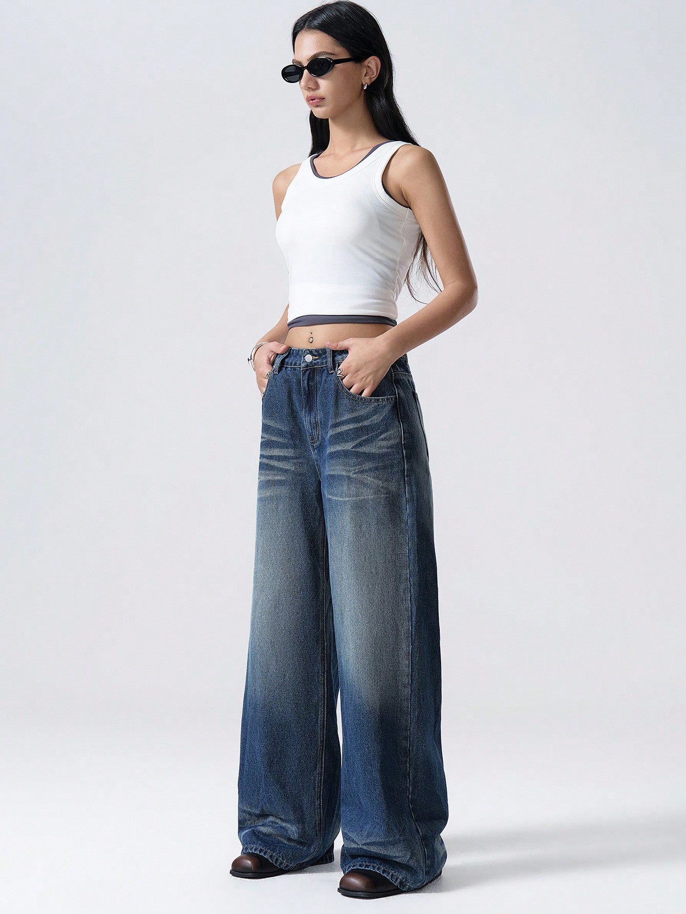 بنطلون جينز نسائي كاجوال بتصميم بسيط وجيوب أمامية بأزرار من LYSMO، مناسب للارتداء اليومي