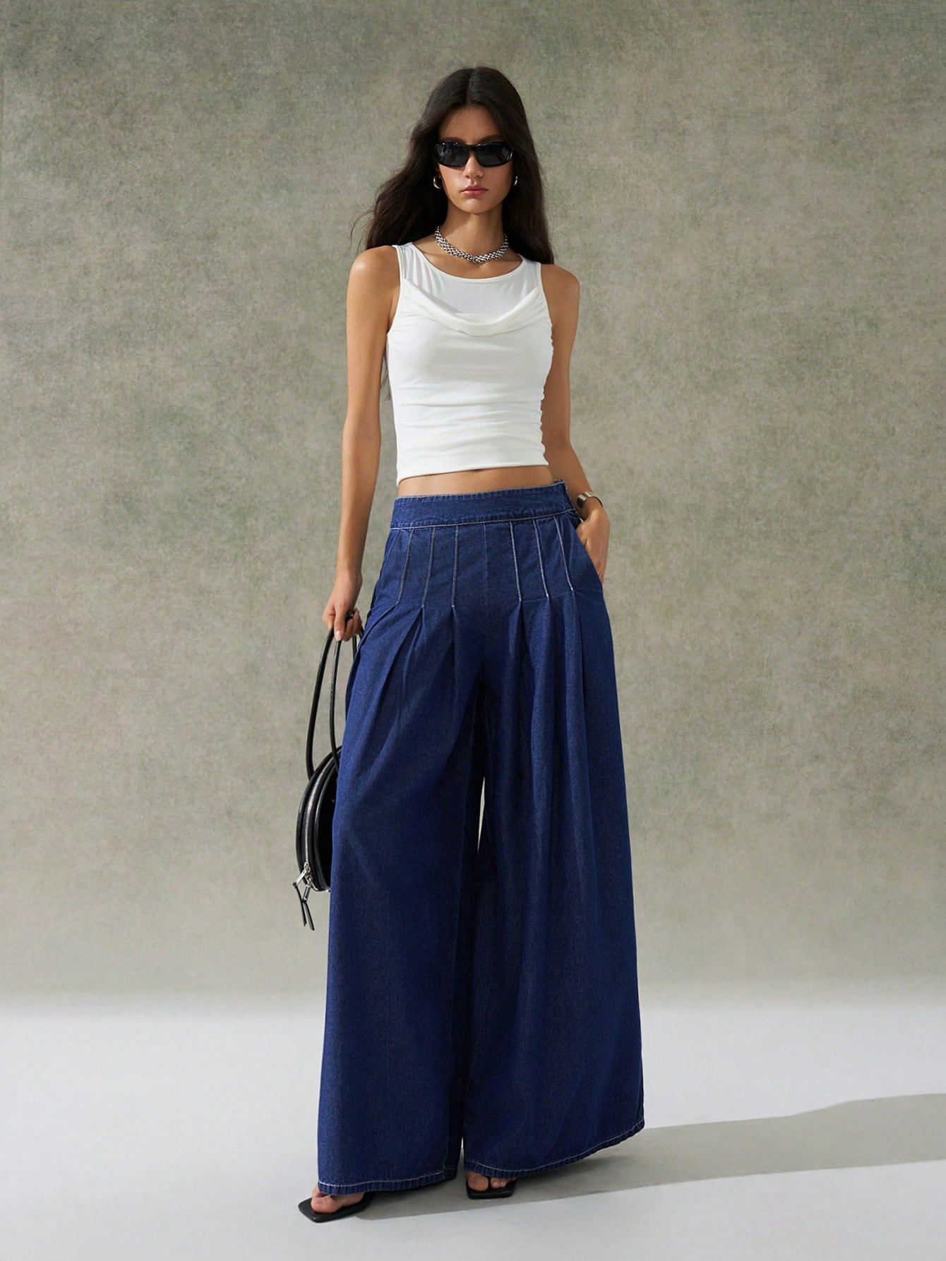 بنطلون جينز نسائي من LYSMO بلون سادة
