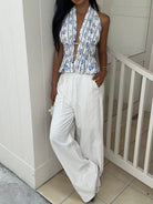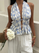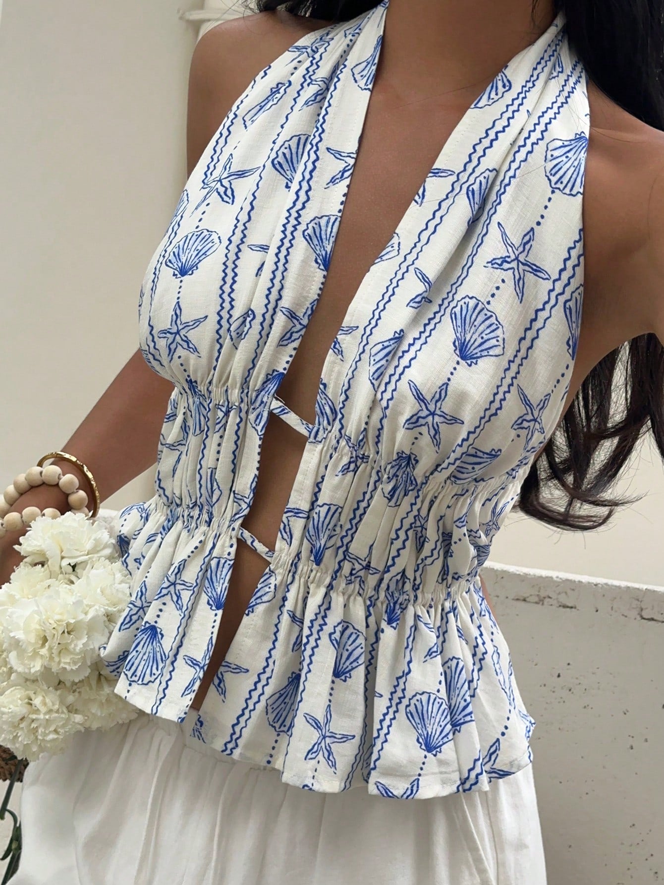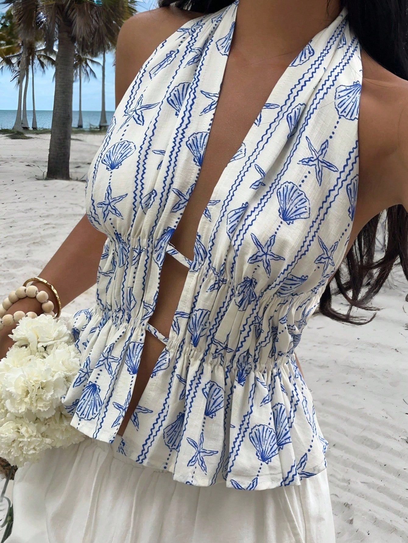 بلوزة صيفية كاجوال من MainGRL بطبعة نجم البحر والصدفة، برباط خلفي مكشوف الظهر