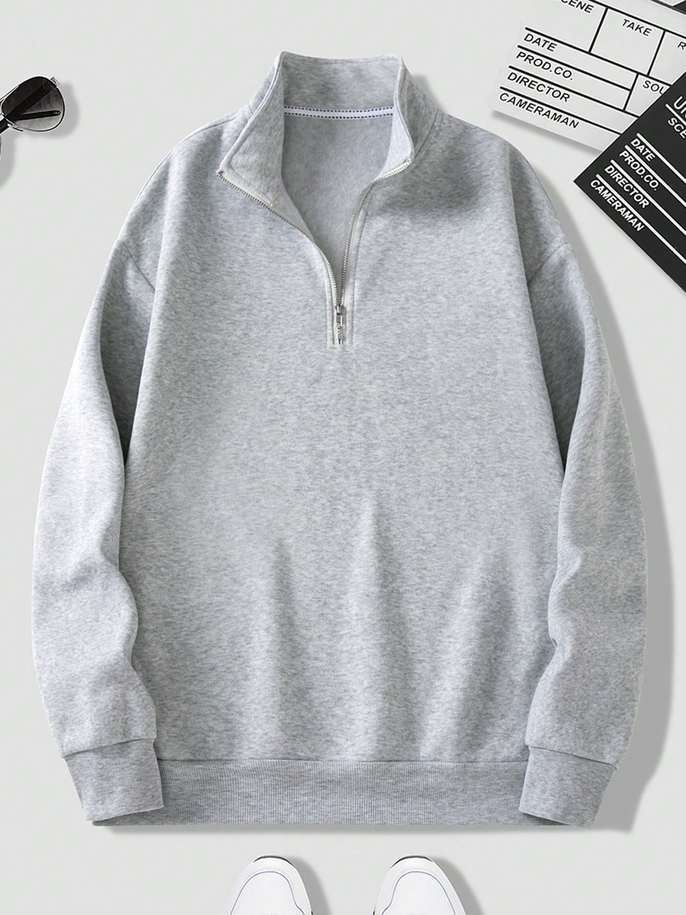 سويت شيرت رجالي من مانفينيتي داوومو بلون موحد بسحاب نصفي وسحاب ربعي