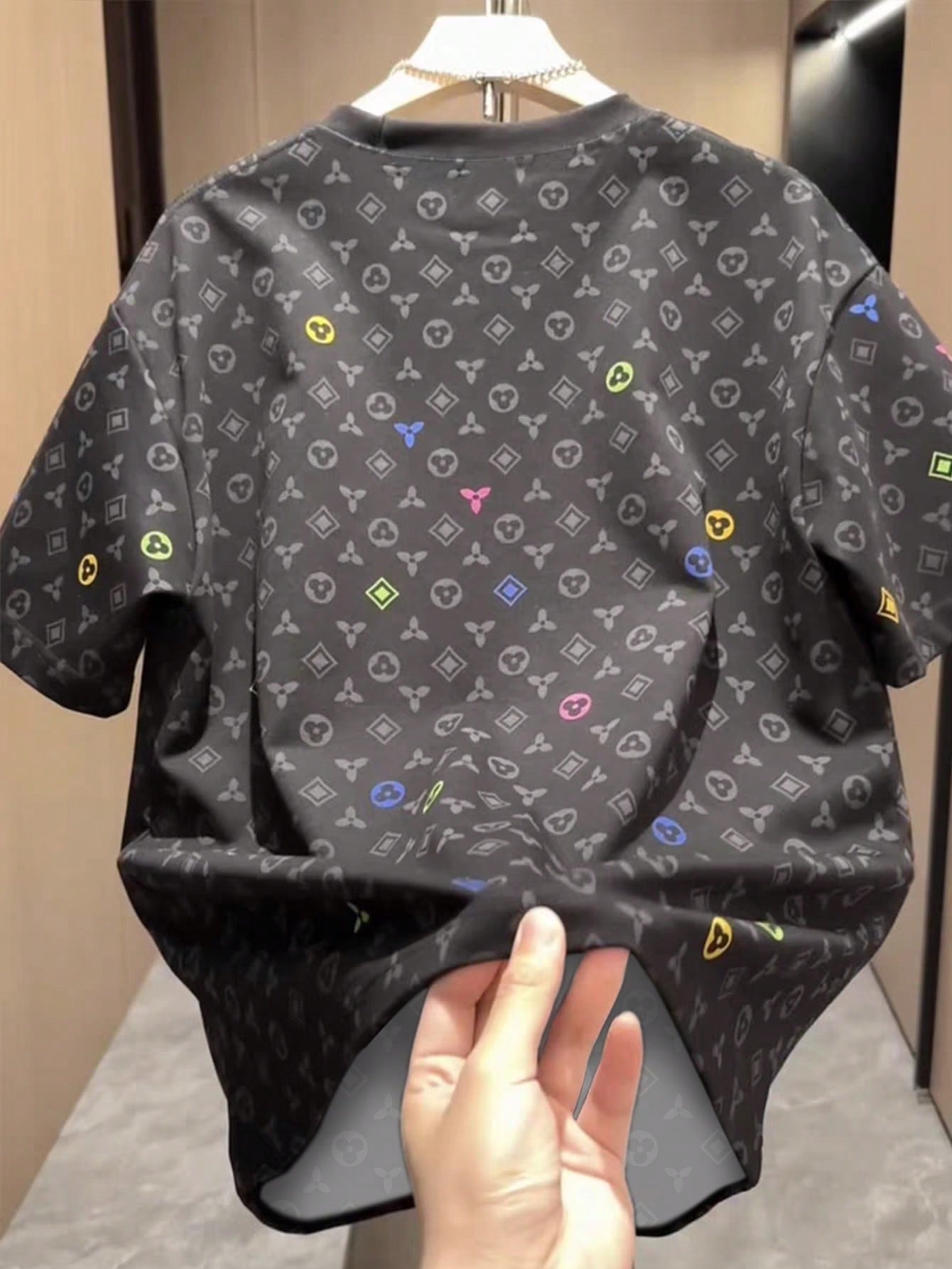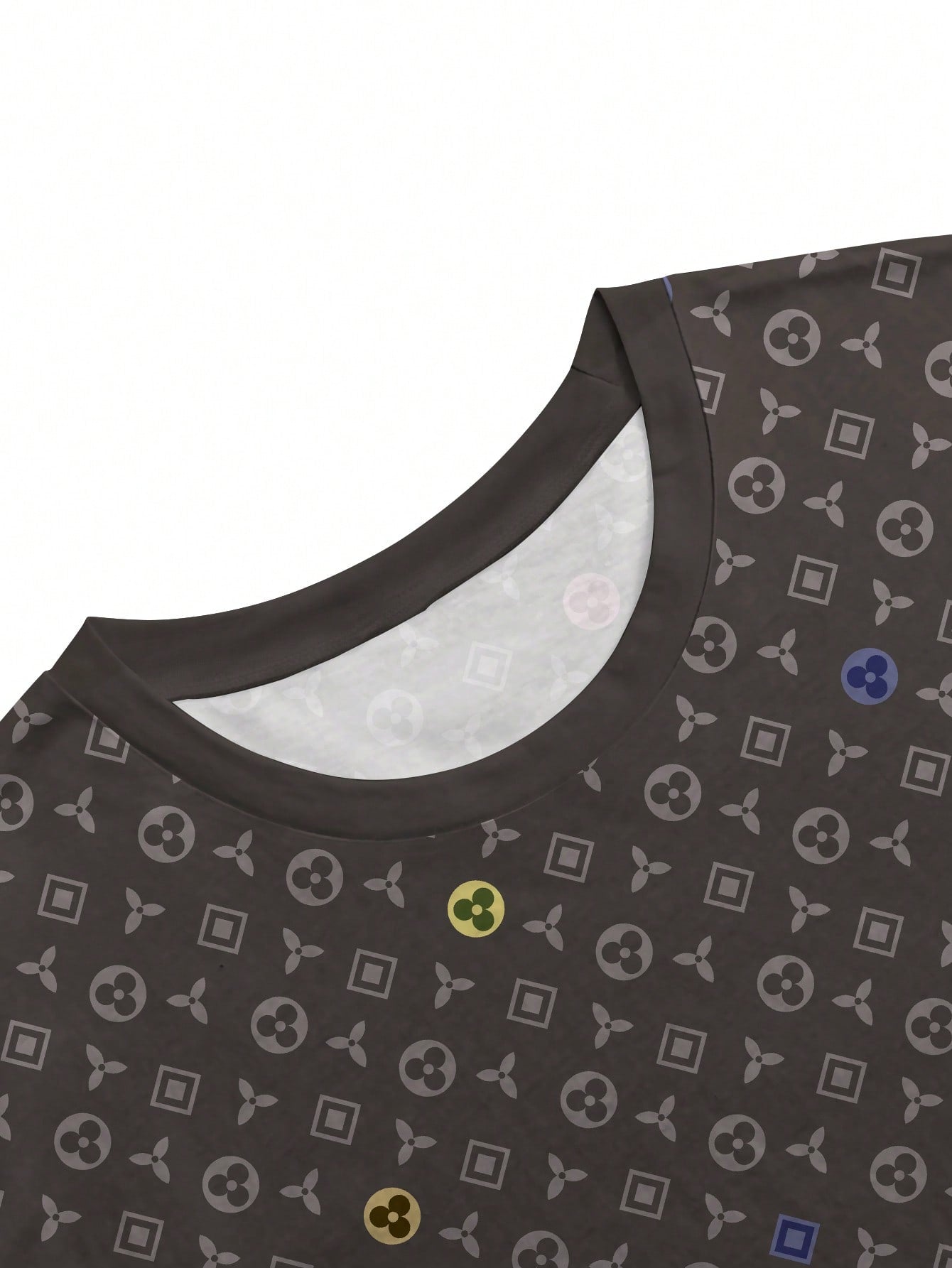 Manfinity Dauomo Men's Summer Geometric Print Round Neck Short Sleeve Casual T-Shirt