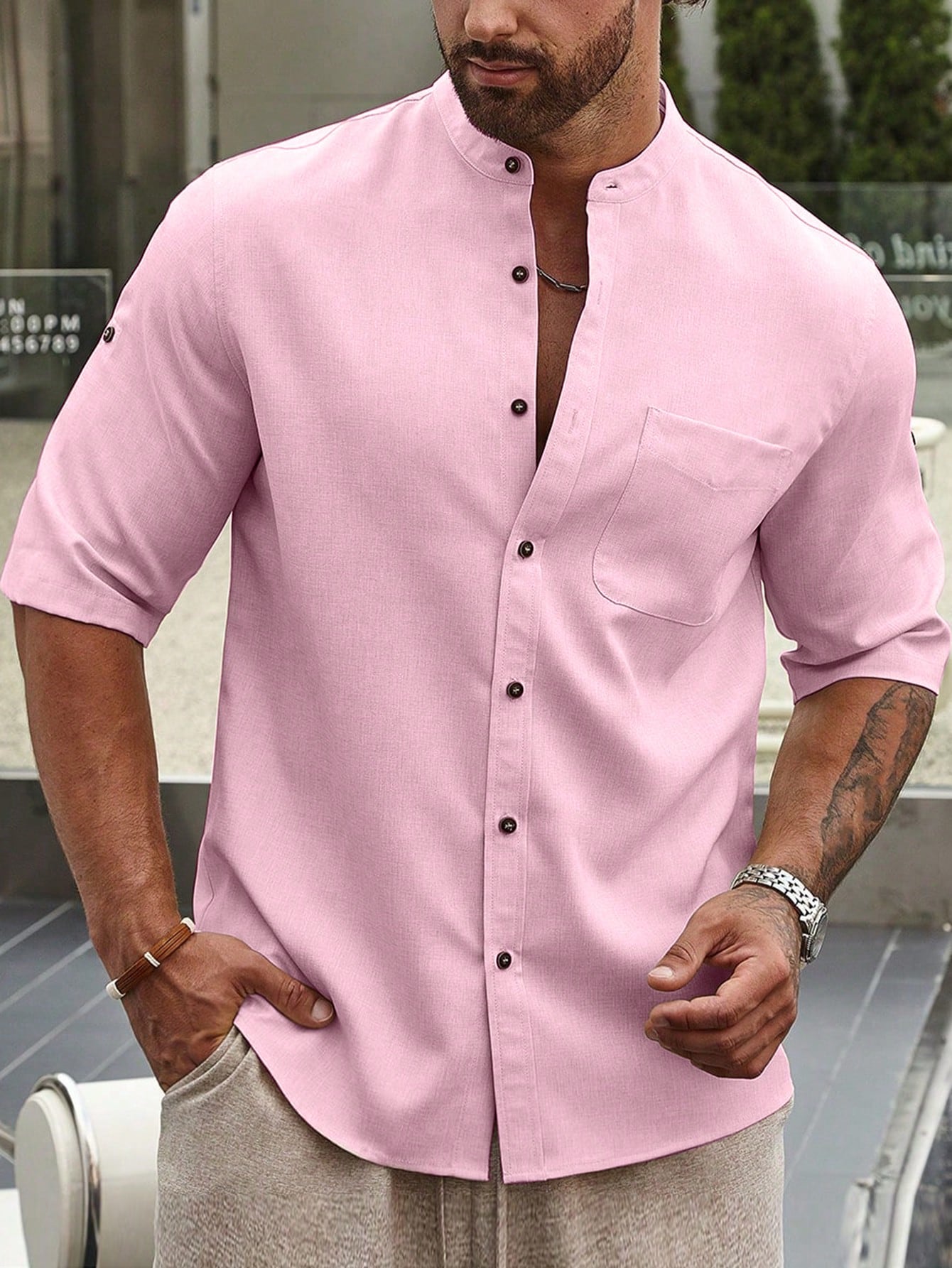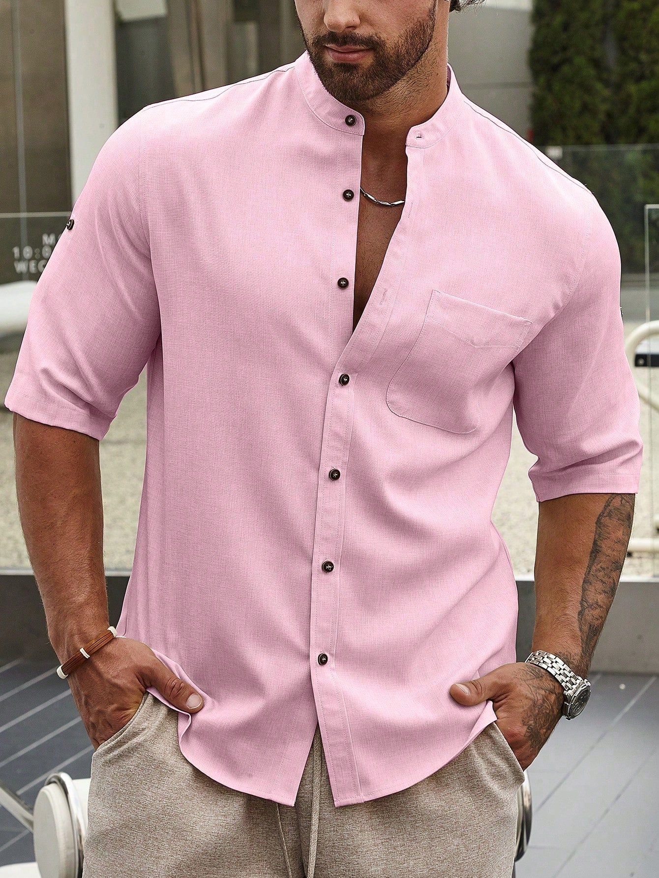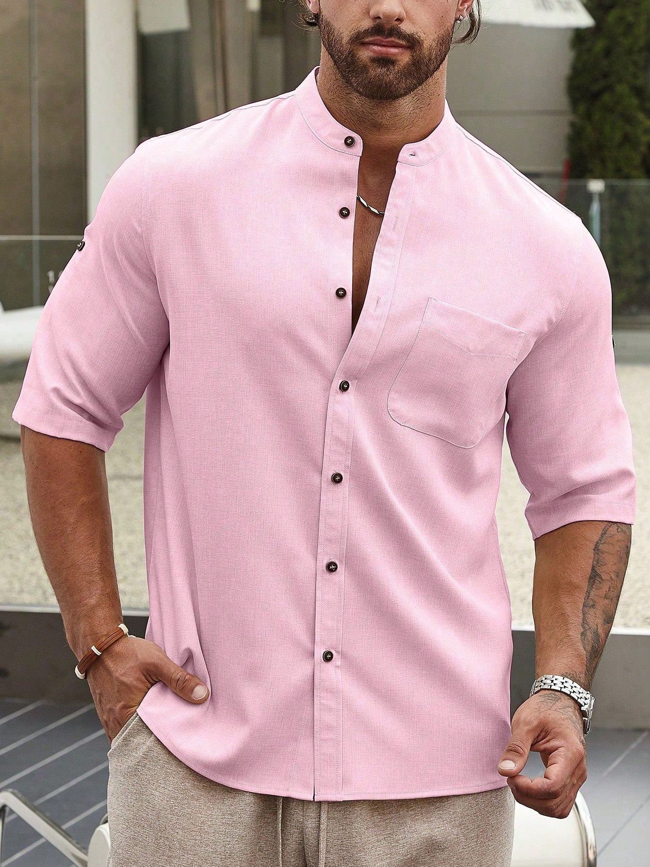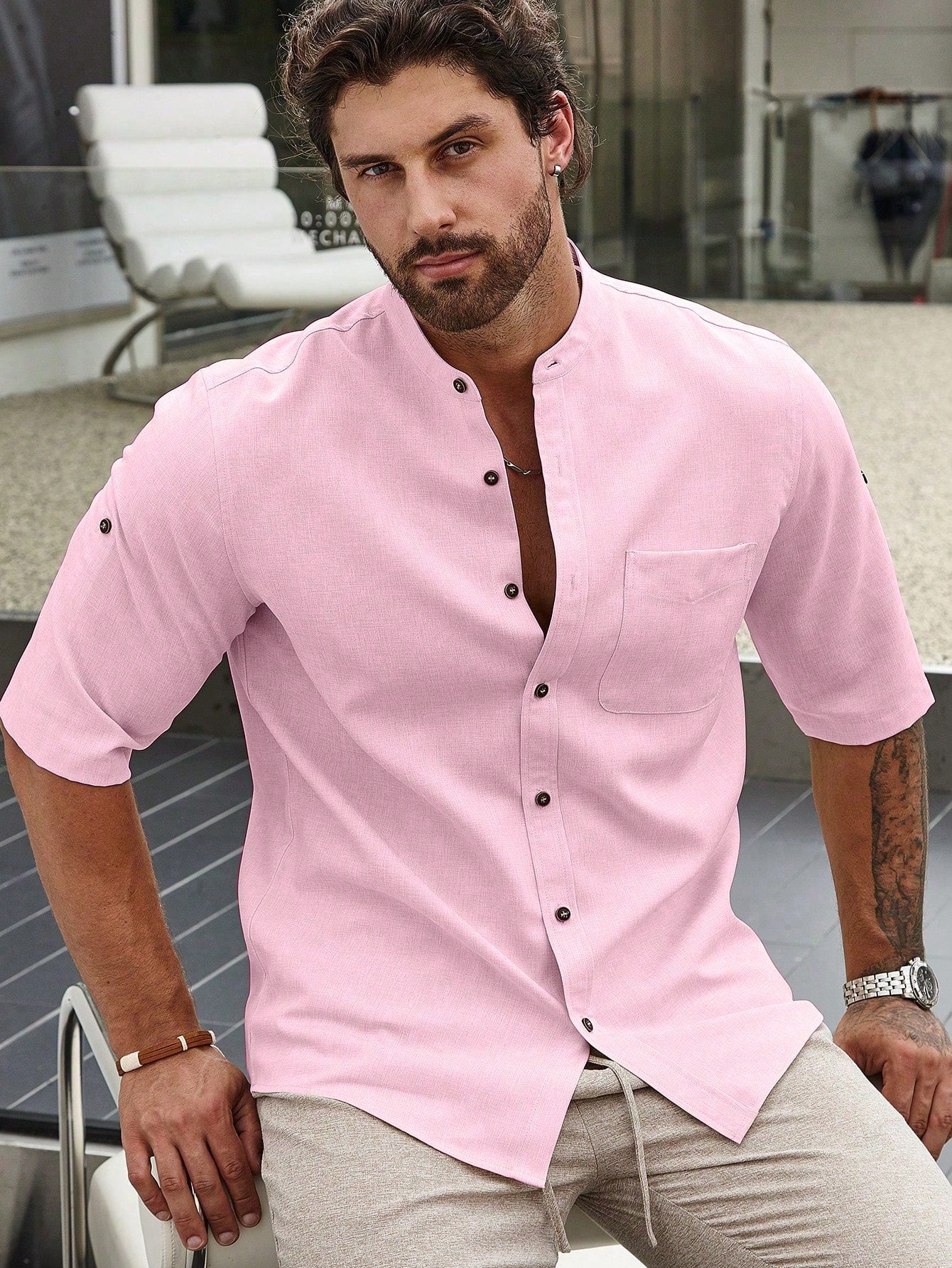 قميص رجالي سادة بأكمام قصيرة من مانفينيتي هوم، بقصة فضفاضة ولون موحد