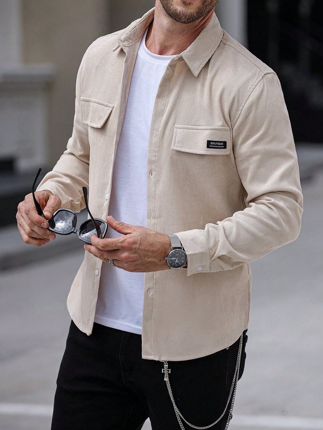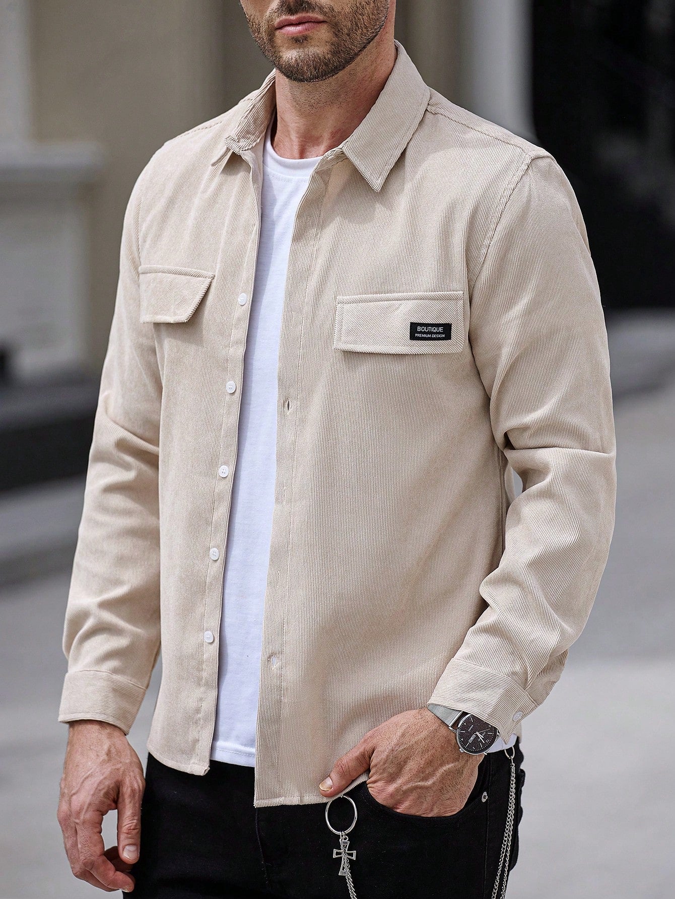 Manfinity Homme Men's Casual Front Button Long Sleeve Shirt, For Autumn