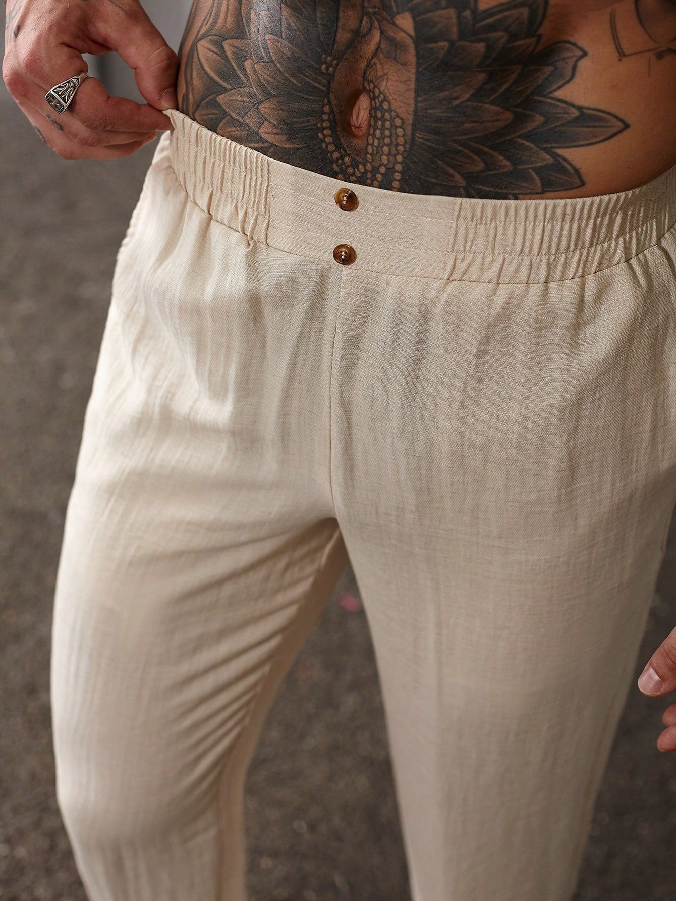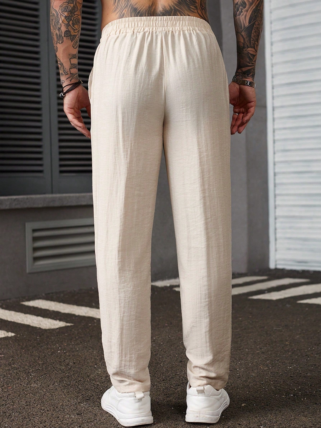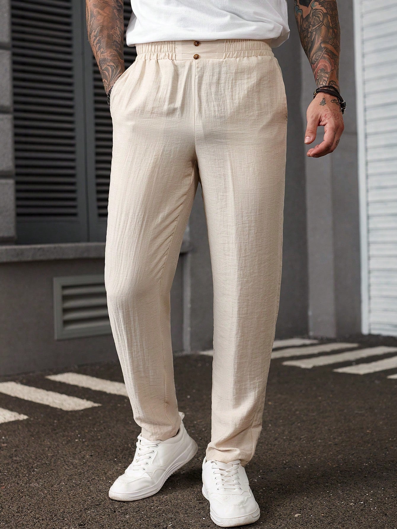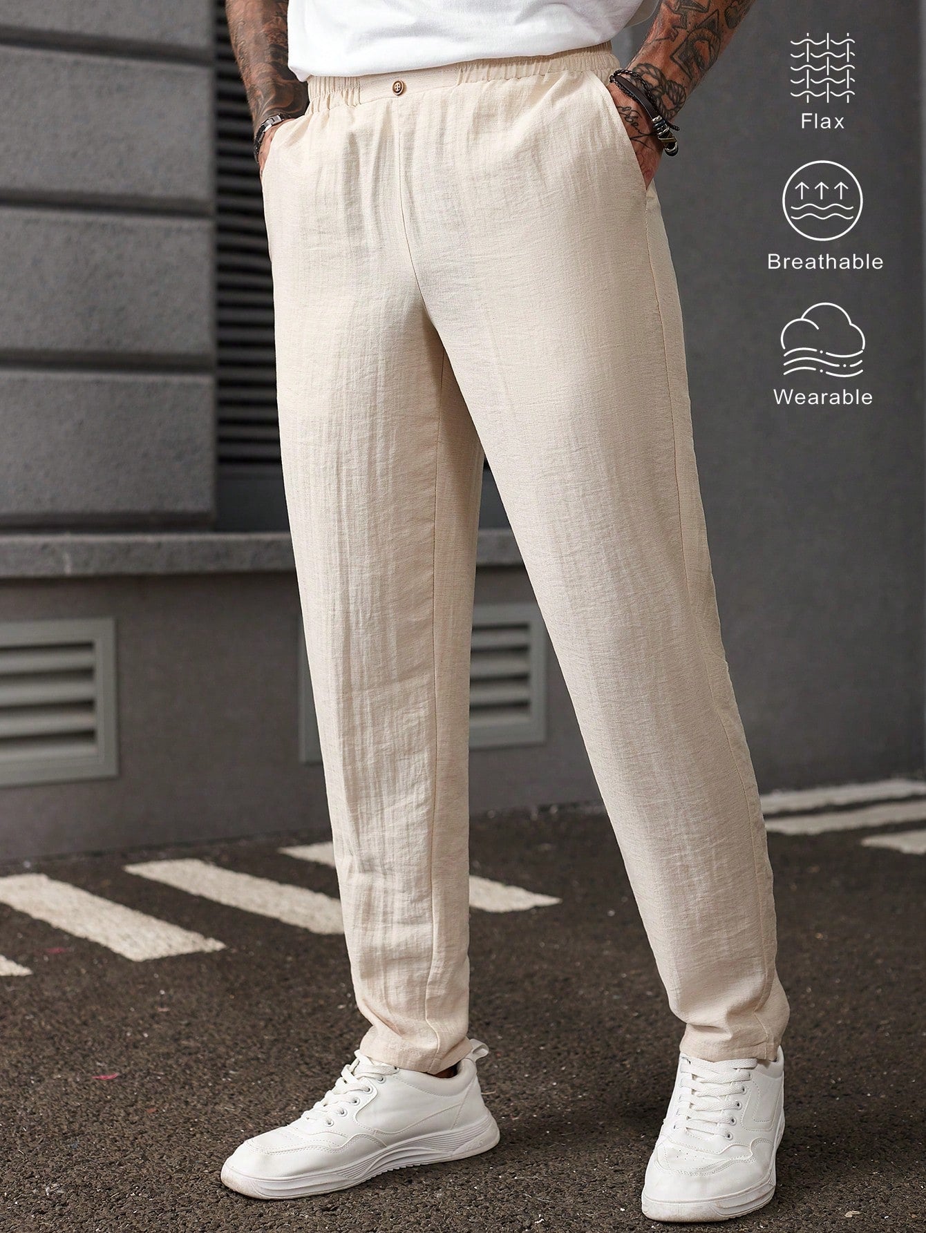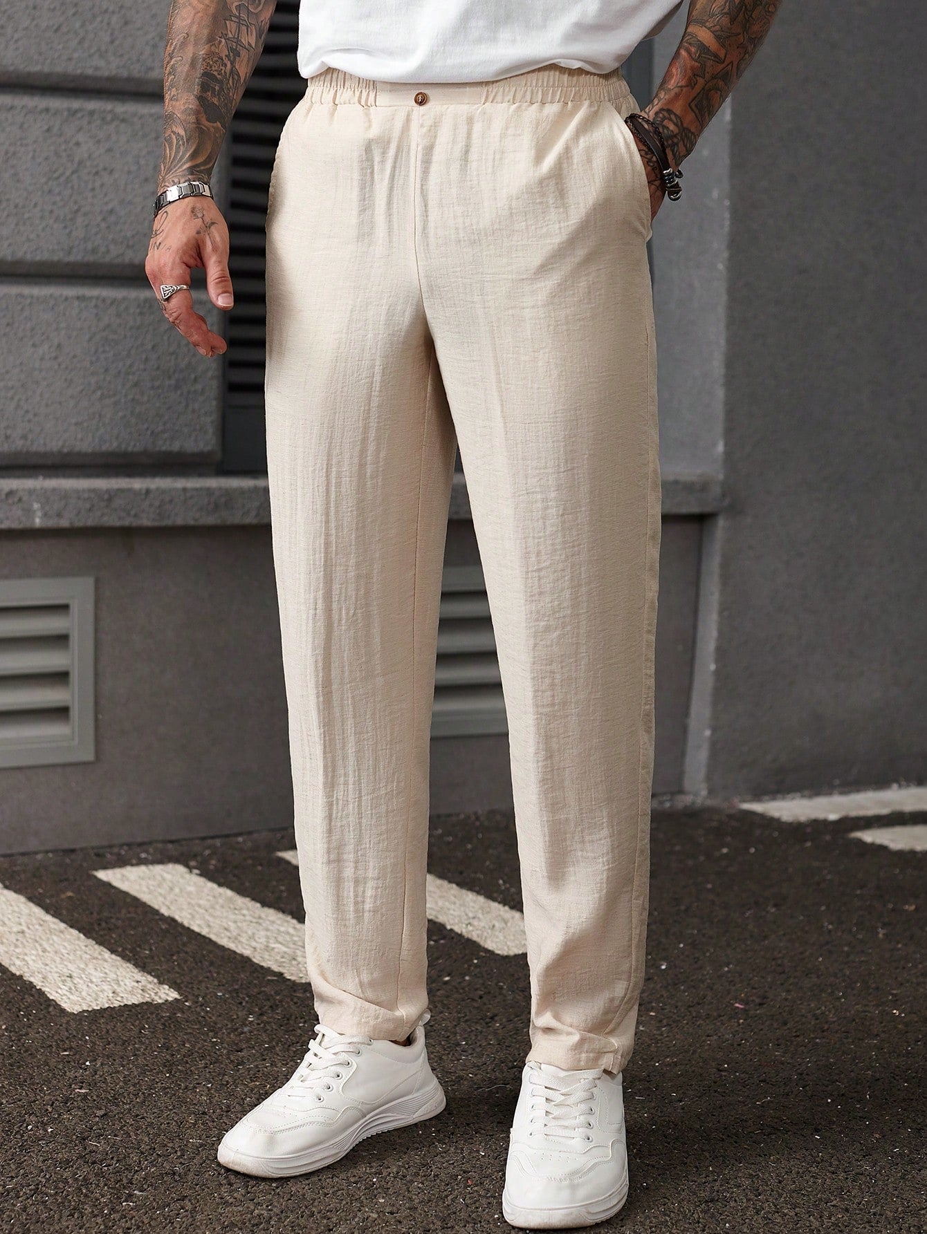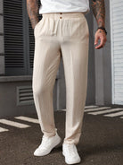 بنطلون رجالي من مانفينيتي هوم بلون موحد، مزود بجيوب، بتصميم كاجوال متعدد الاستخدامات وقصة ضيقة