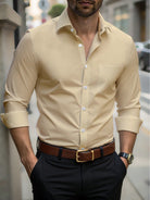 قميص رجالي من Manfinity Mode بلون واحد بأكمام جيب وجيب وأكمام طويلة، قمصان رجالية ملائمة، ملابس للرجال، قمصان رجالية، قمصان رجالية، قمصان رجالية كاجوال