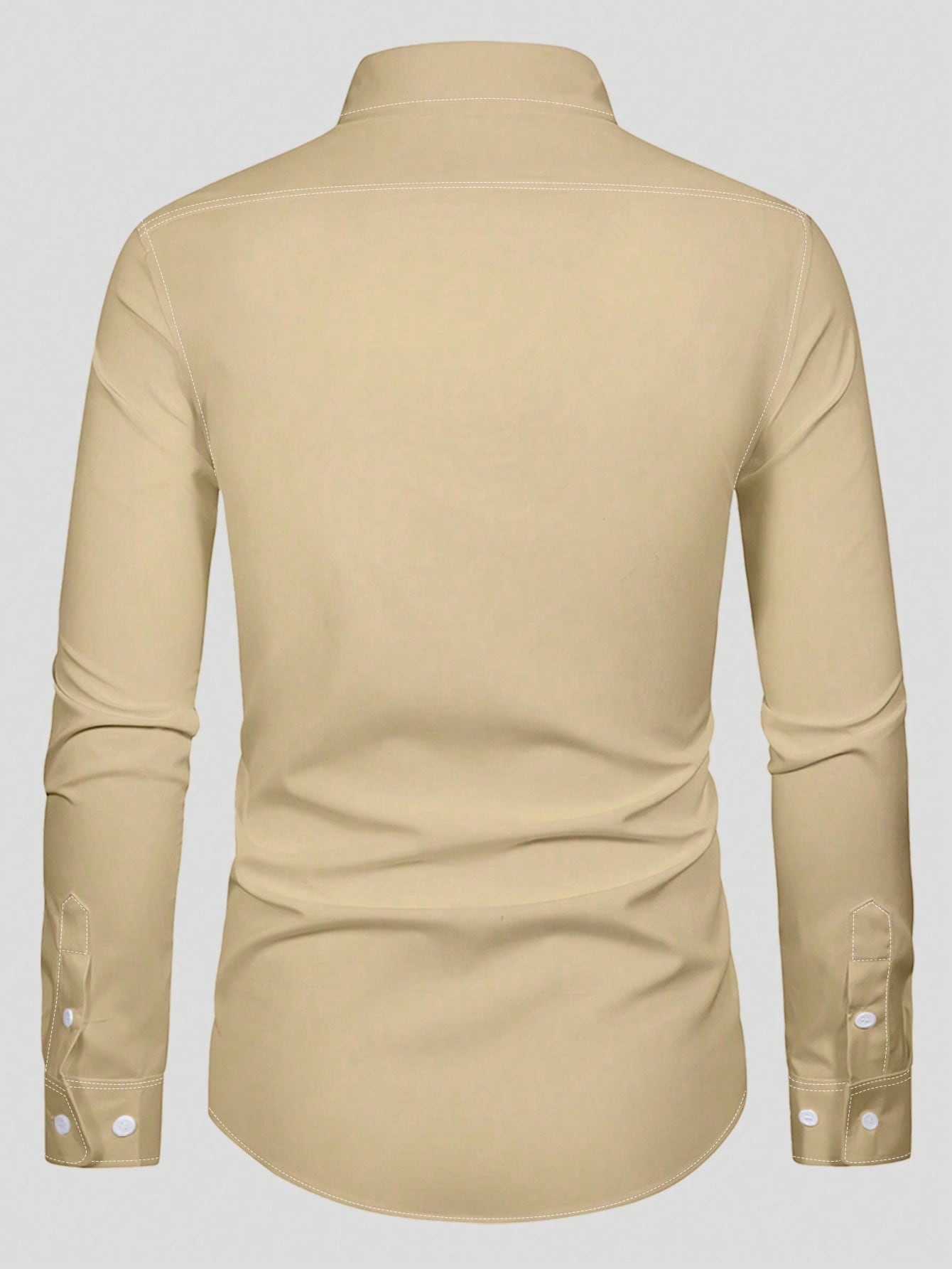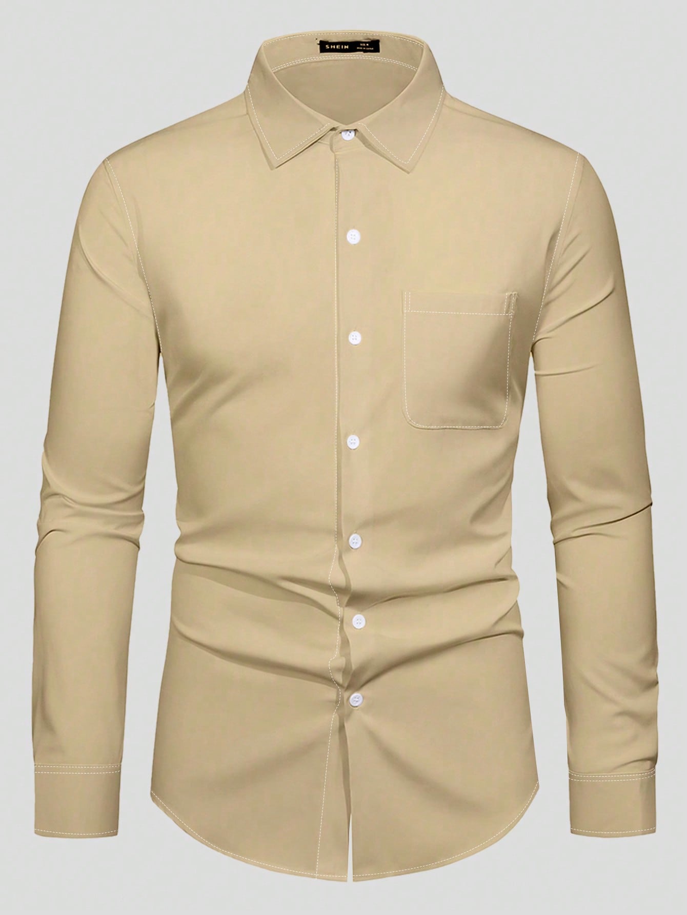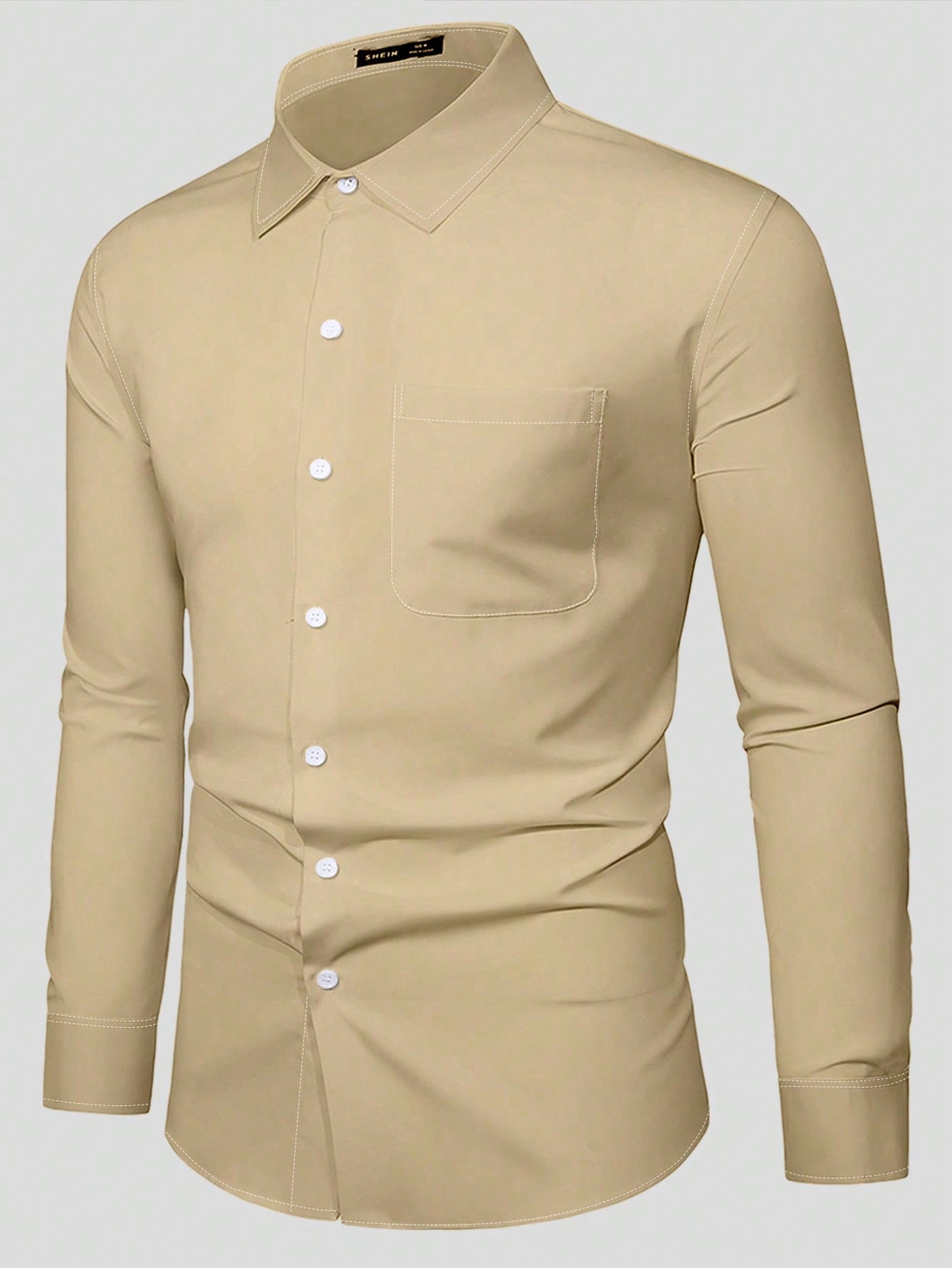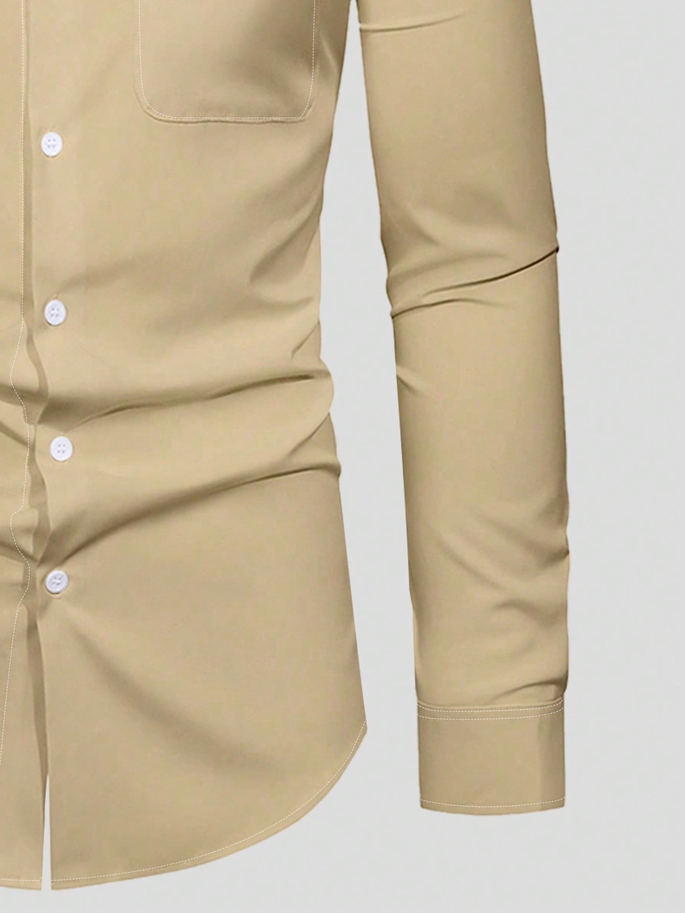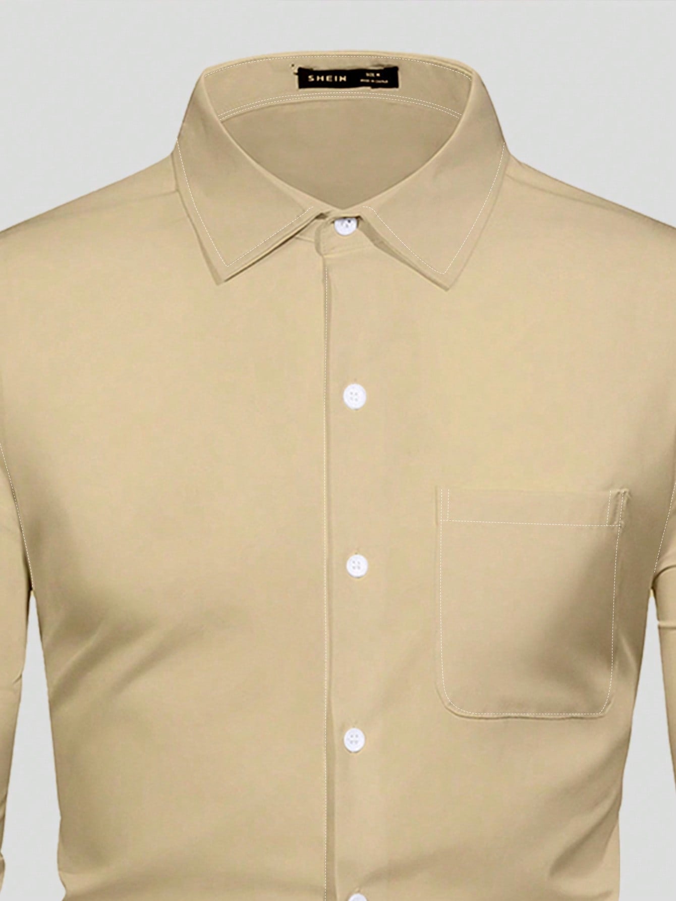 men Manfinity Mode Men's Solid Color Single-Breasted Pocket Sleeve Commuter Long Sleeve Shirt Men Fitted Shirts Clothes For Men Men Shirts Shirts For Men Men Casual Dress Shirts
