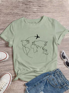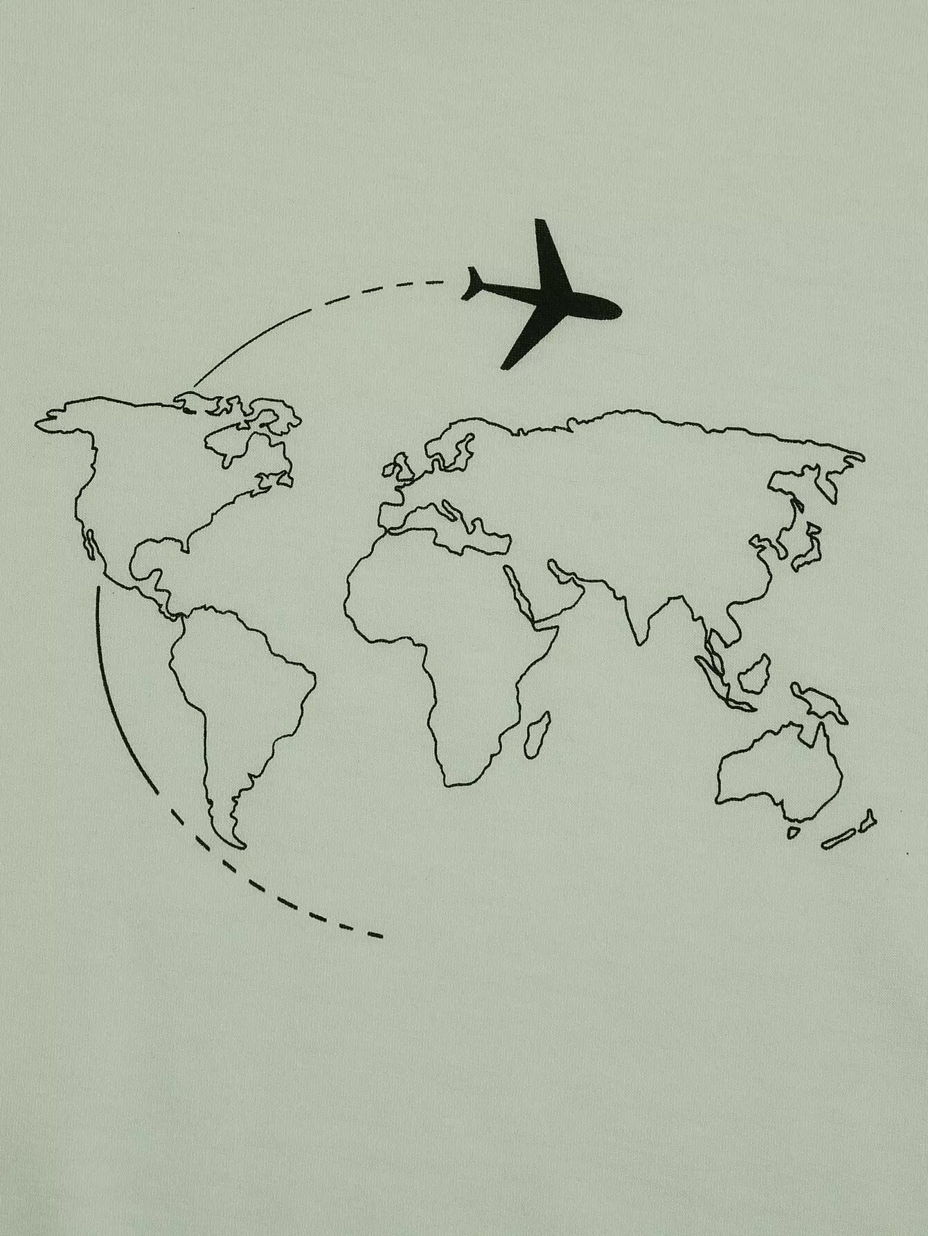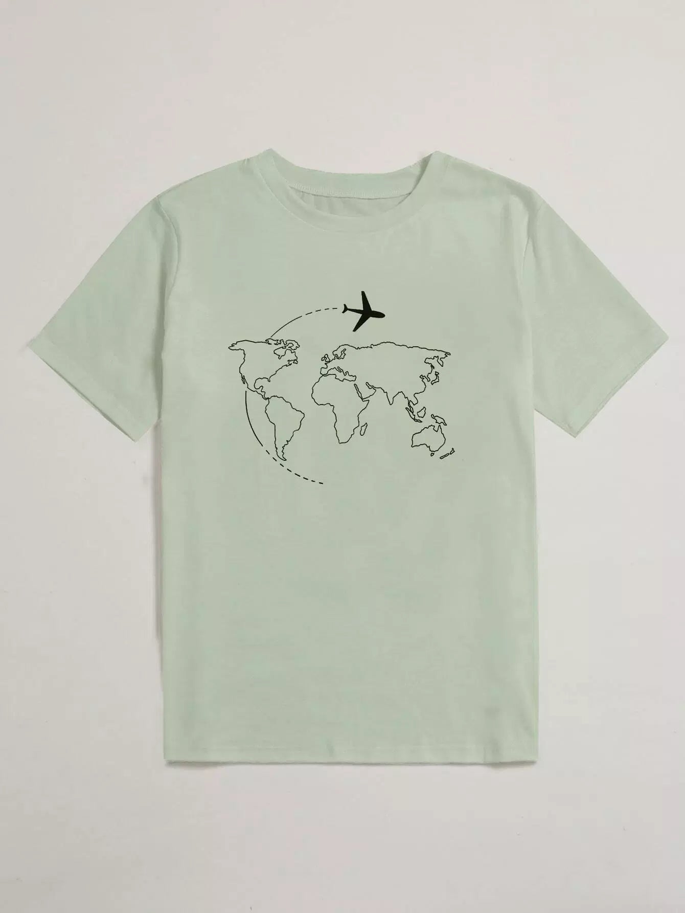 تي شيرت بأكمام قصيرة مطبوع عليه خريطة