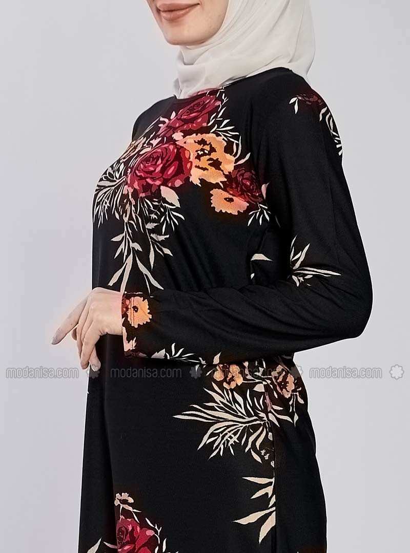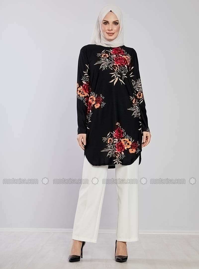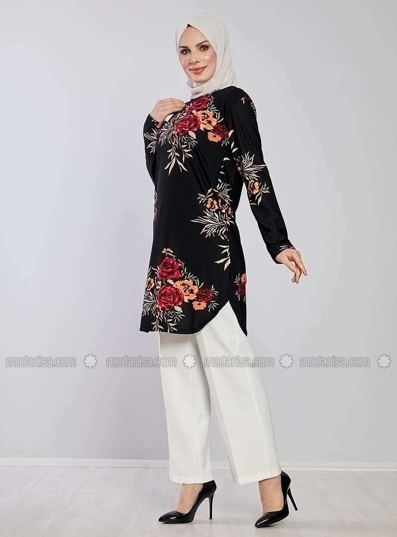 تونيك ذو رقبة دائرية باللون الأسود الماروني