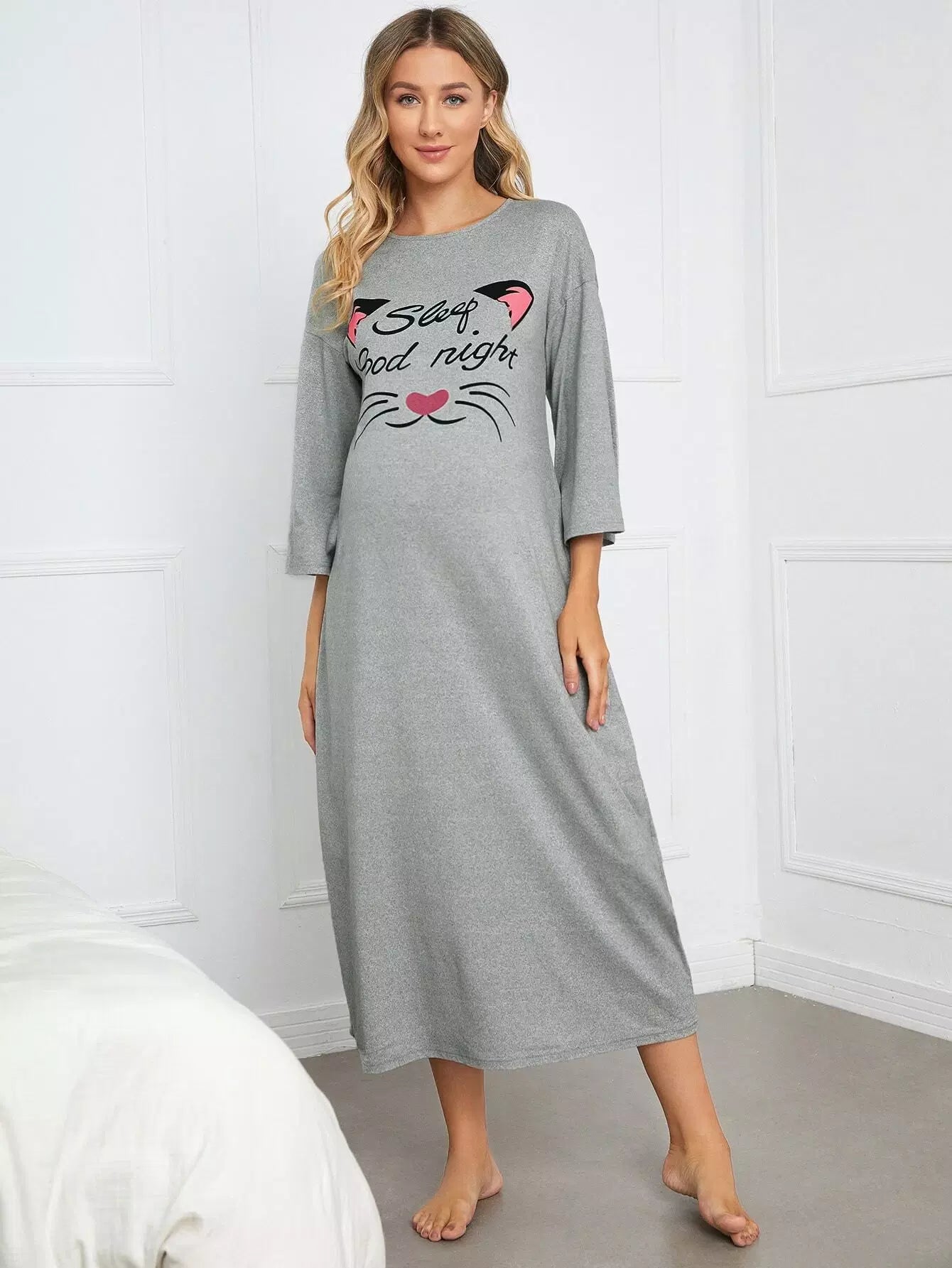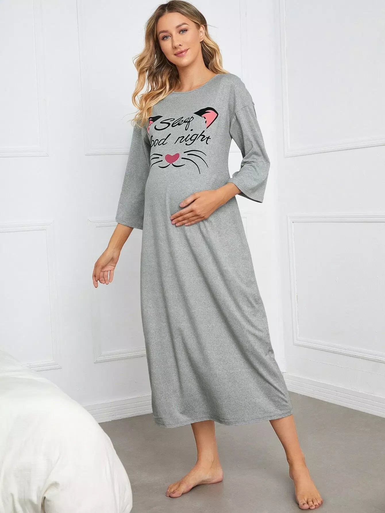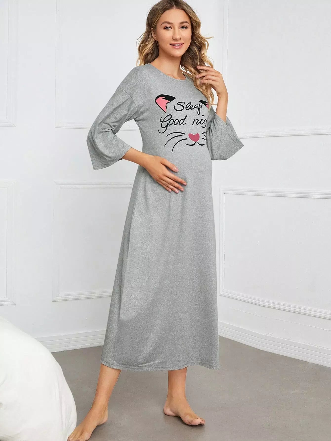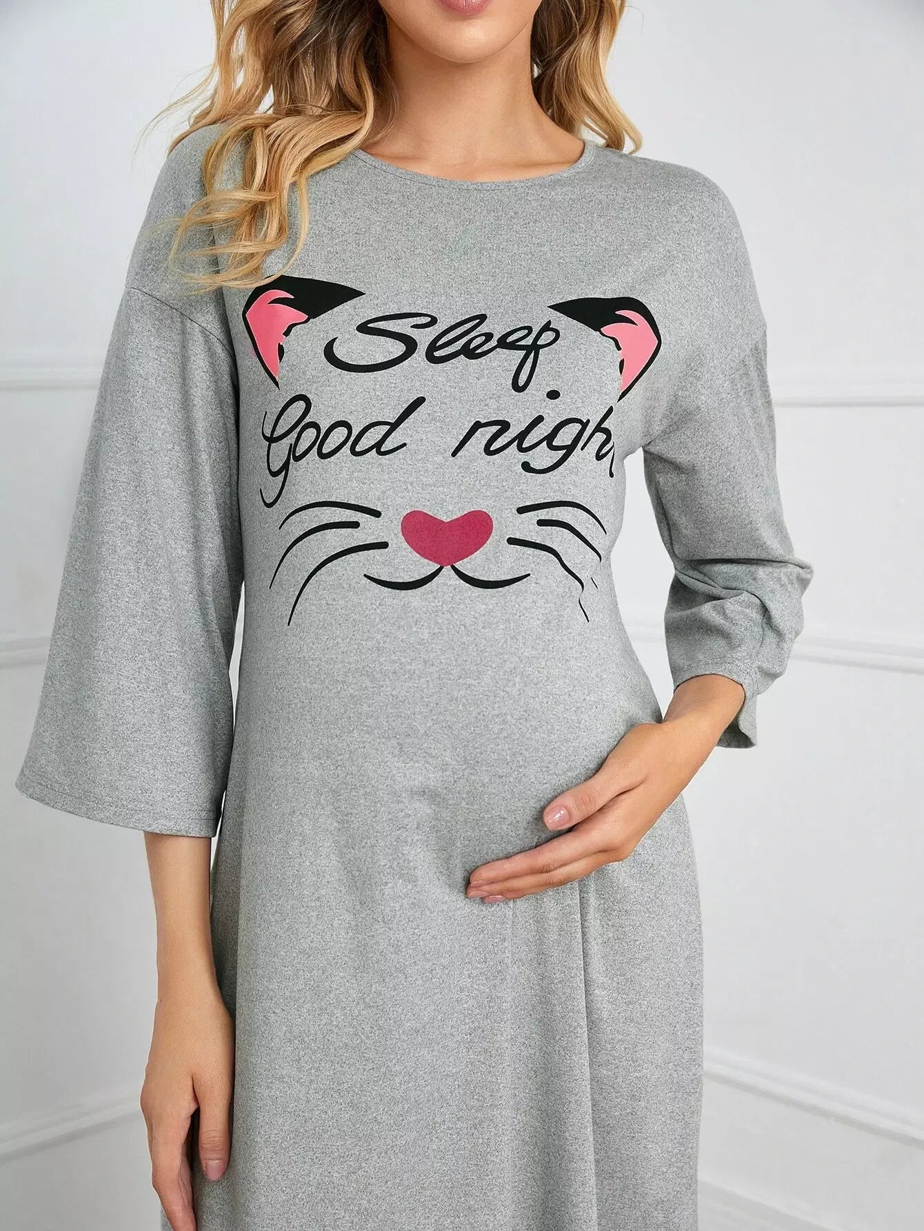 فستان ليلي برسومات كرتونية وشعار الأمومة