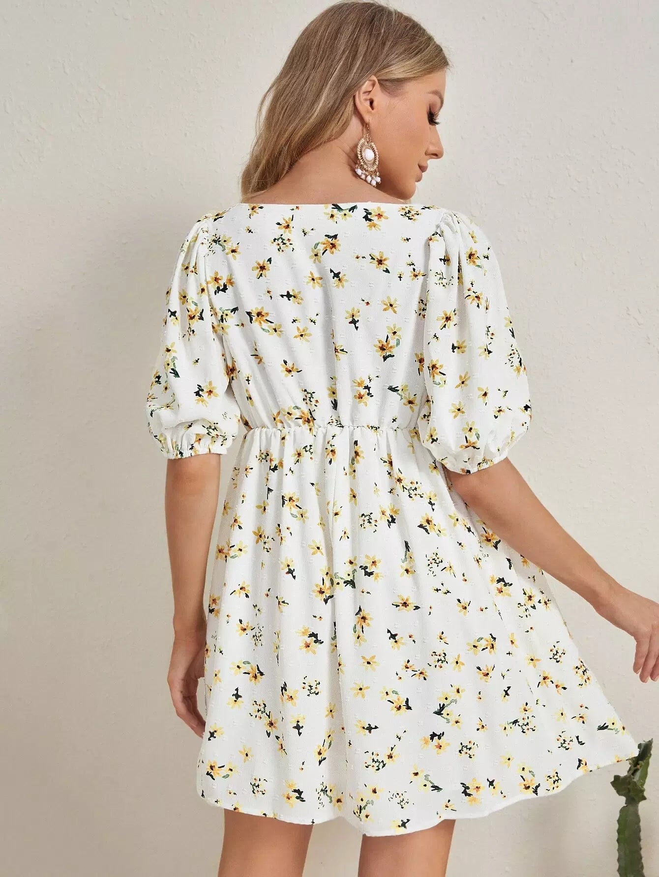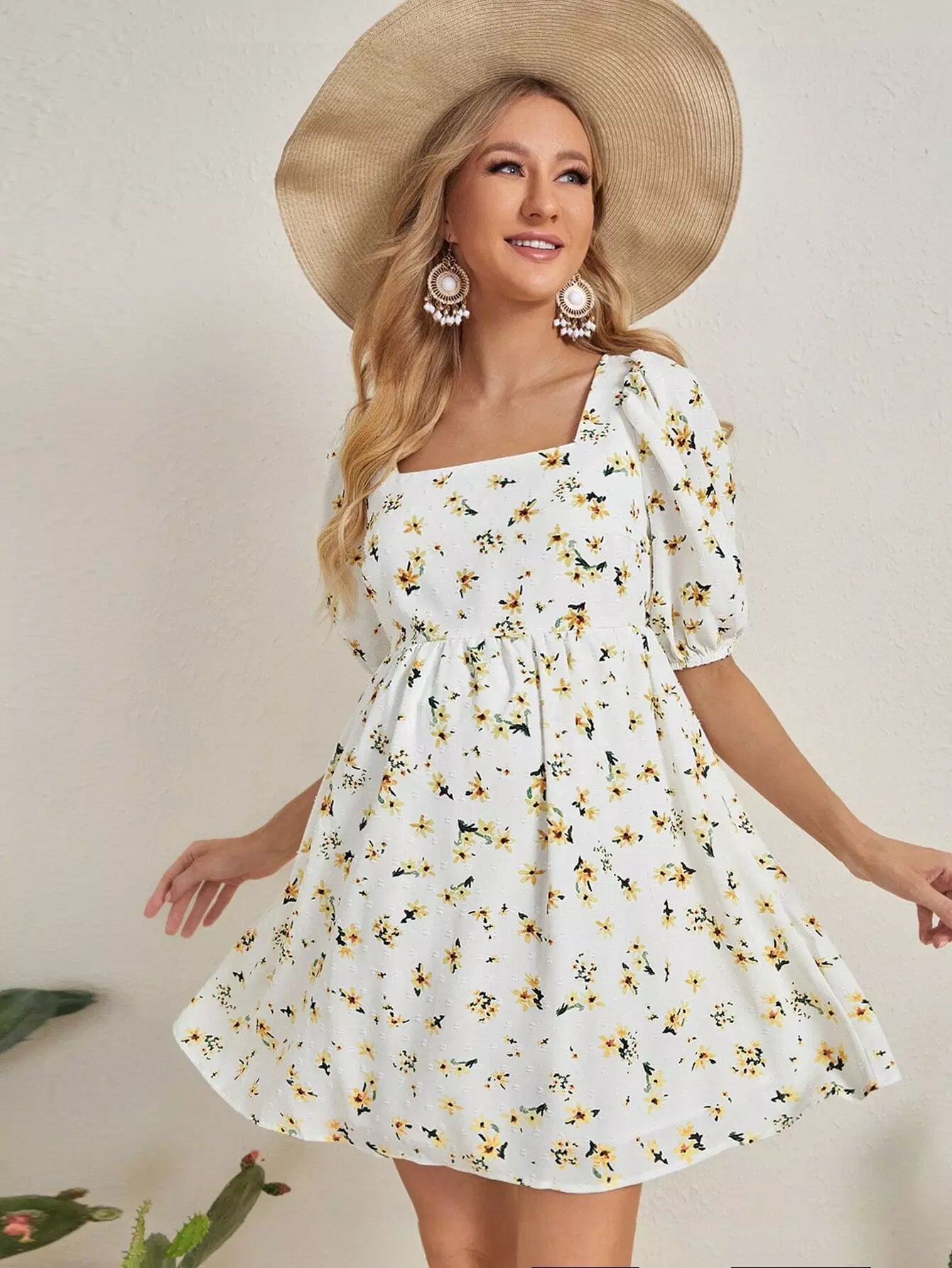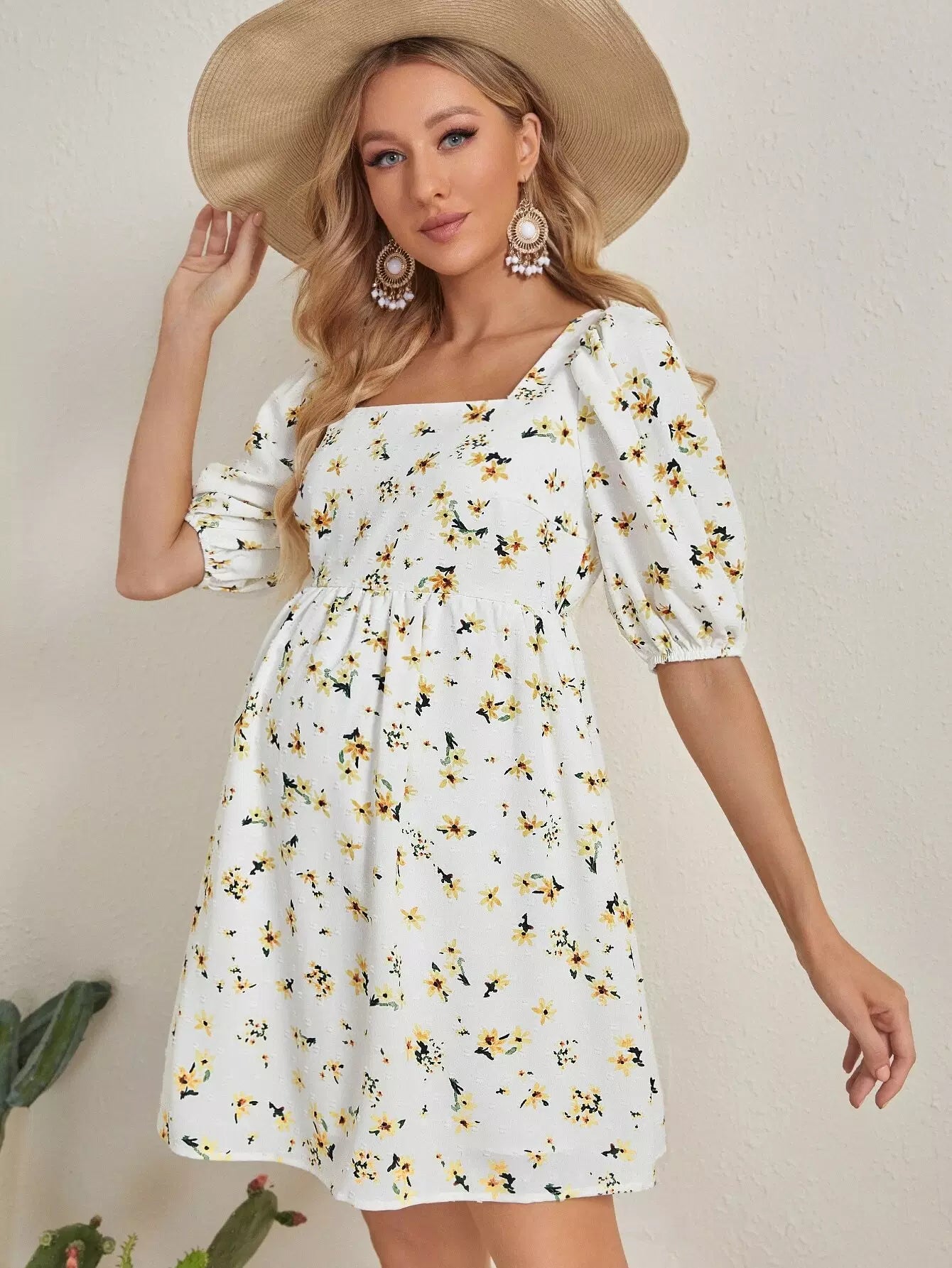 فستان بأكمام منفوشة بأزهار ديتسي للحوامل