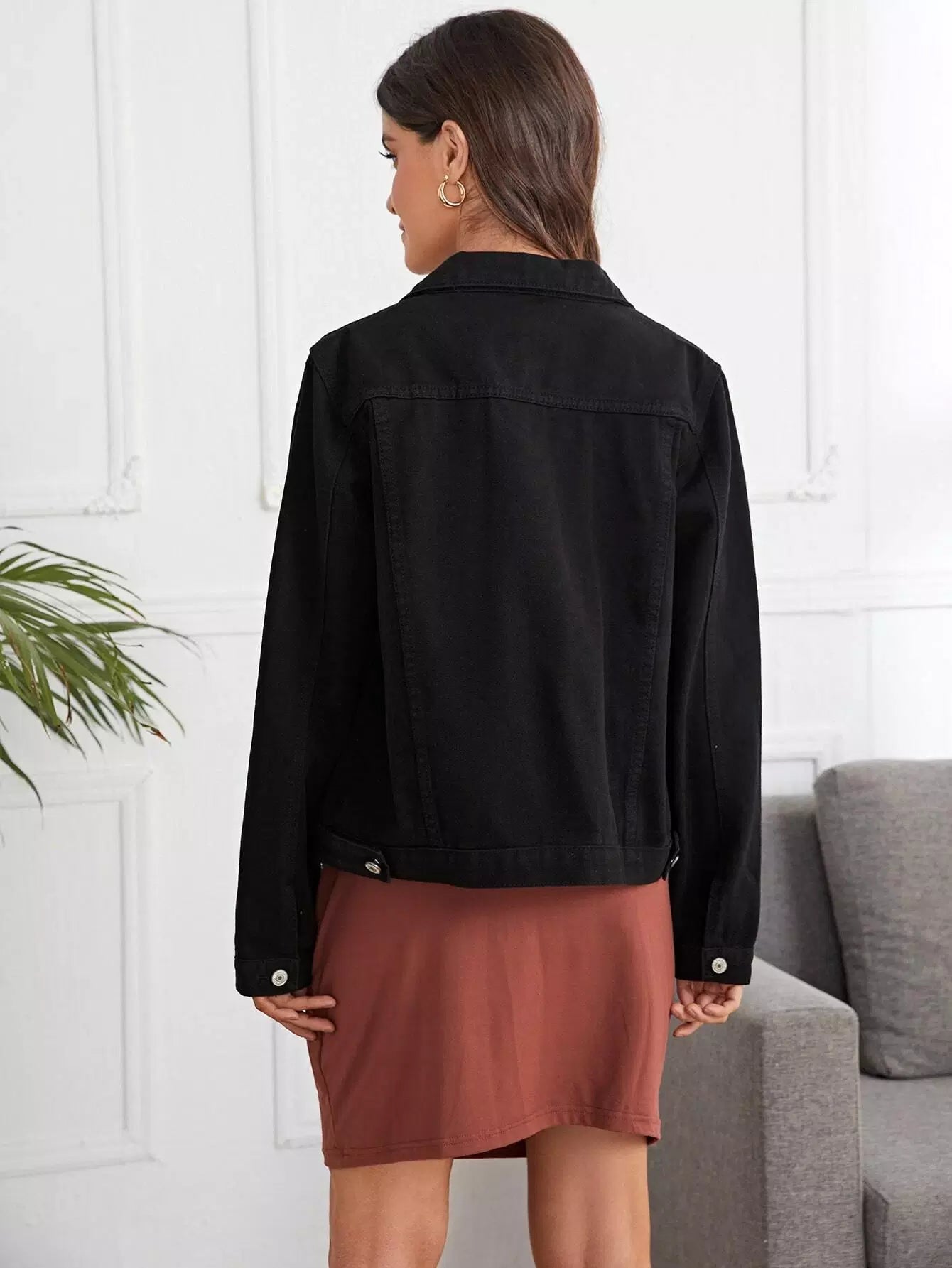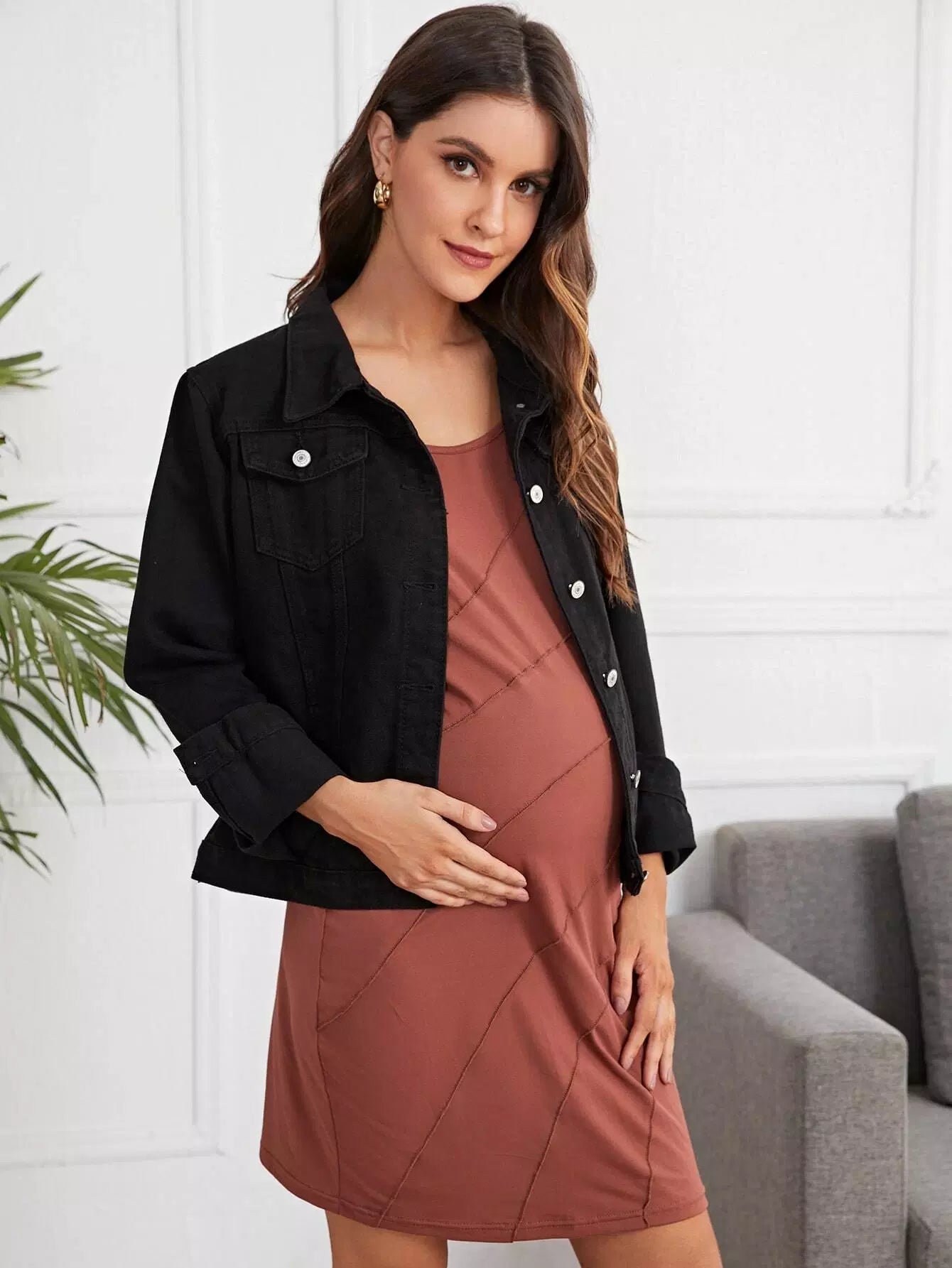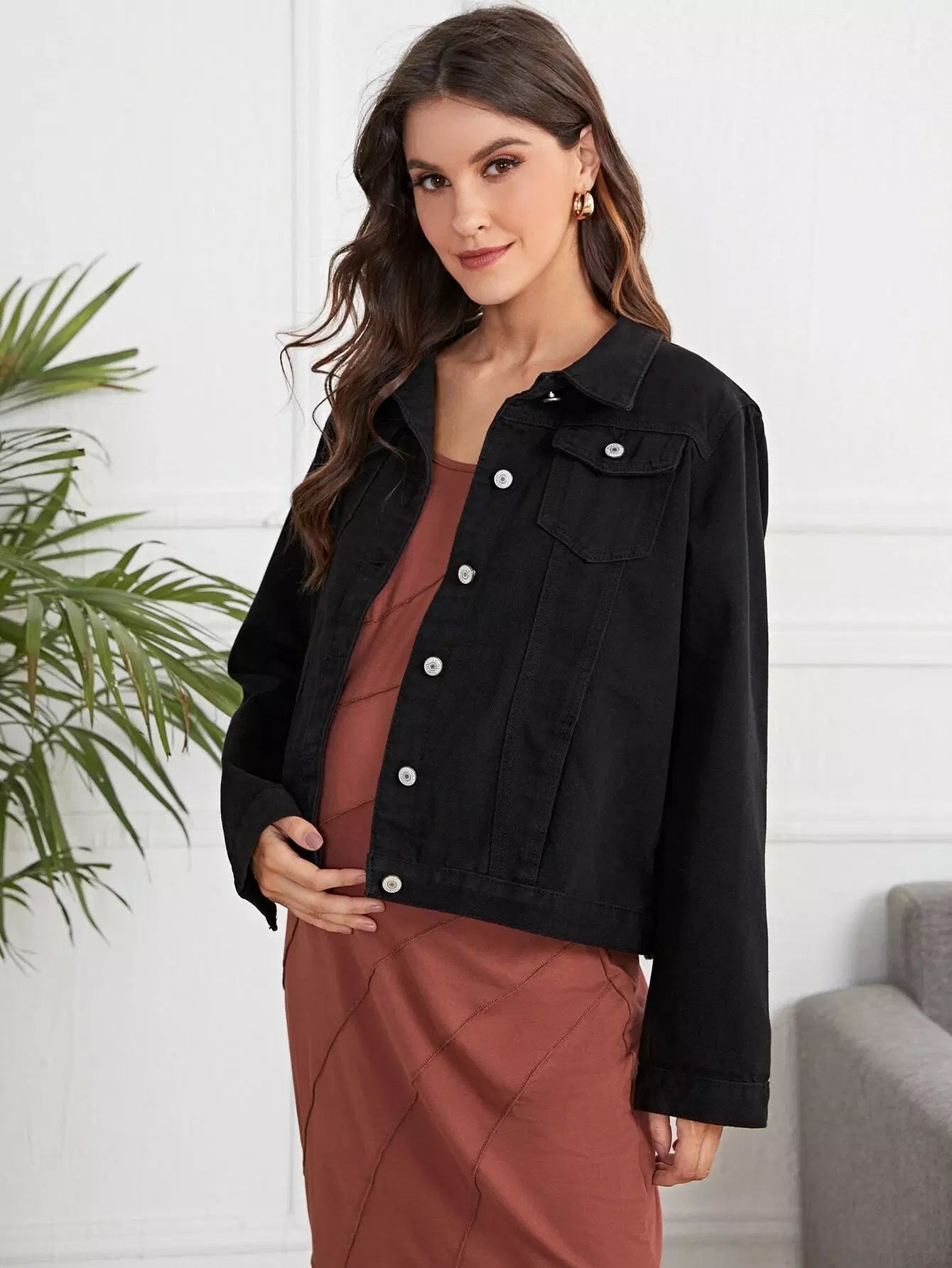جاكيت دنيم بجيب بغطاء جيب بغطاء للحوامل وأزرار أمامية