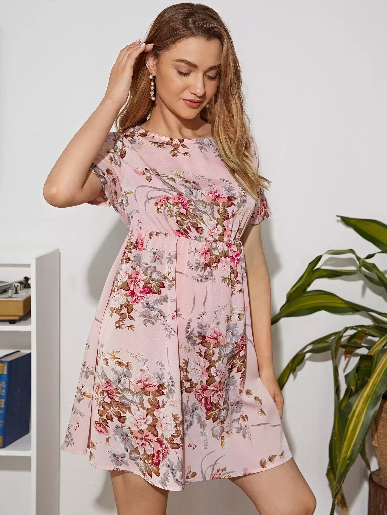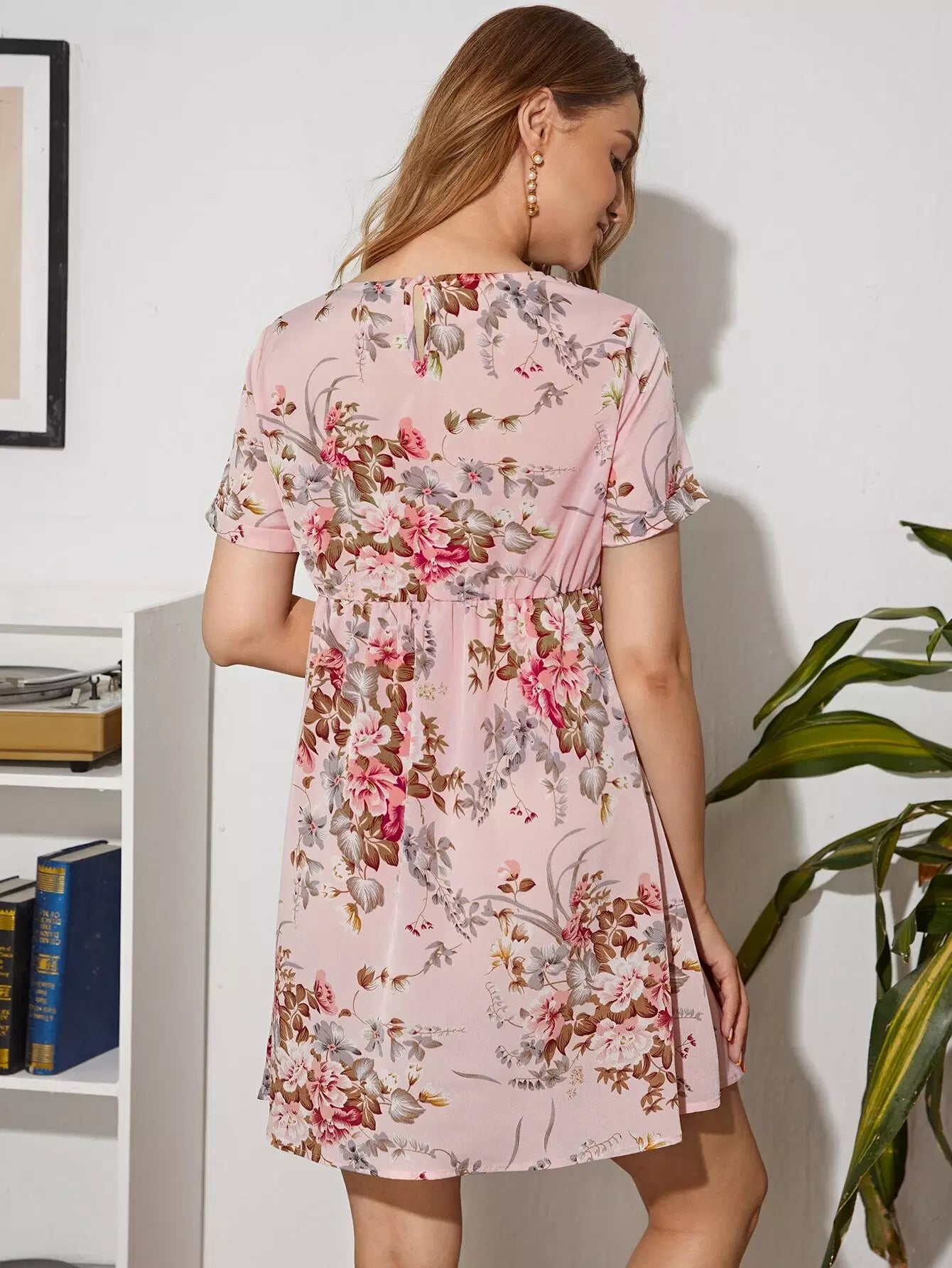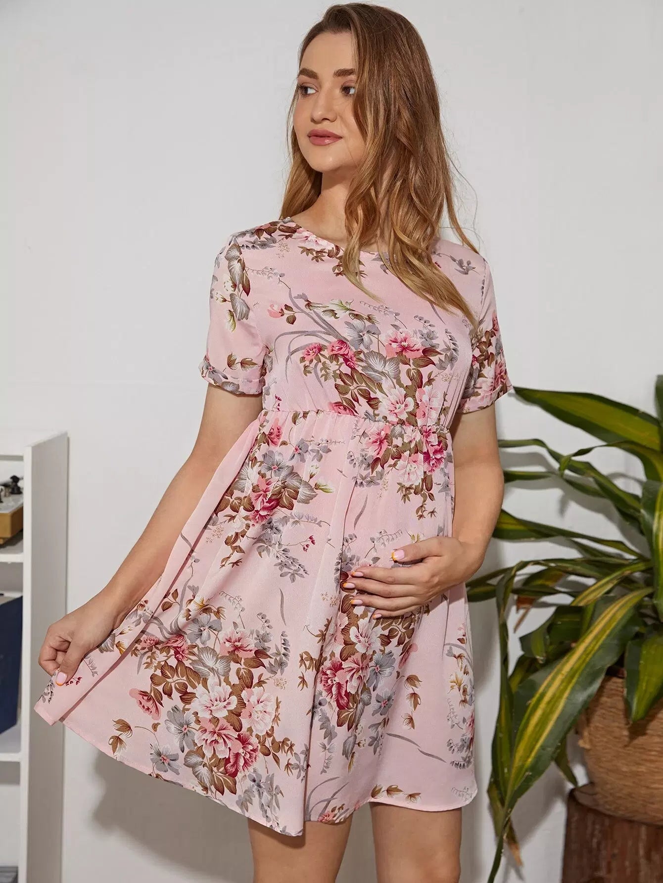 فستان بفتحة صدر بفتحة صدر بفتحة ظهر بفتحة صدر الأمومة بطبعة زهور