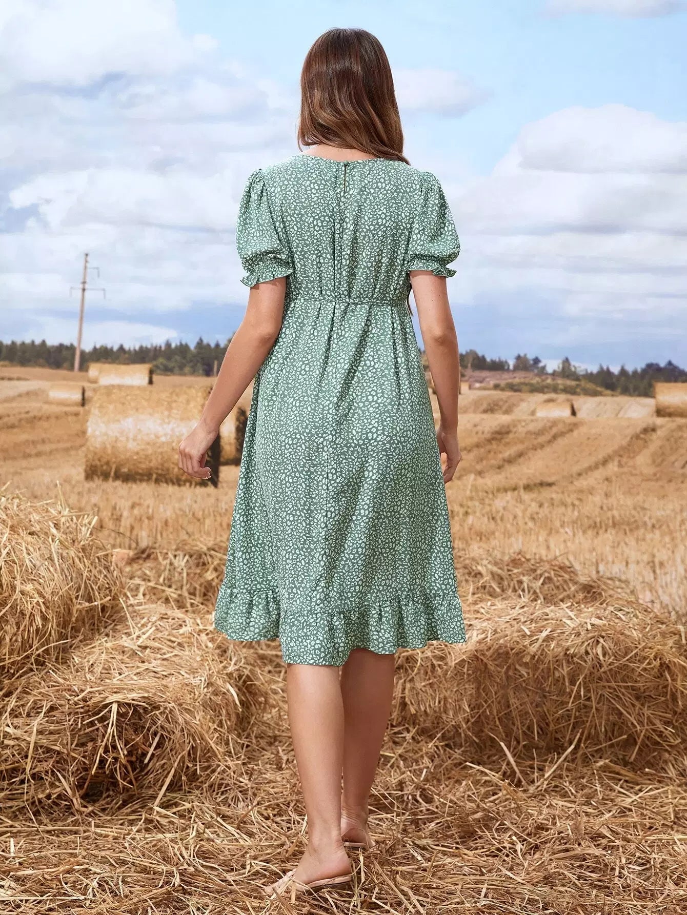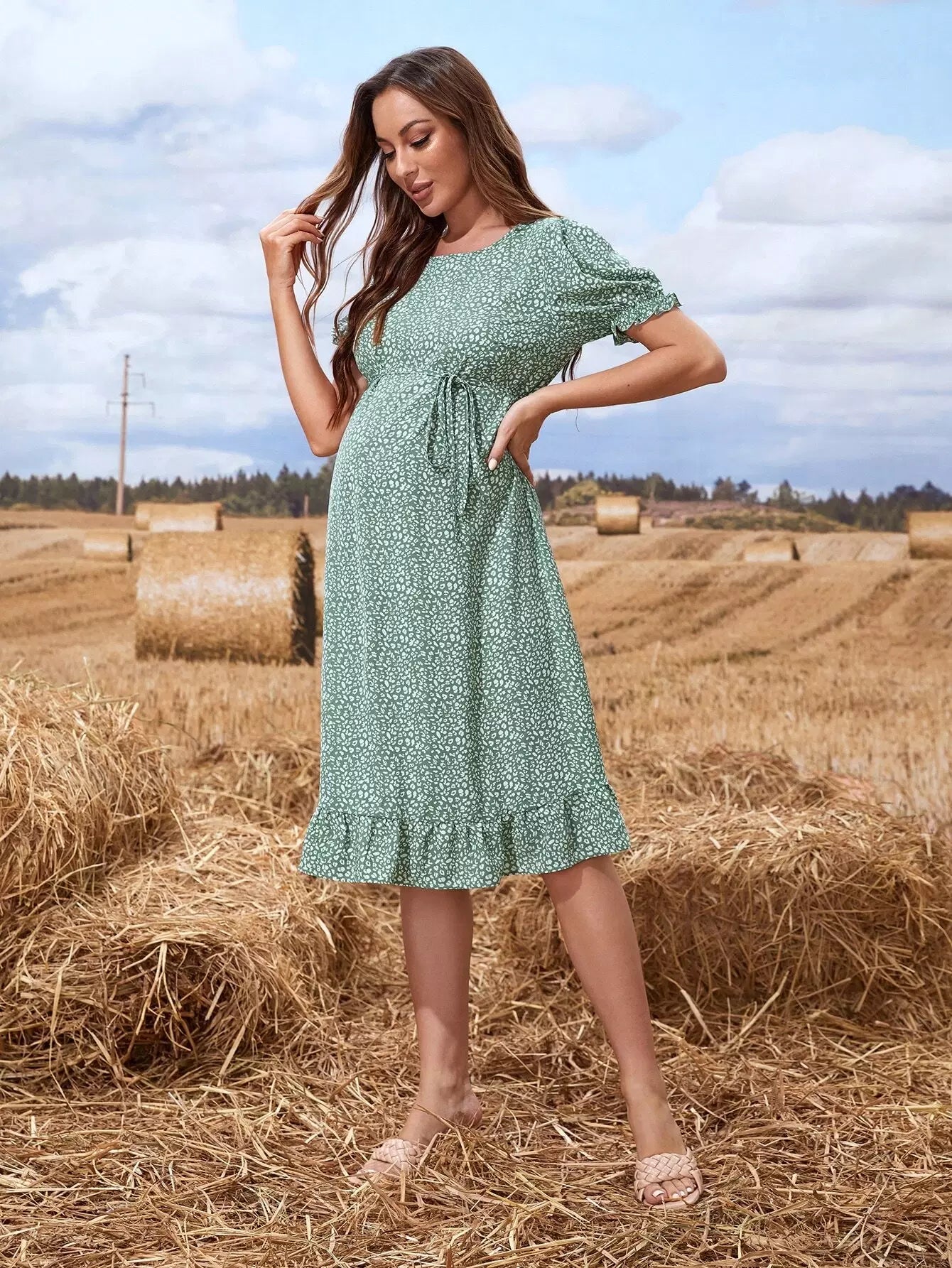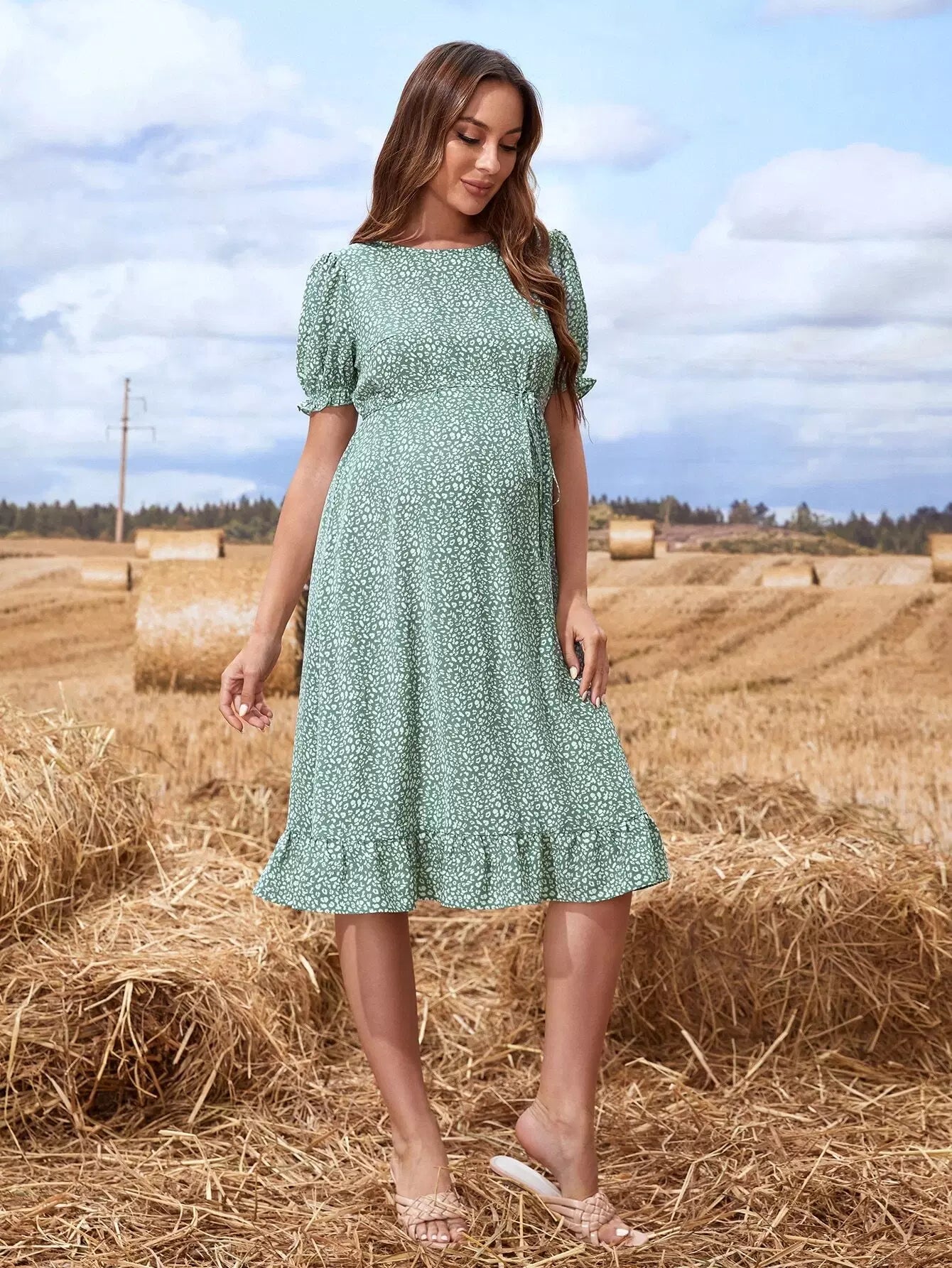 فستان الأمومة بطبعة الفهد بأكمام منتفخة بدون حزام