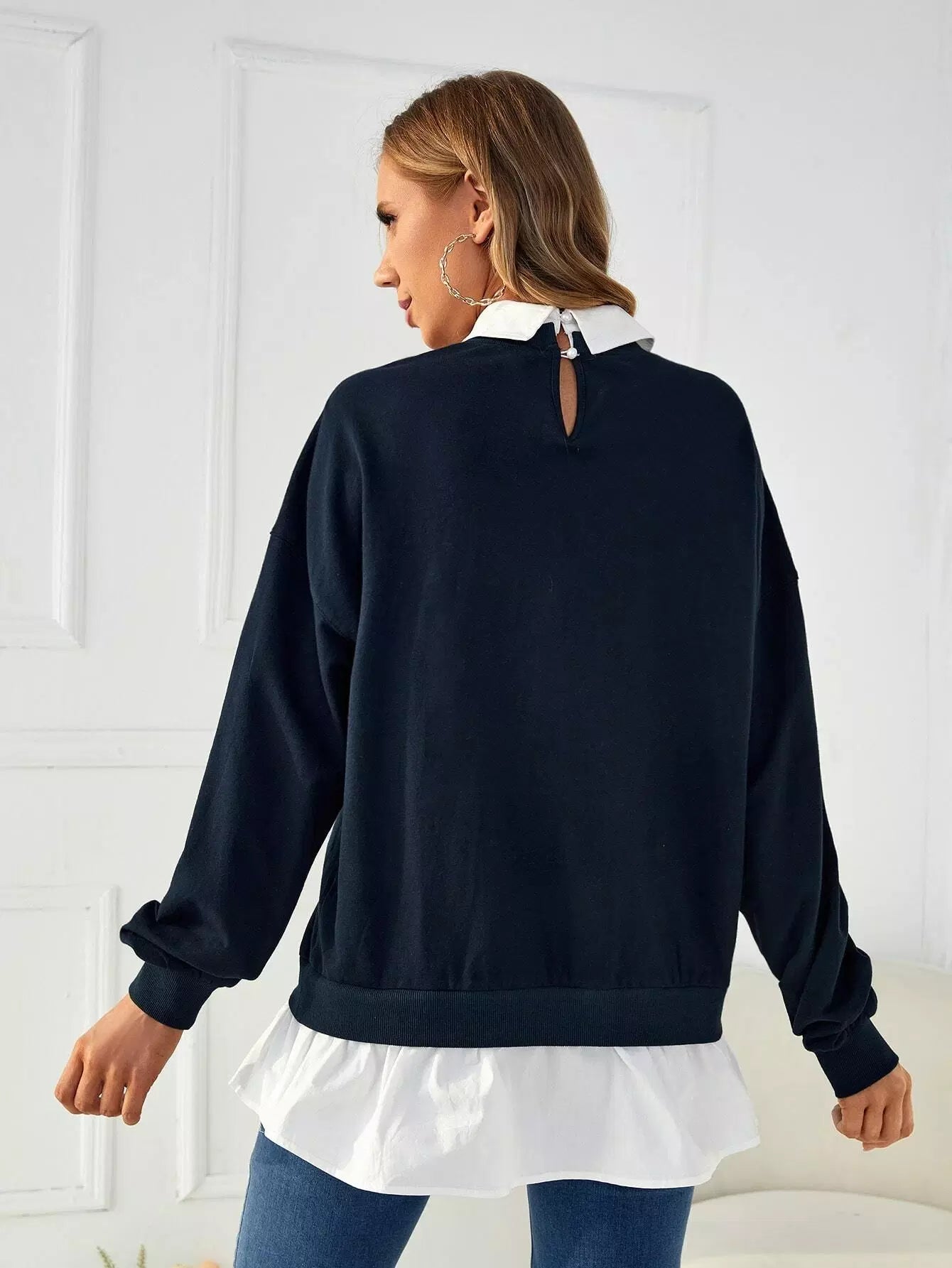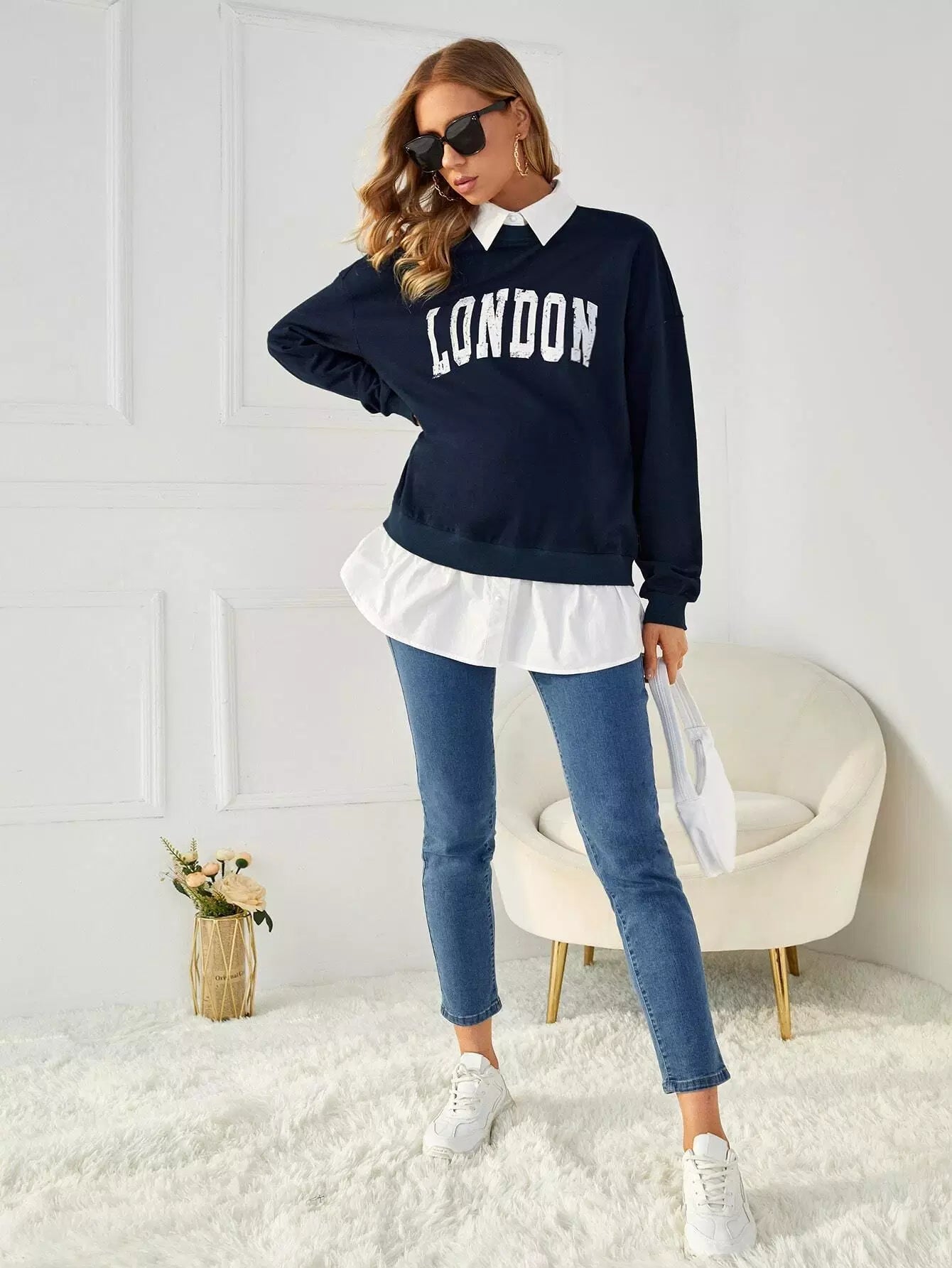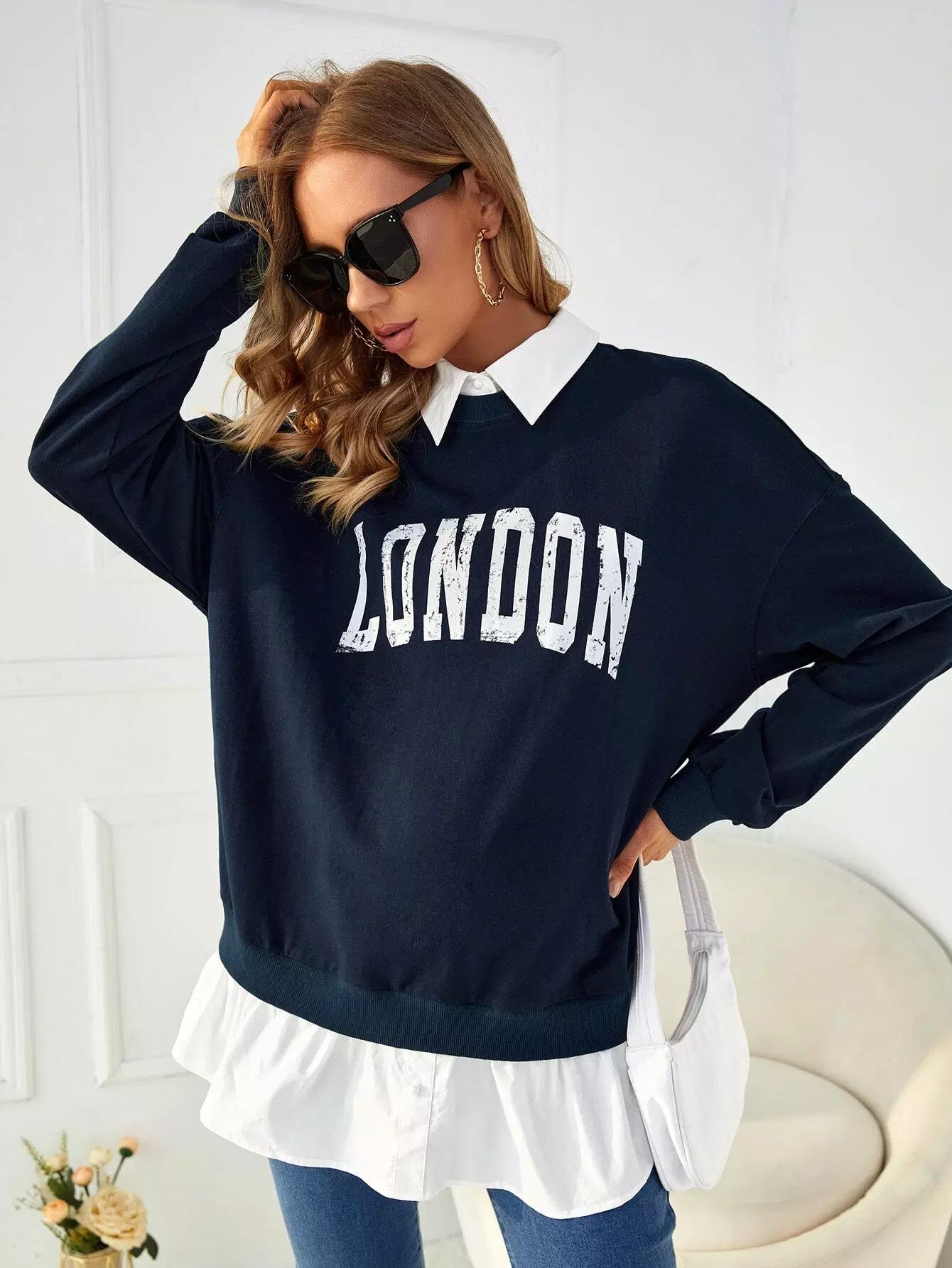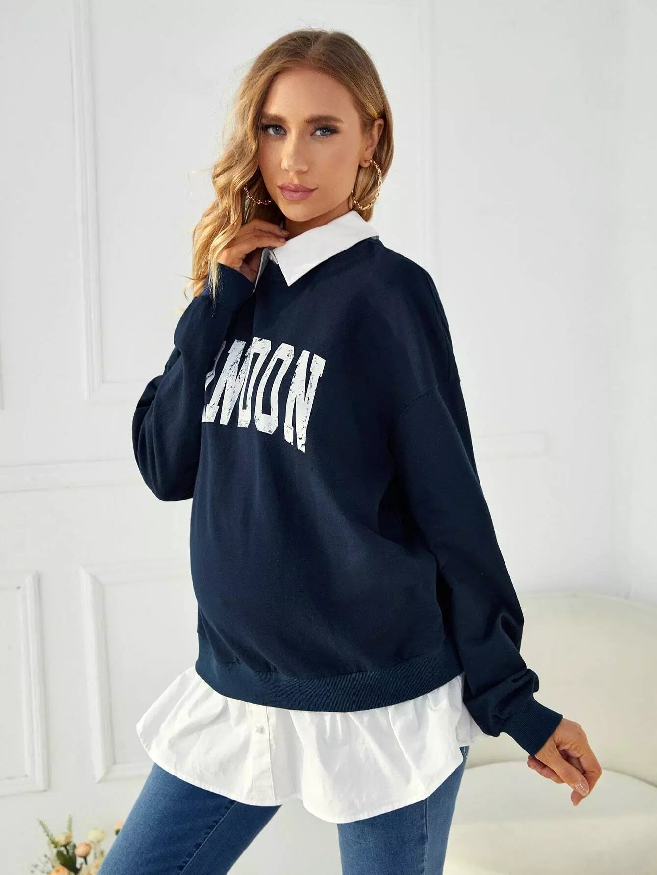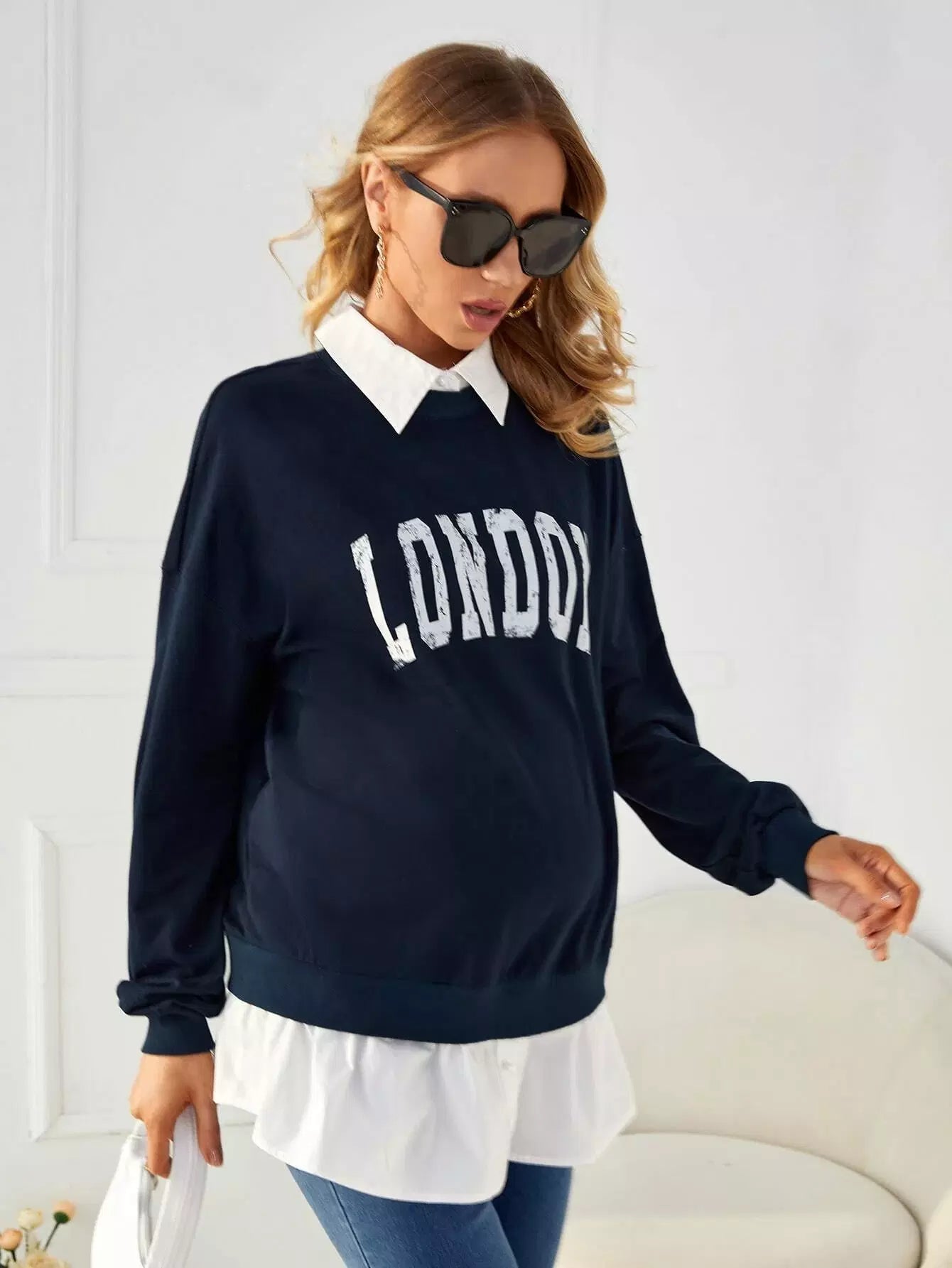 سويت شيرت بتصميم منسدل الكتفين برسومات حوامل 2 في 1