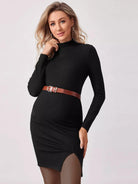 الأطفال - فستان ضيق للحوامل بفتحة رقبة وهمية بدون حزام