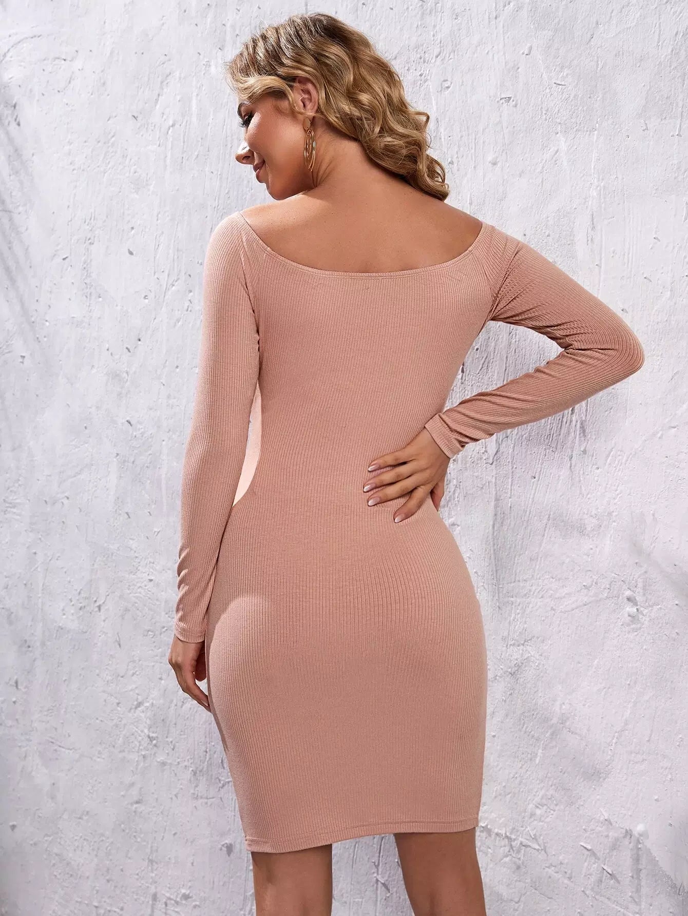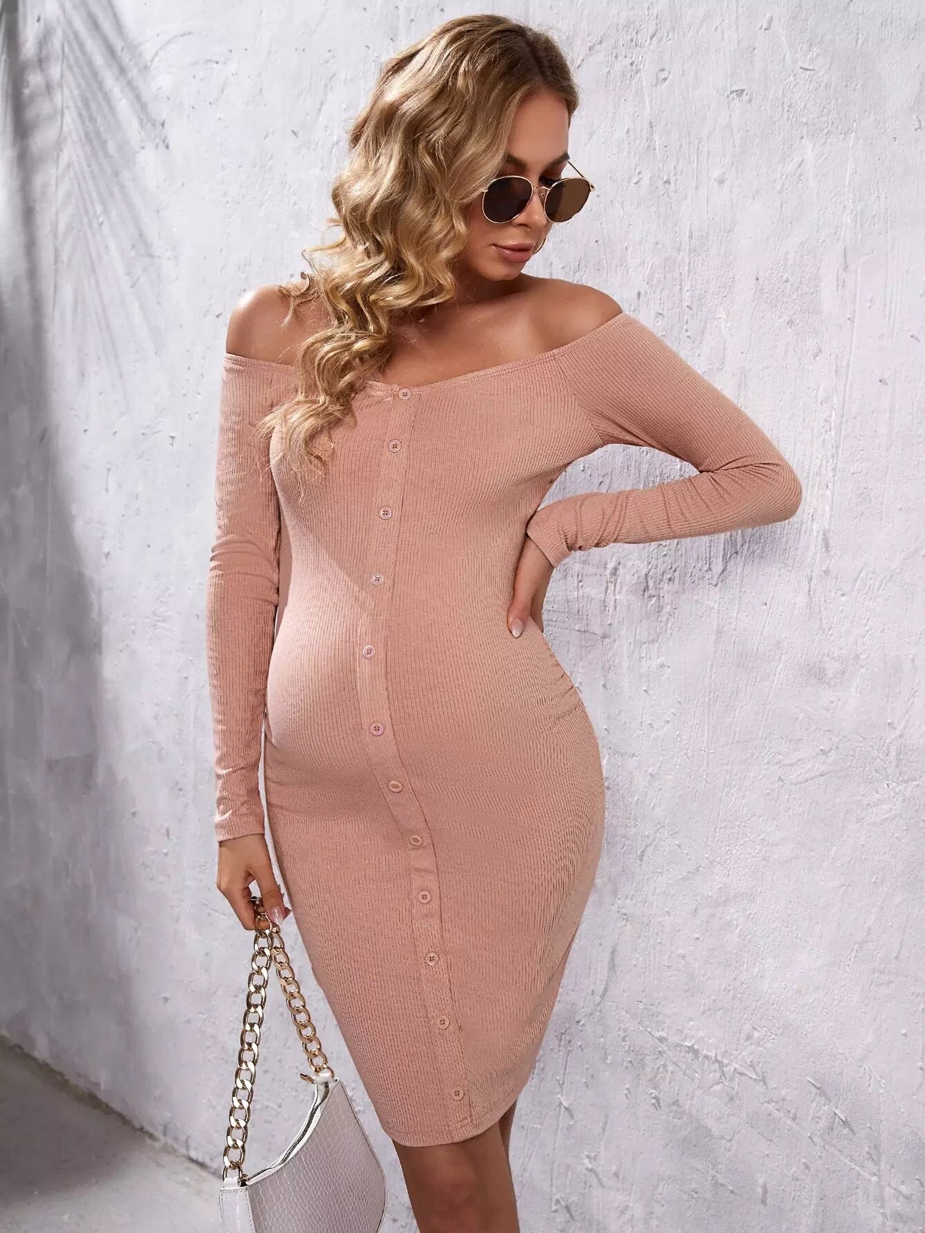 فستان حوامل مكشوف الأكتاف بأزرار فوق الأكتاف