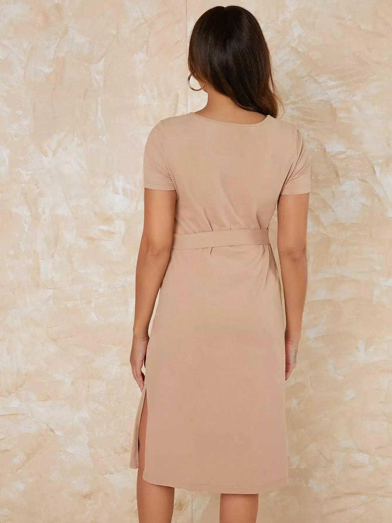 الأطفال - فستان بحزام للحوامل وبحواف مشقوقة