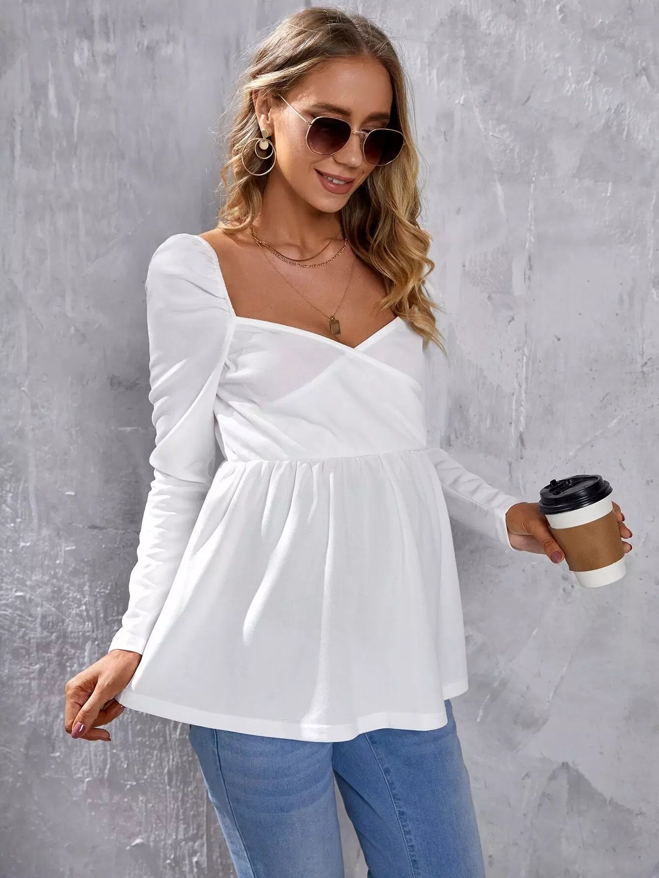 بلوزة للحوامل بفتحة على شكل قلب وحاشية ببلوم