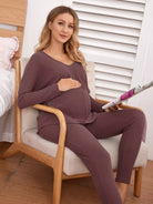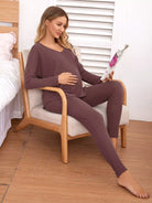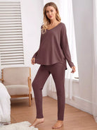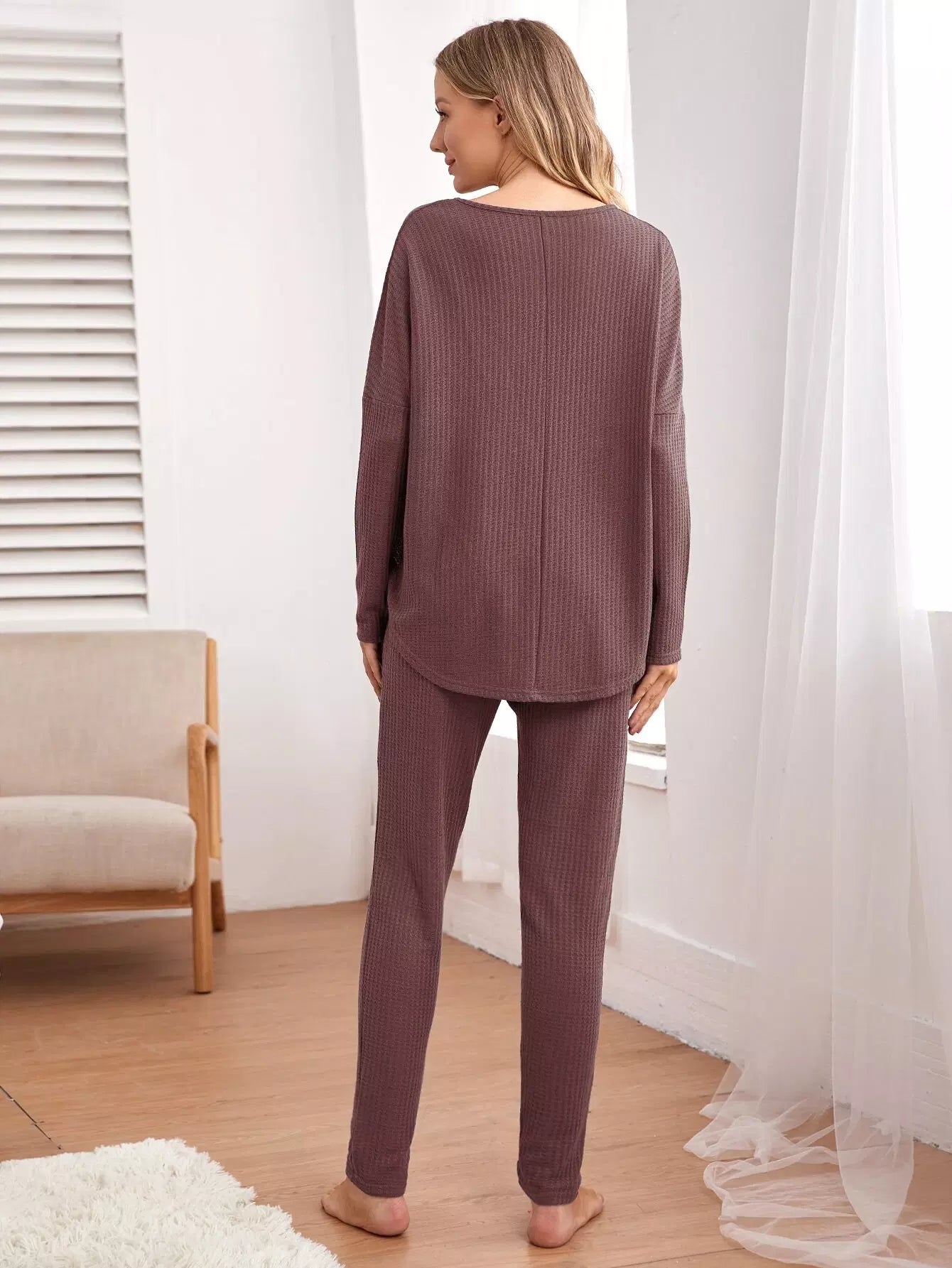 طقم بيجامة حوامل منسوج منسدل الأكتاف منسوج على شكل وافل