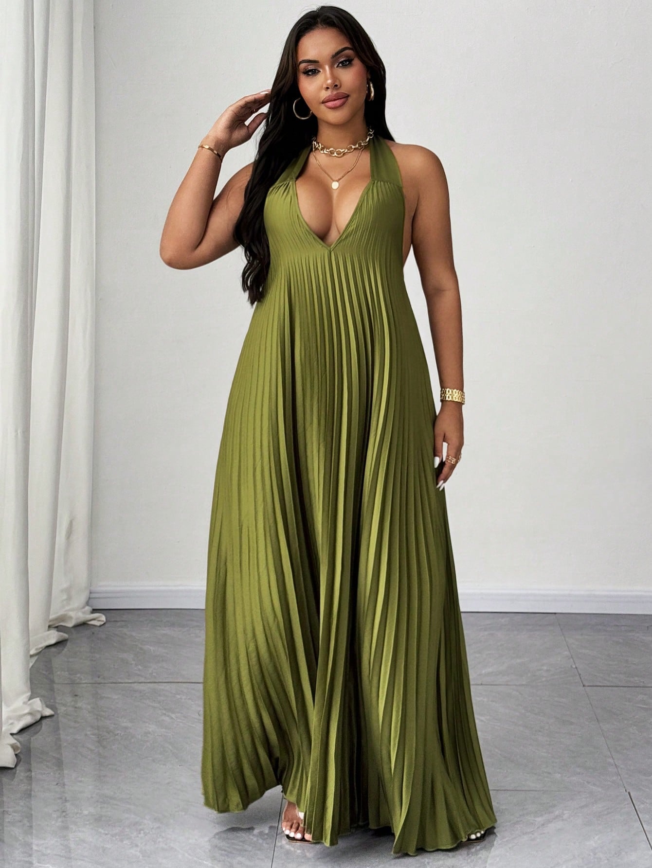 فستان ماوي ذو المقاسات الكبيرة، رومانسي وأنيق وجذاب، مناسب لعطلات الصيف، برباط من الساتان المطوي