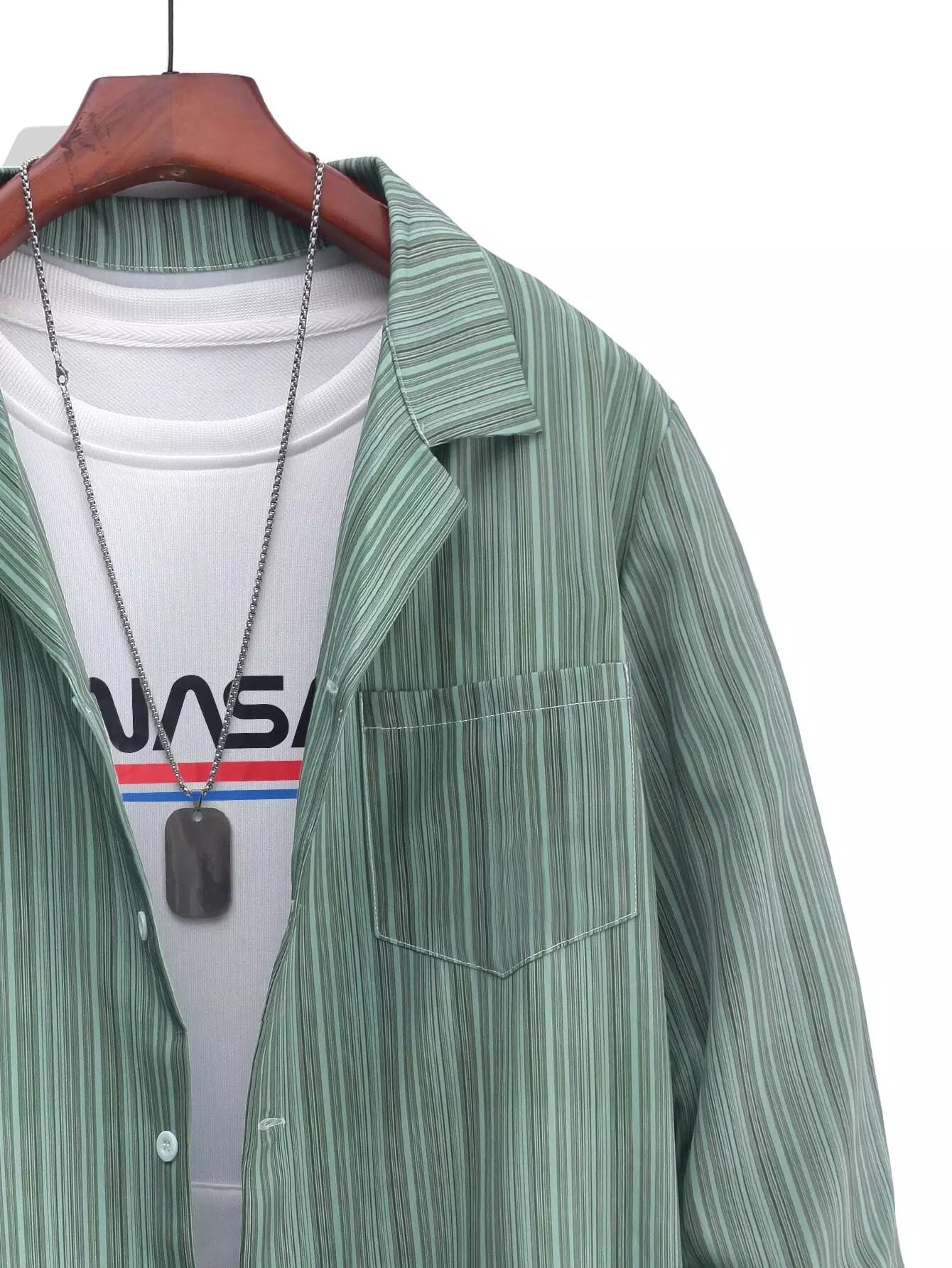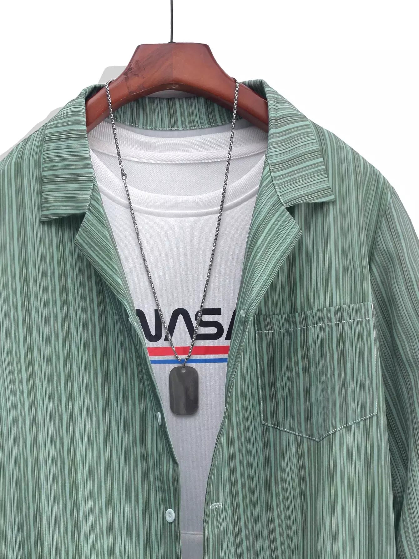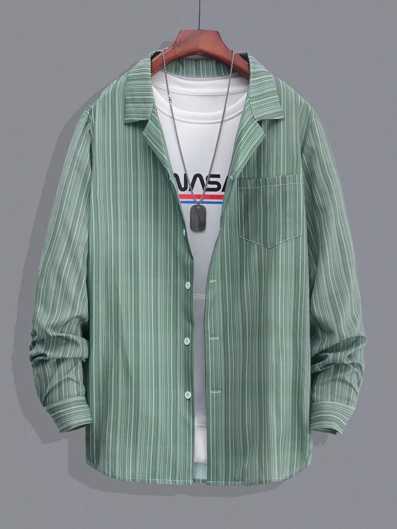 قميص رجالي 1 قطعة مخطّط بجيب مخطط للرجال