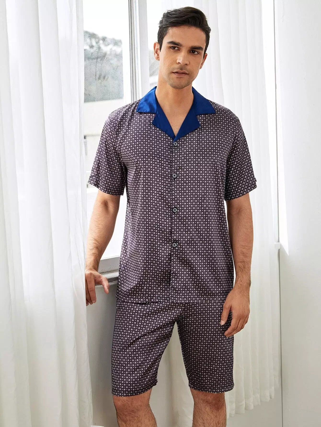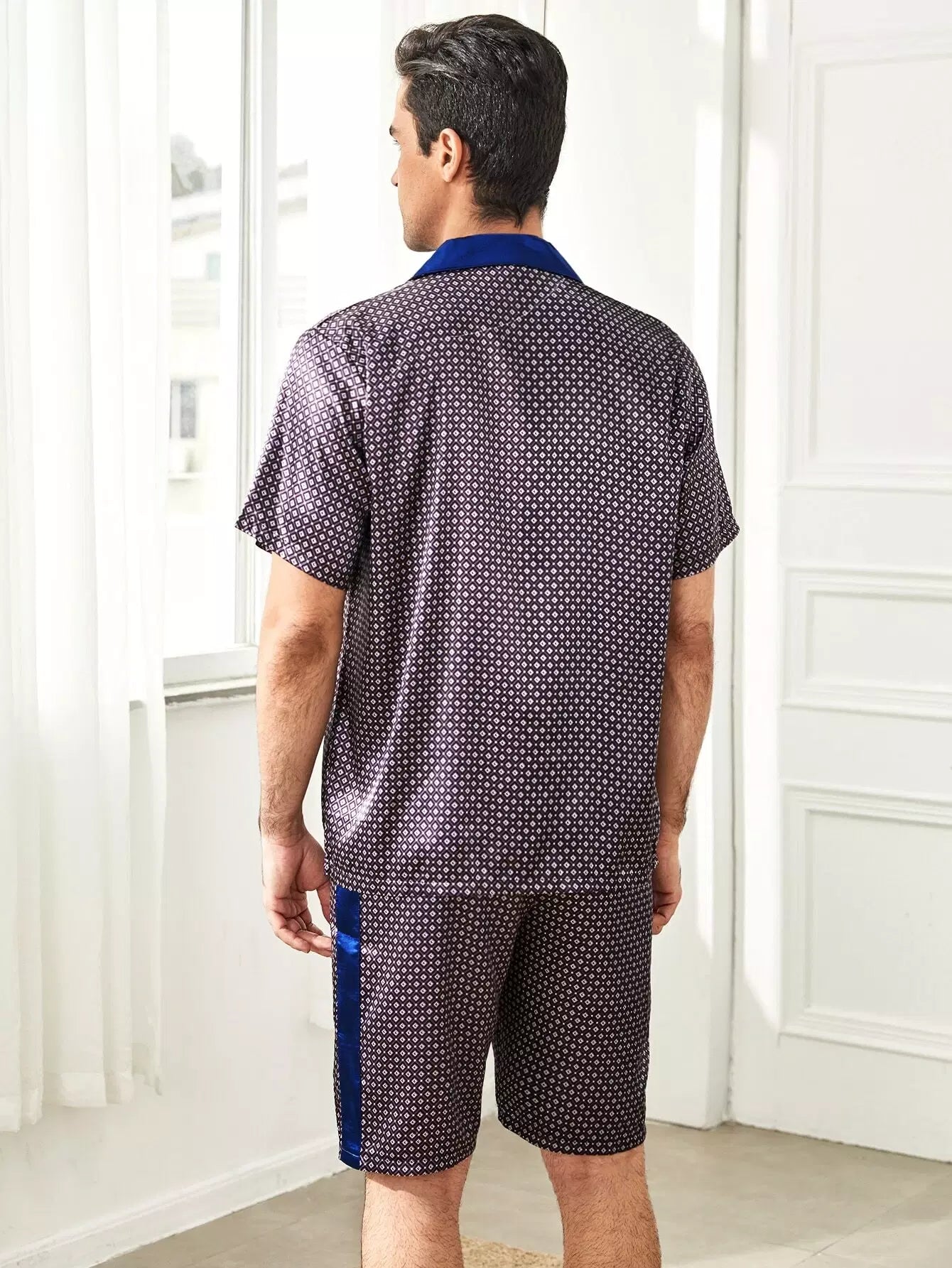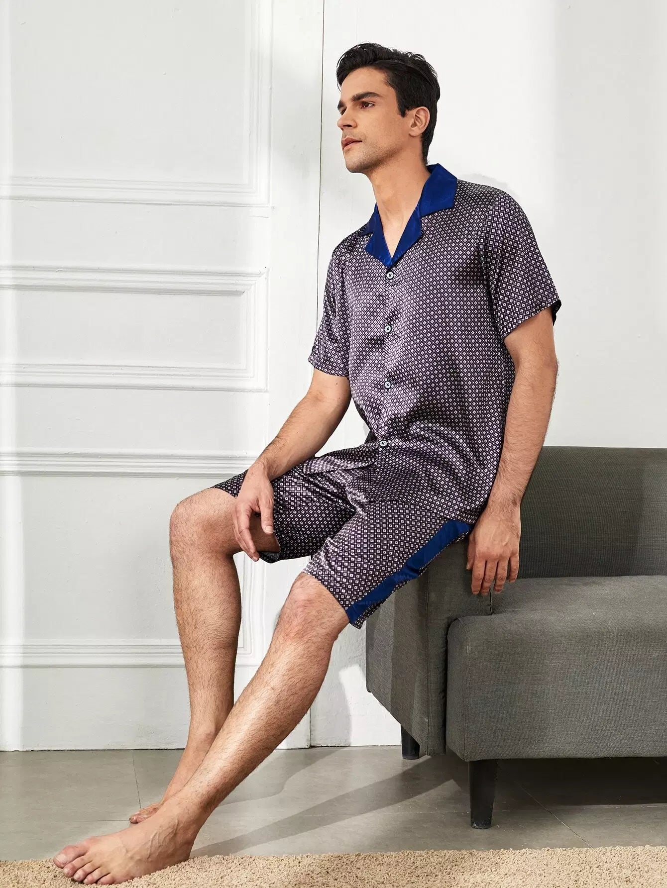 طقم بيجامة ساتان بأزرار أمامية من الساتان بطبعة أرجيل للرجال