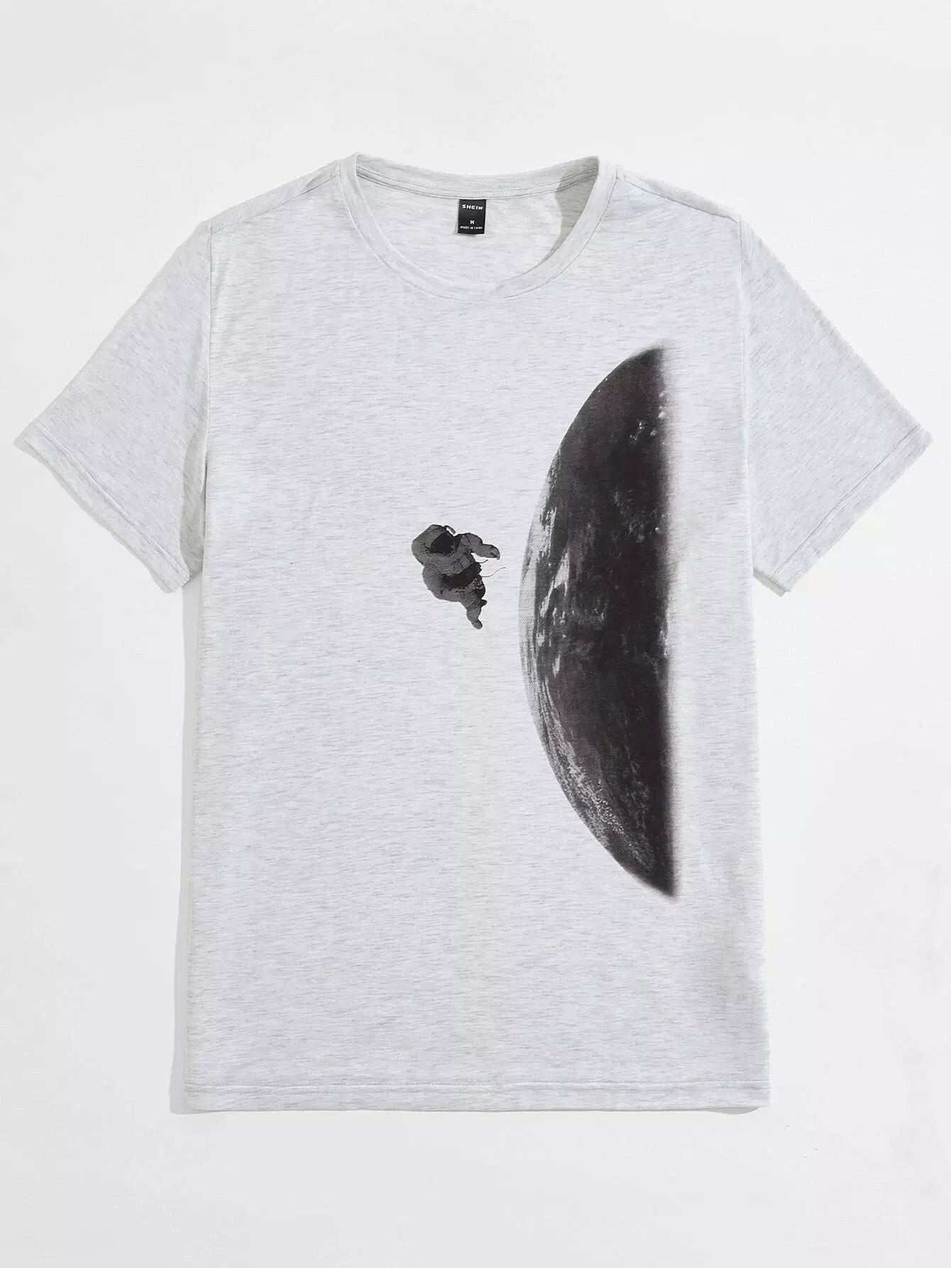 تي شيرت بطبعة رائد فضاء وكوكب للرجال