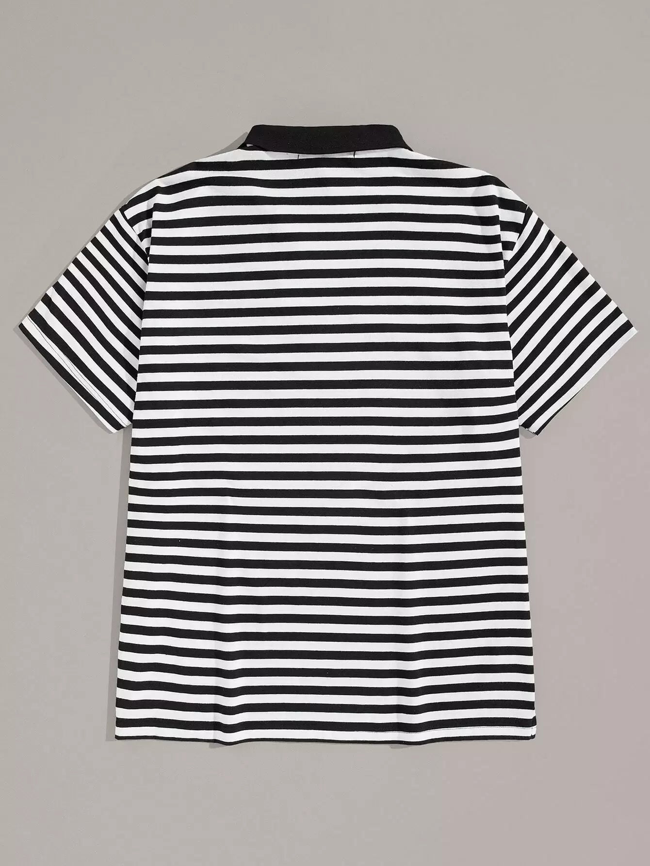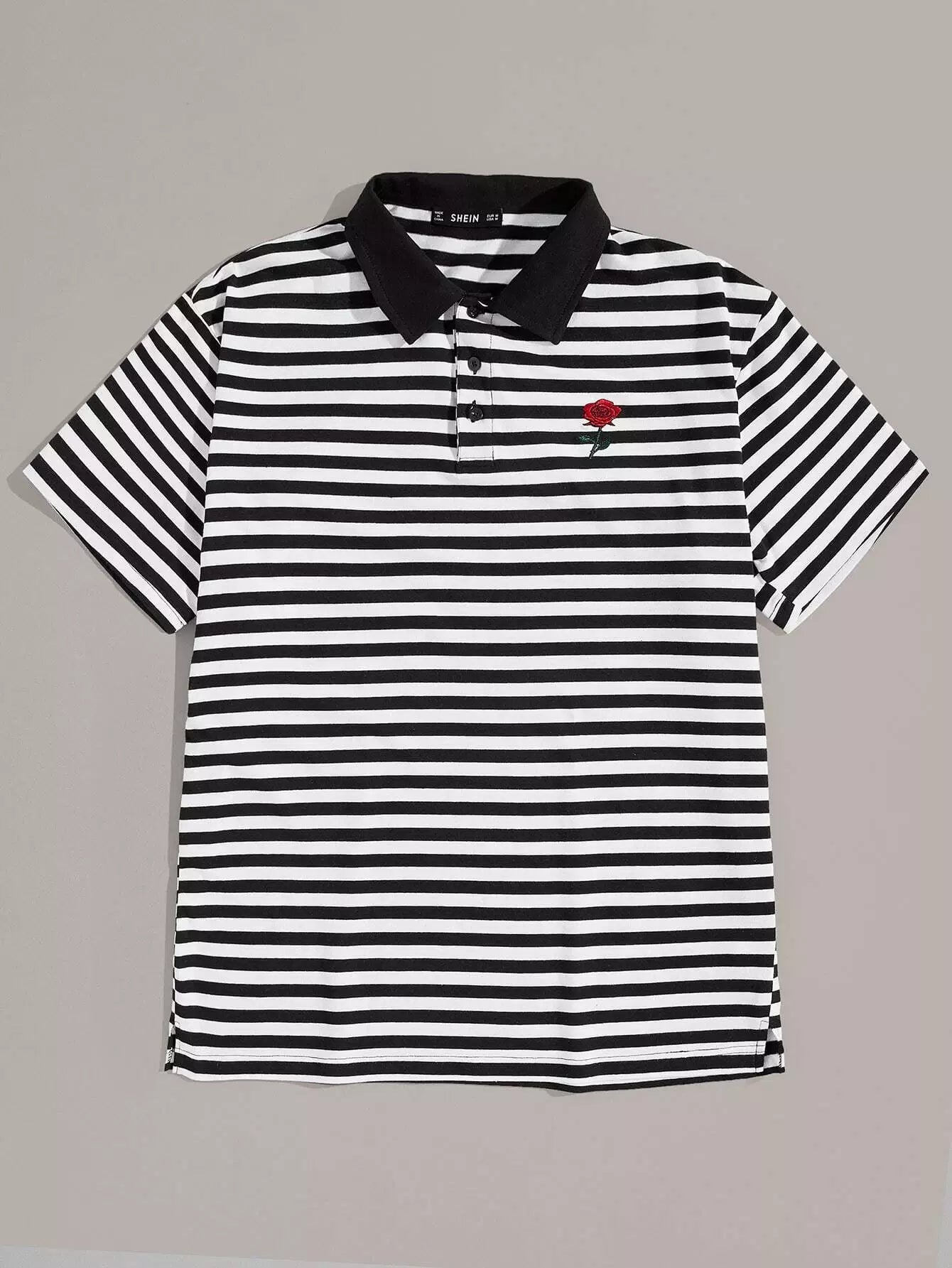 قميص بولو رجالي بتطريز نصف سترة بأزرار نصف مطرزة