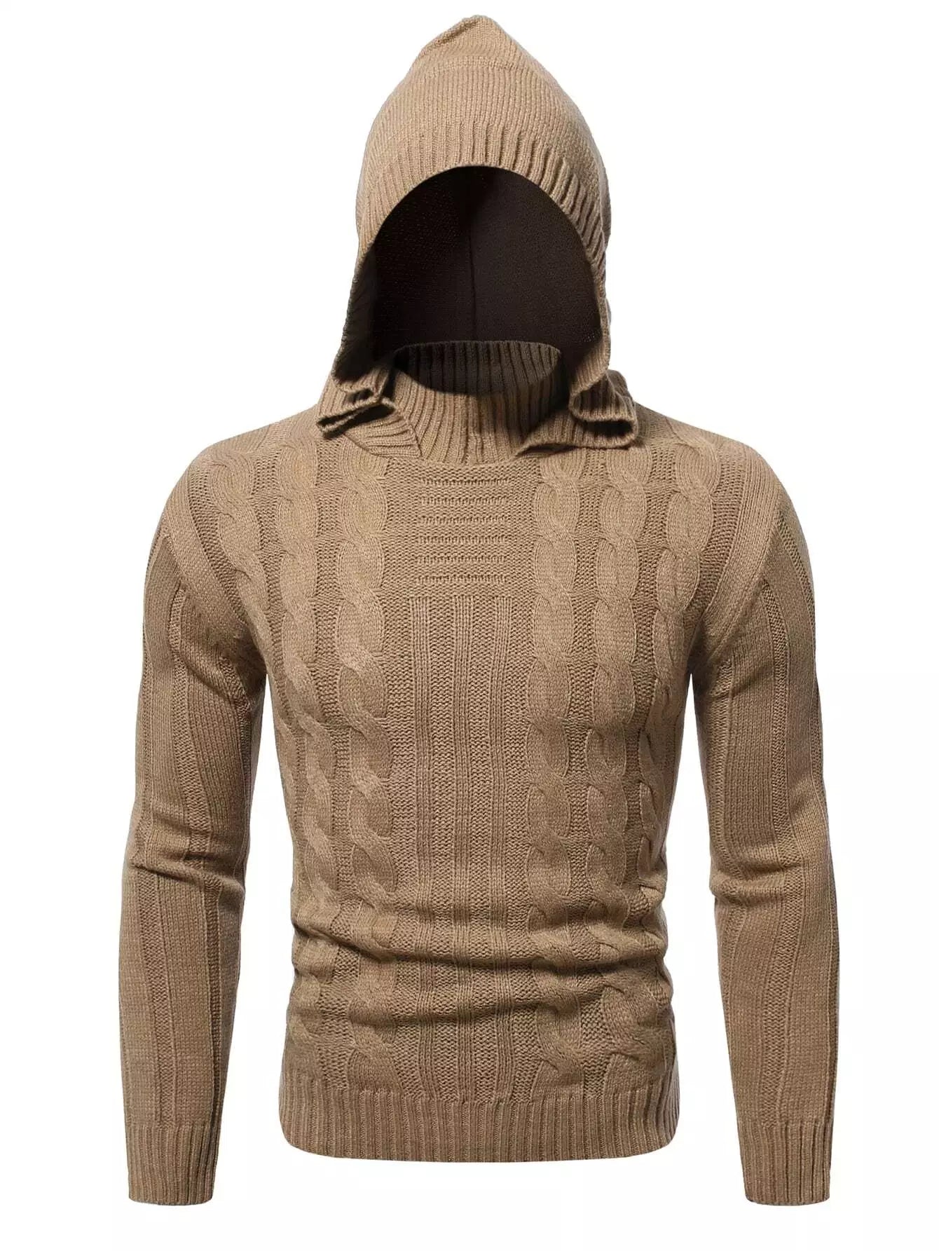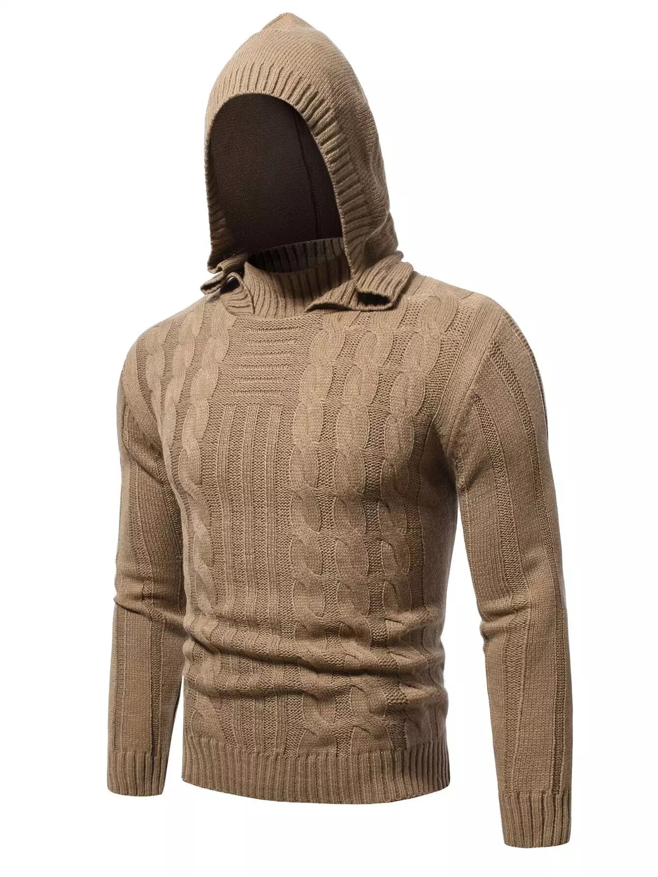 سترة رجالية محبوكة بغطاء رأس
